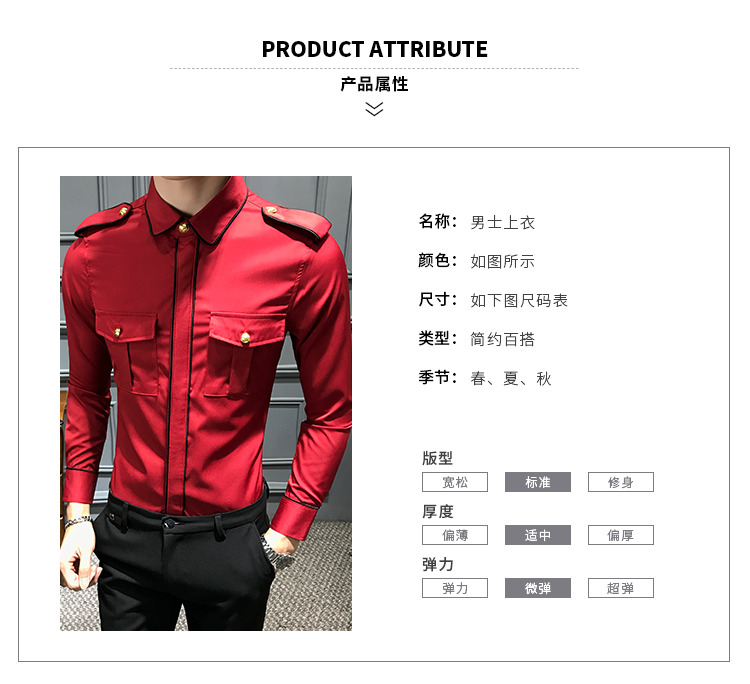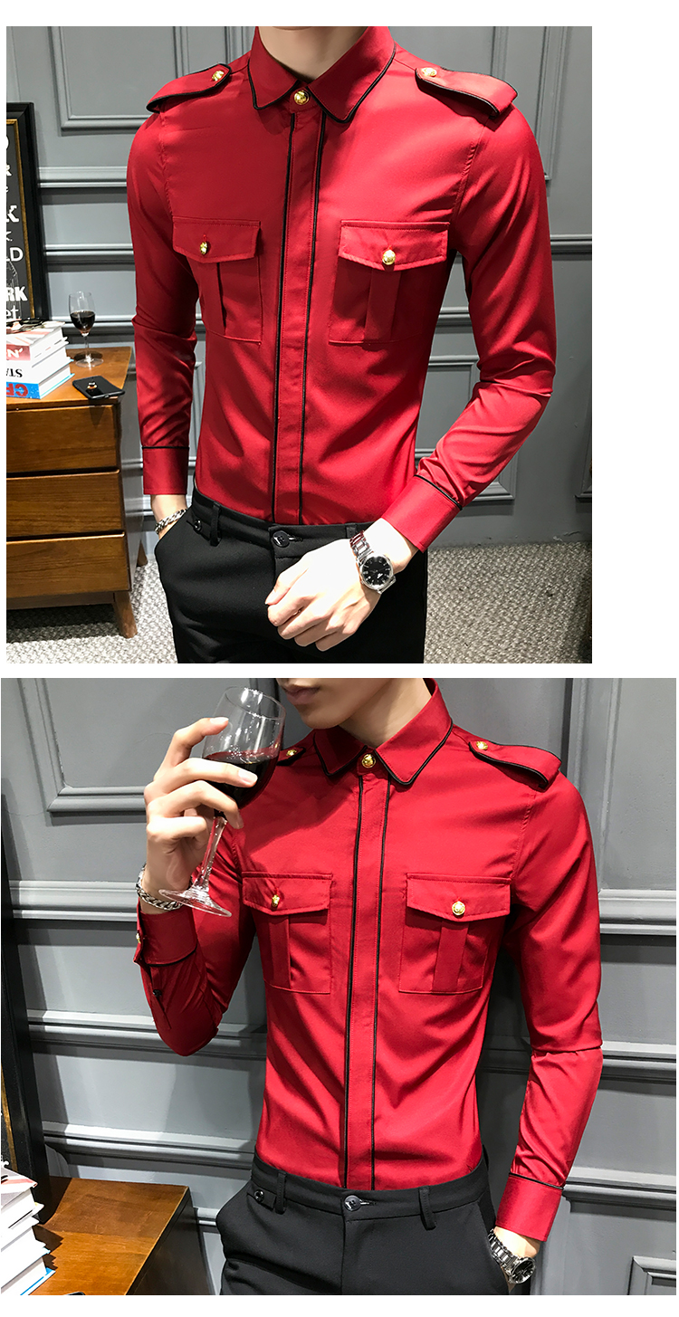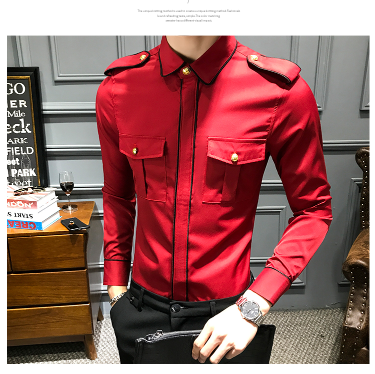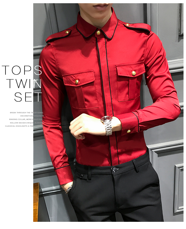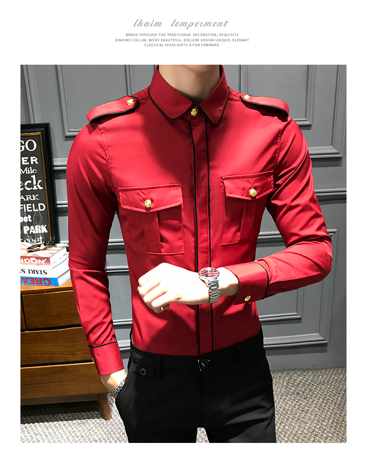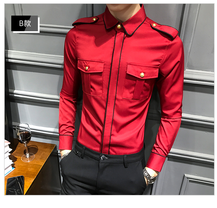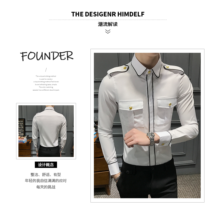 潮男社會小伙肩章空少長袖襯衣夜店酒吧KTV少爺長袖襯衫