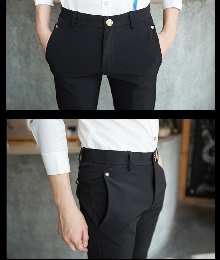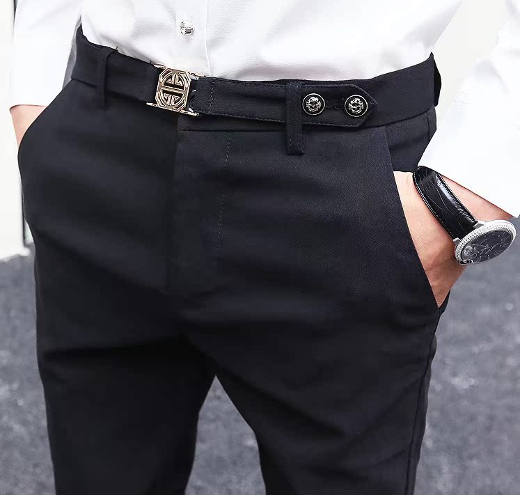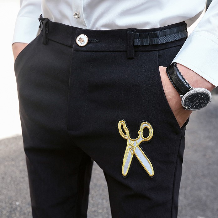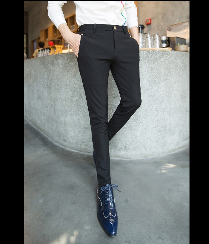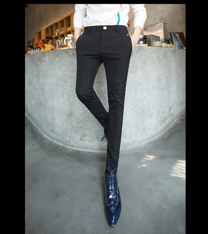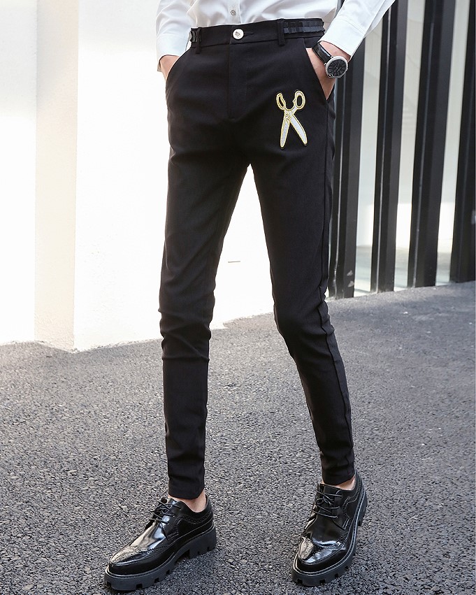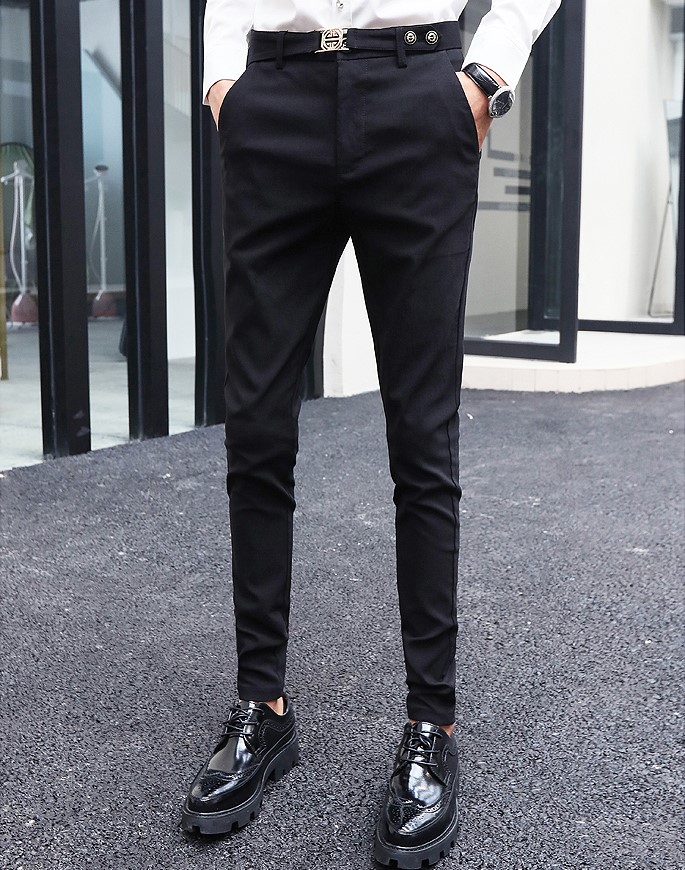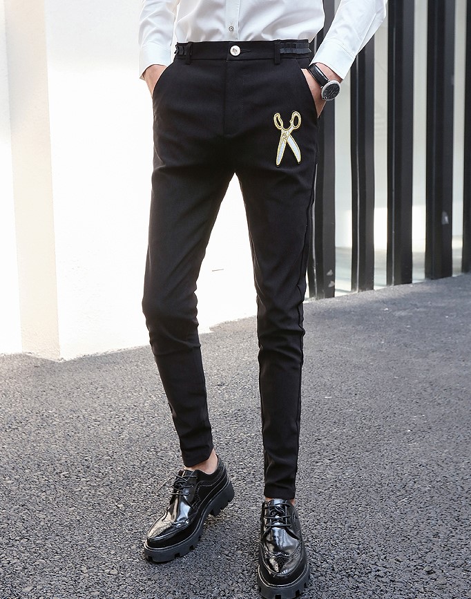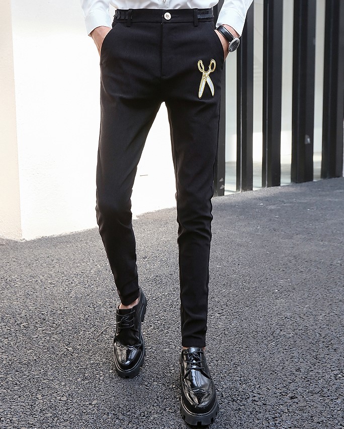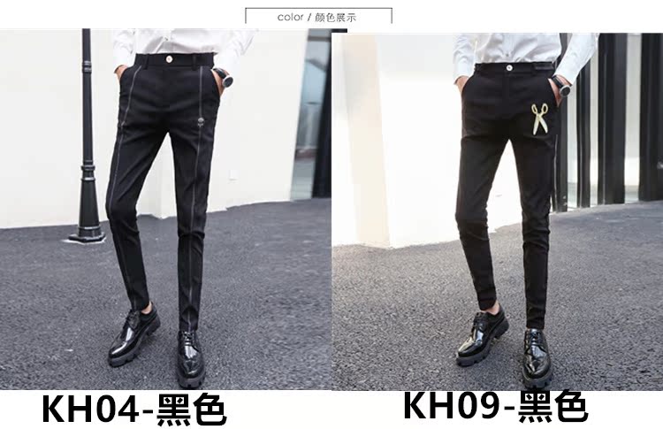 2018秋季男彈力休閑褲青年韓版個性痞帥小腳褲發型師潮流修身褲子1入