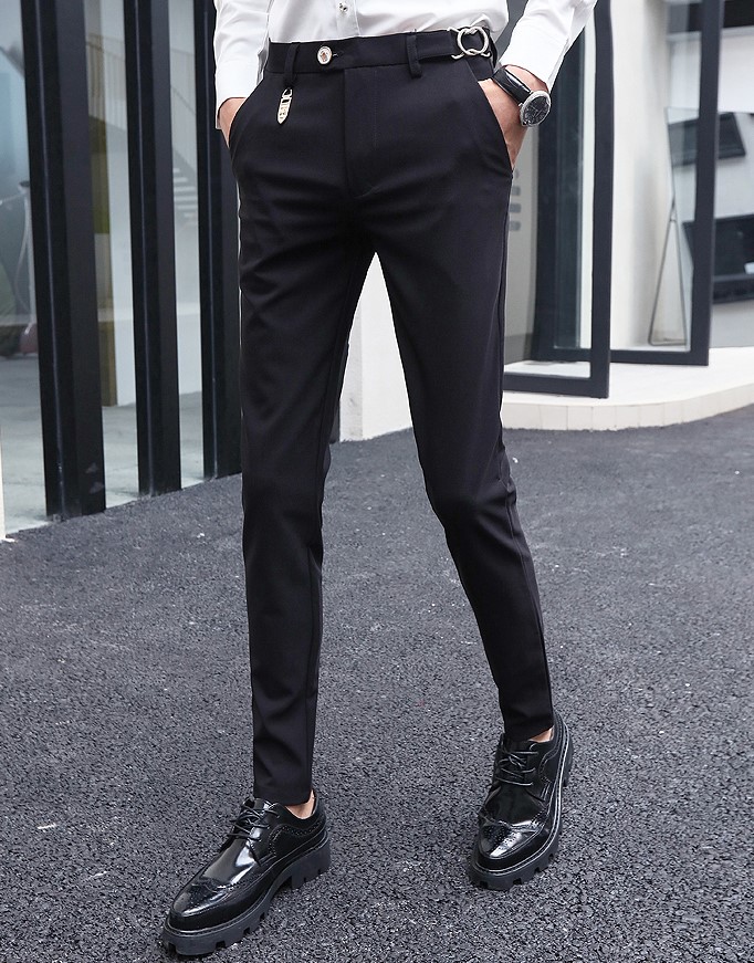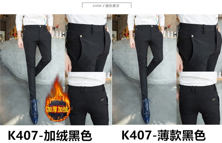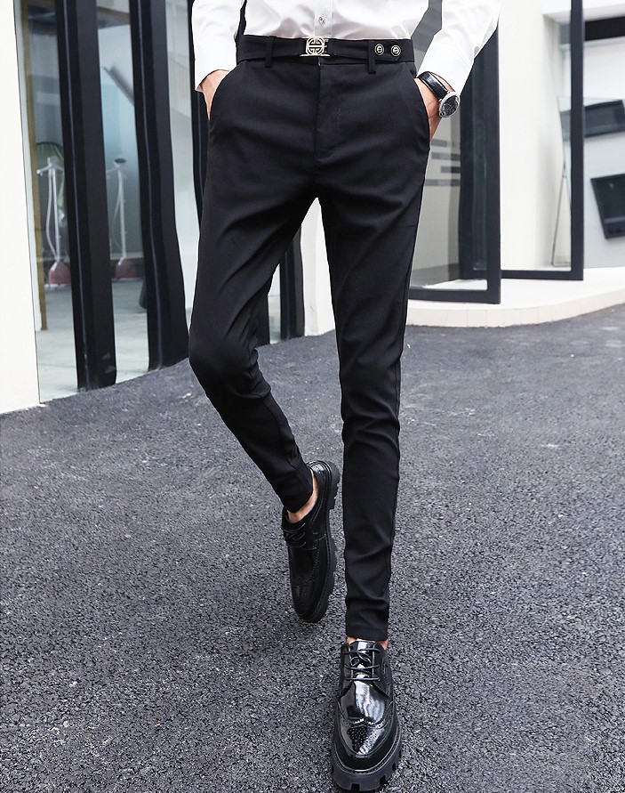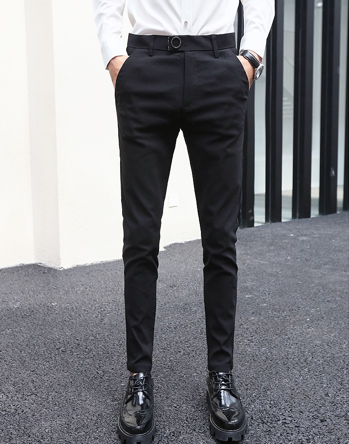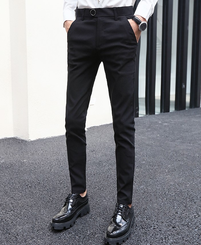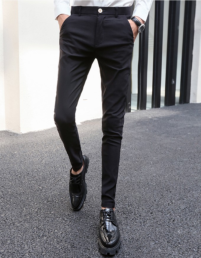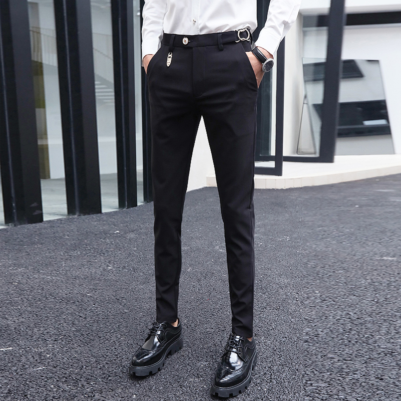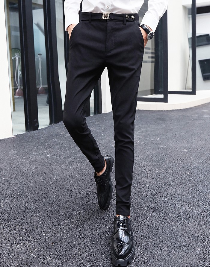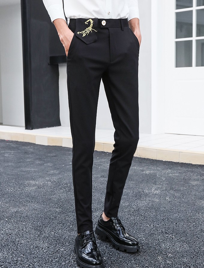 2018秋季男彈力休閑褲青年韓版個性痞帥小腳褲發型師潮流修身褲子1入