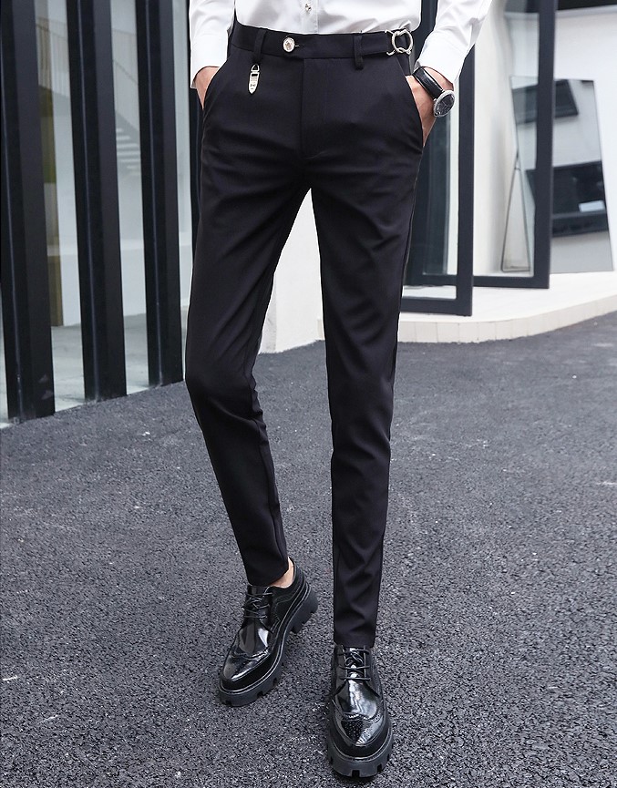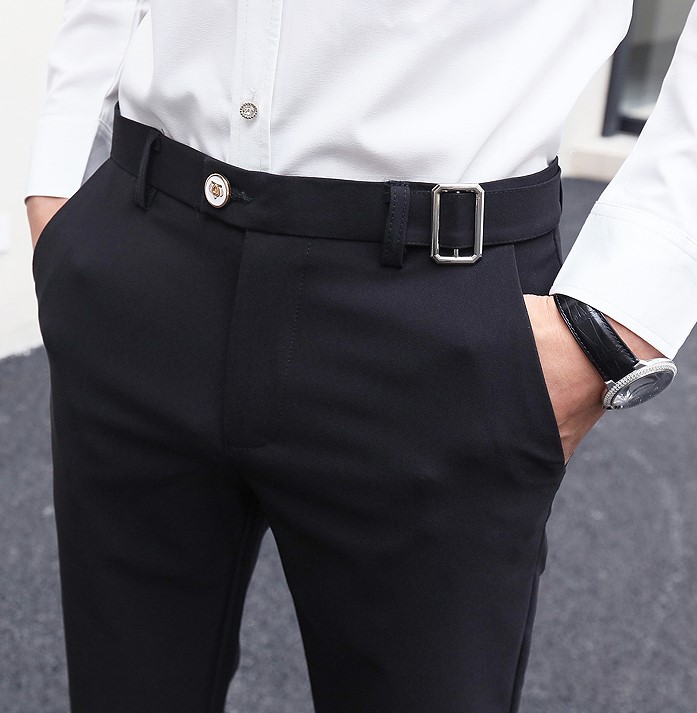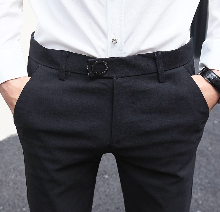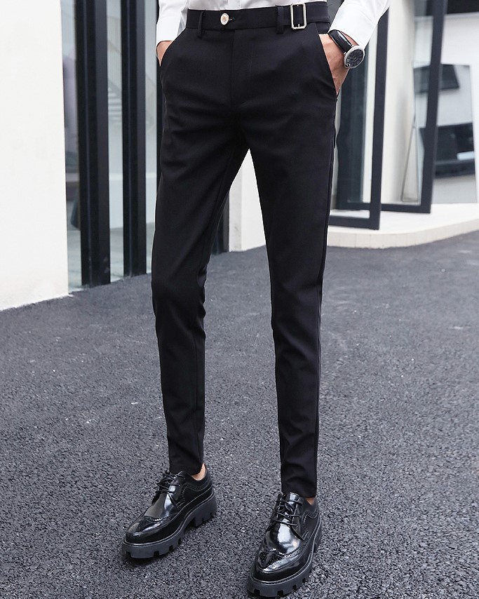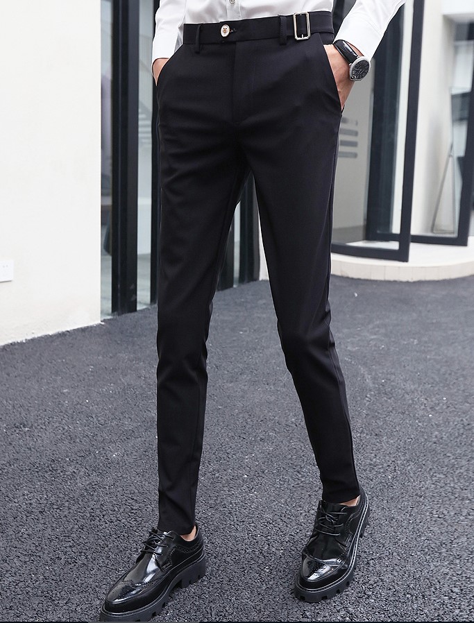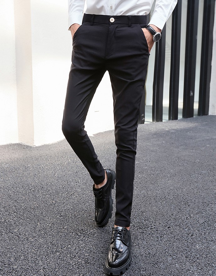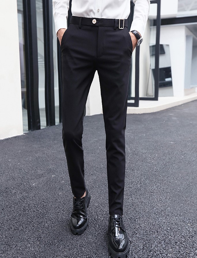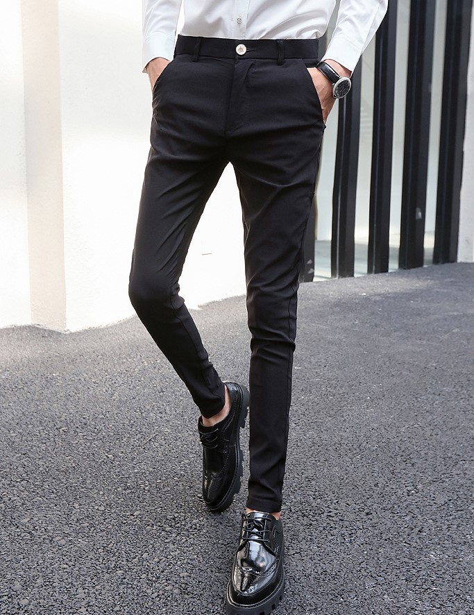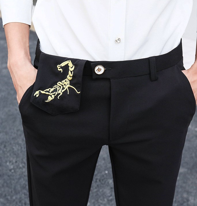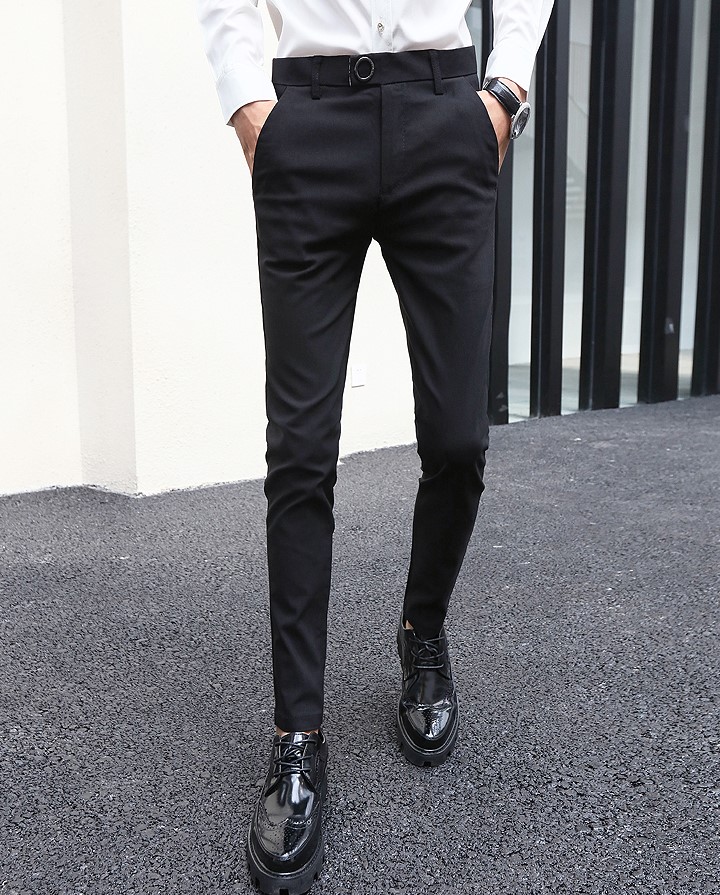 2018秋季男彈力休閑褲青年韓版個性痞帥小腳褲發型師潮流修身褲子1入