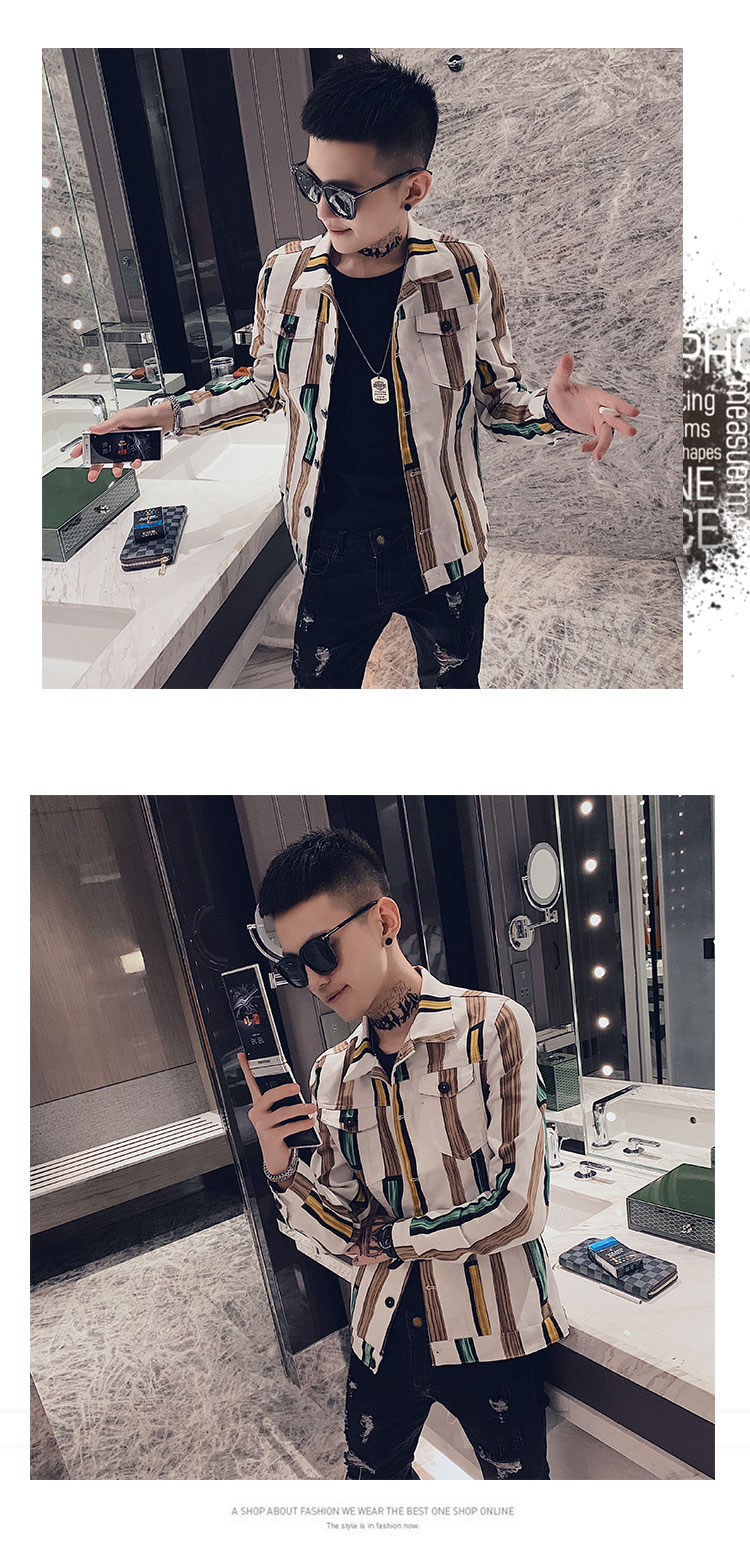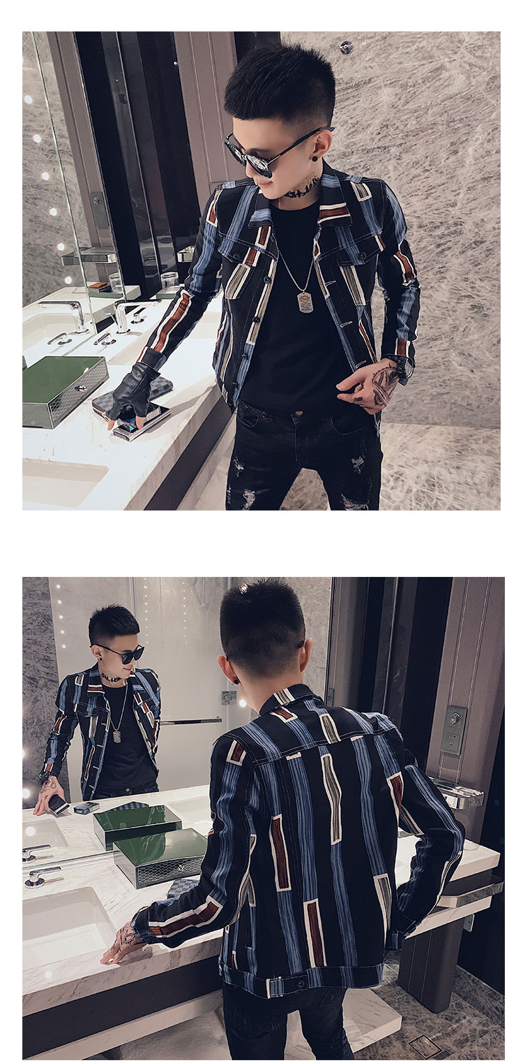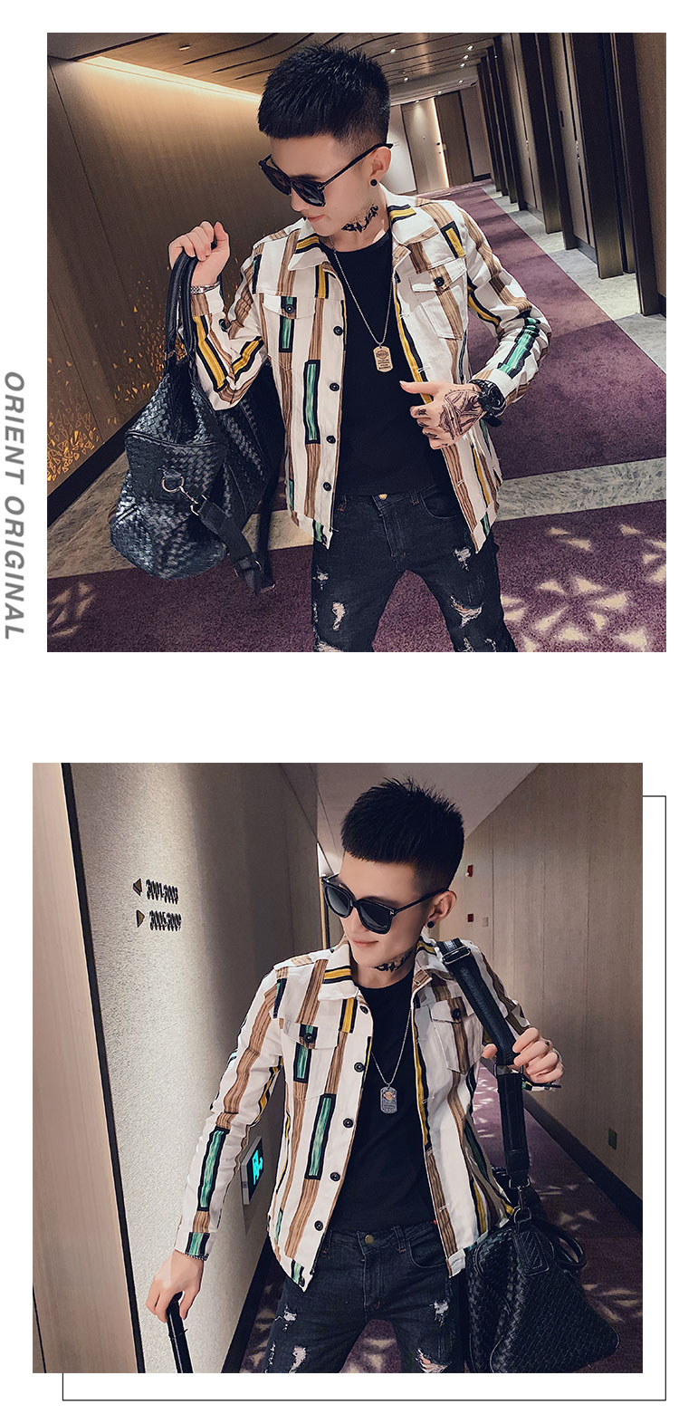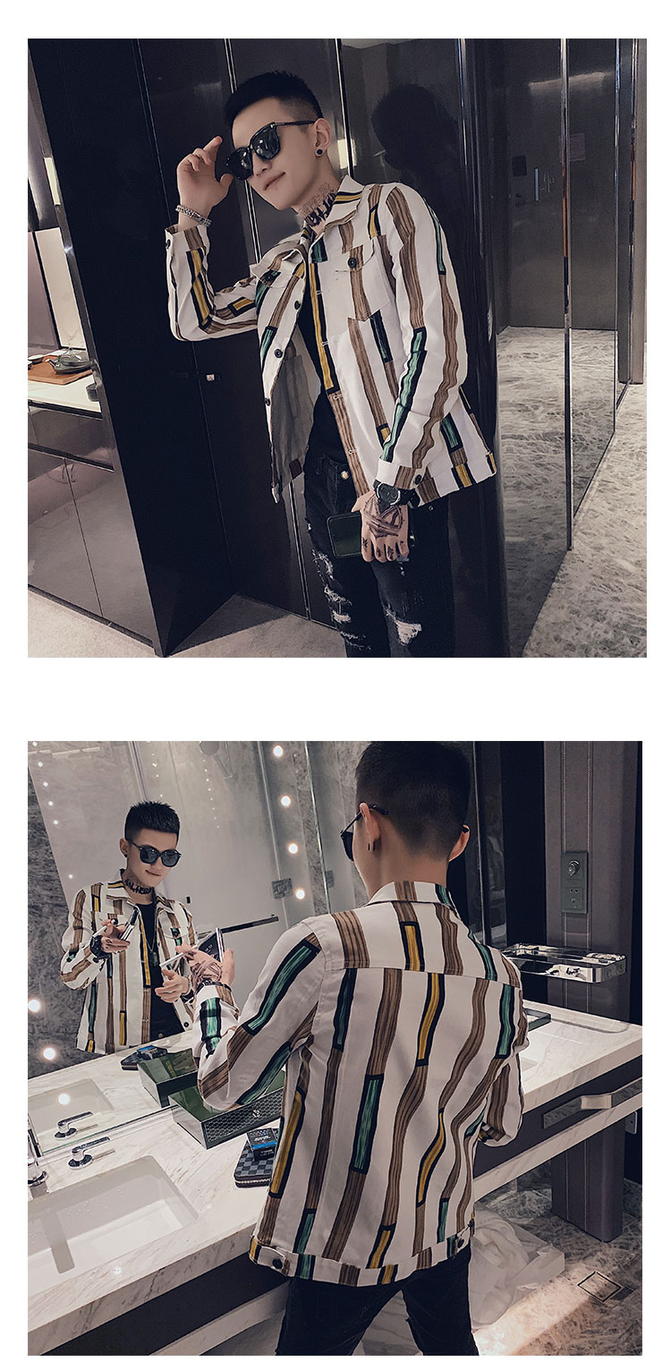 2019秋季精神小伙條紋外套男韓版修身夾克社會網紅帥氣短款上衣服1入