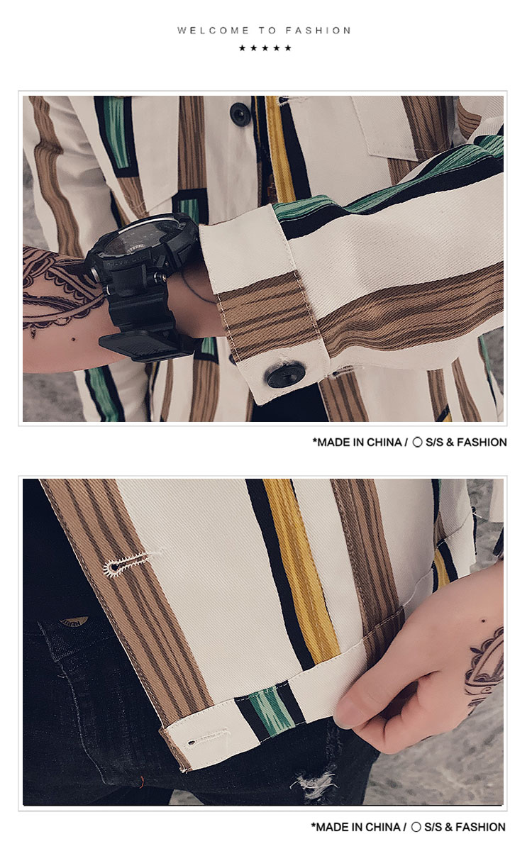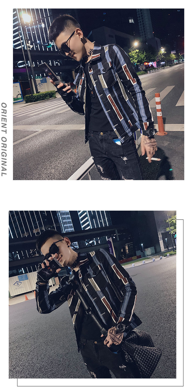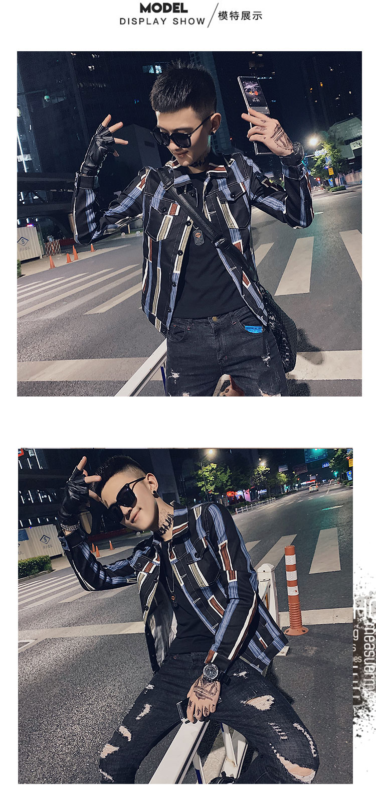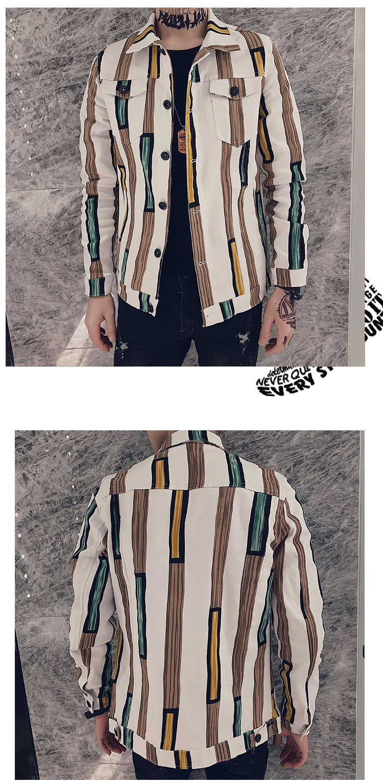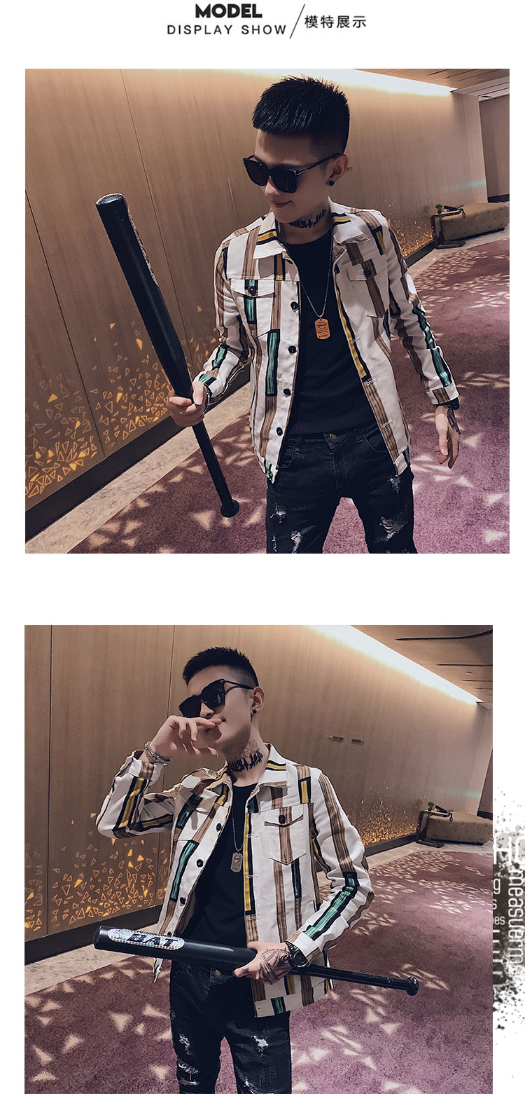 2019秋季精神小伙條紋外套男韓版修身夾克社會網紅帥氣短款上衣服1入