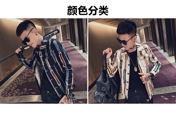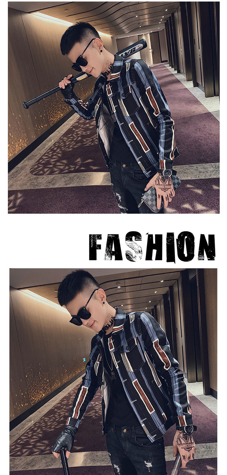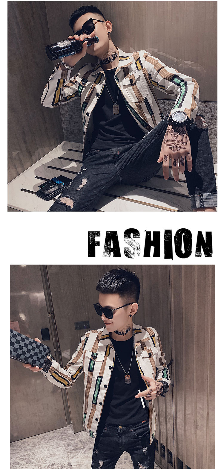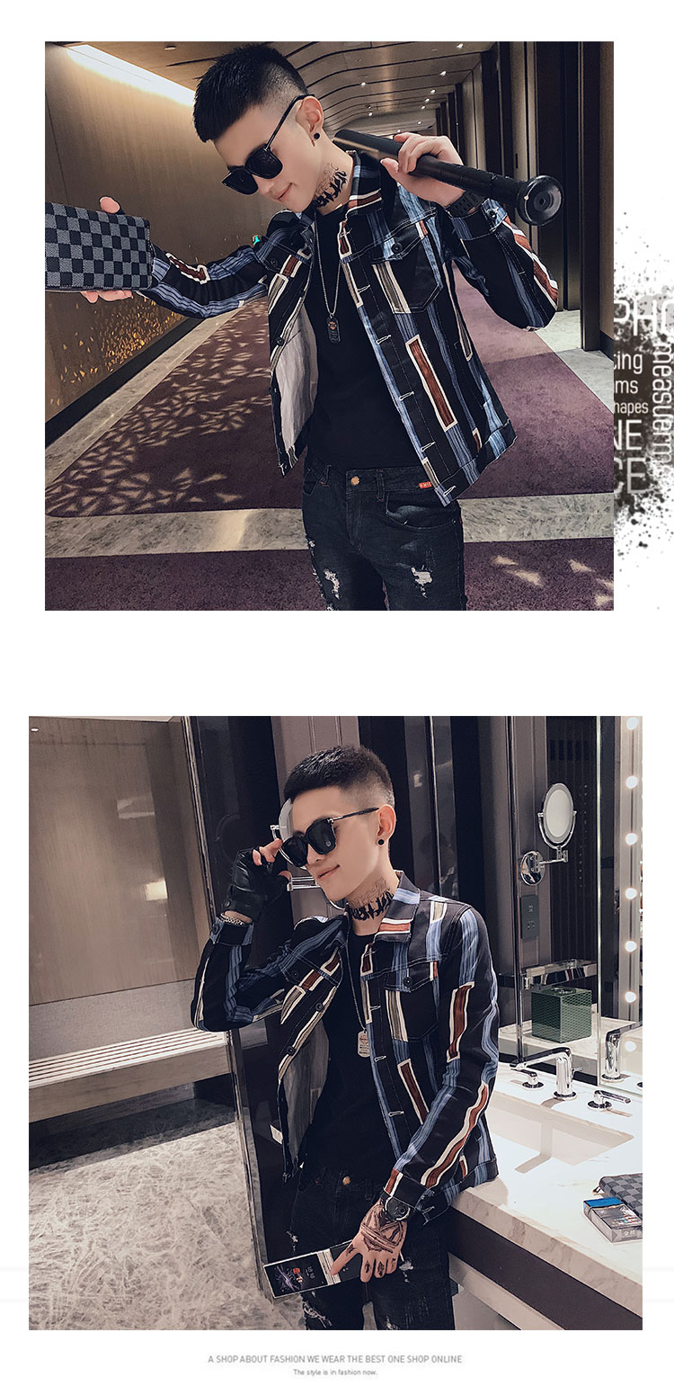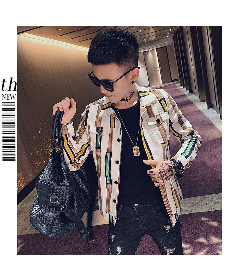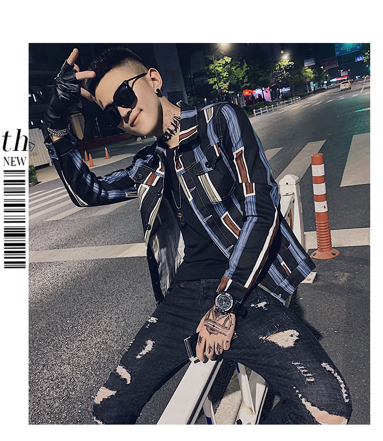 2019秋季精神小伙條紋外套男韓版修身夾克社會網紅帥氣短款上衣服1入