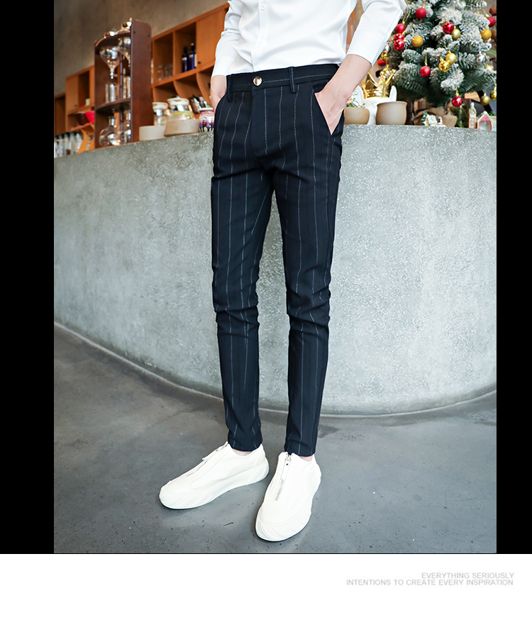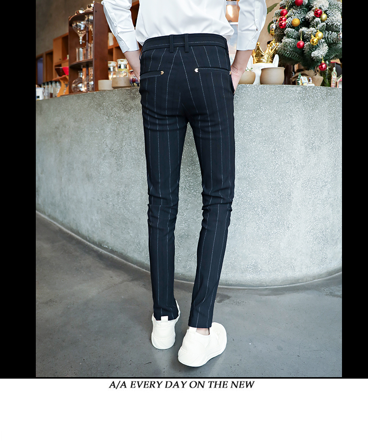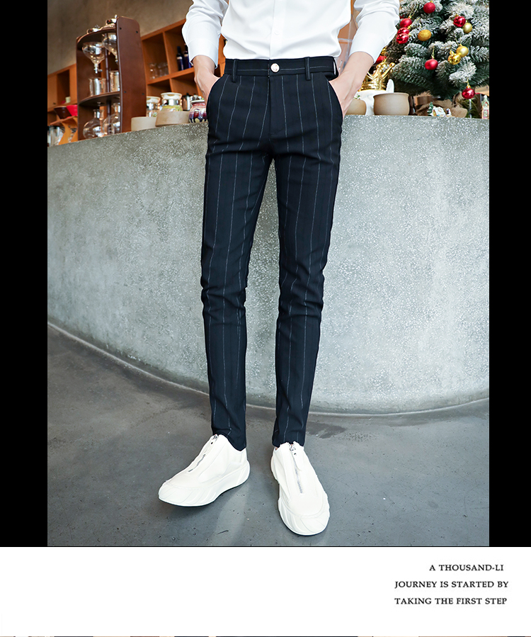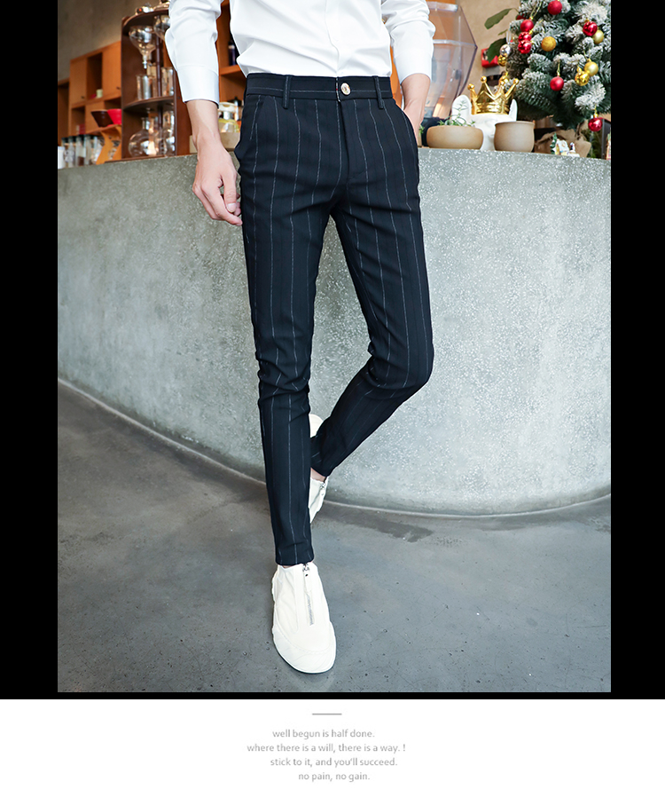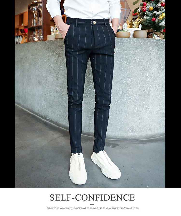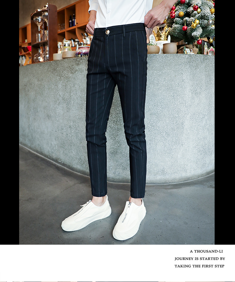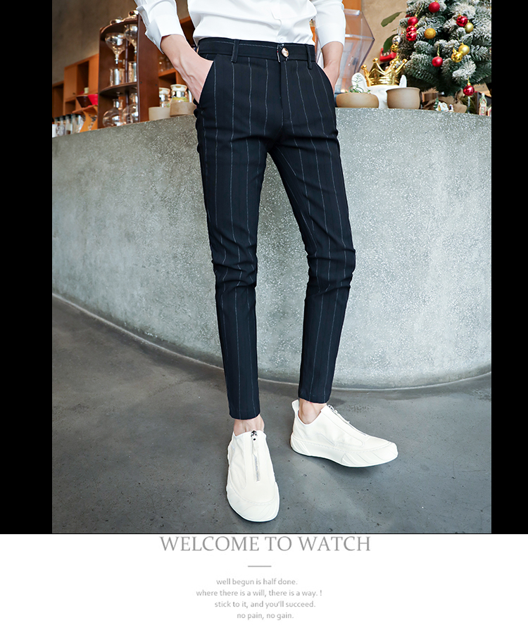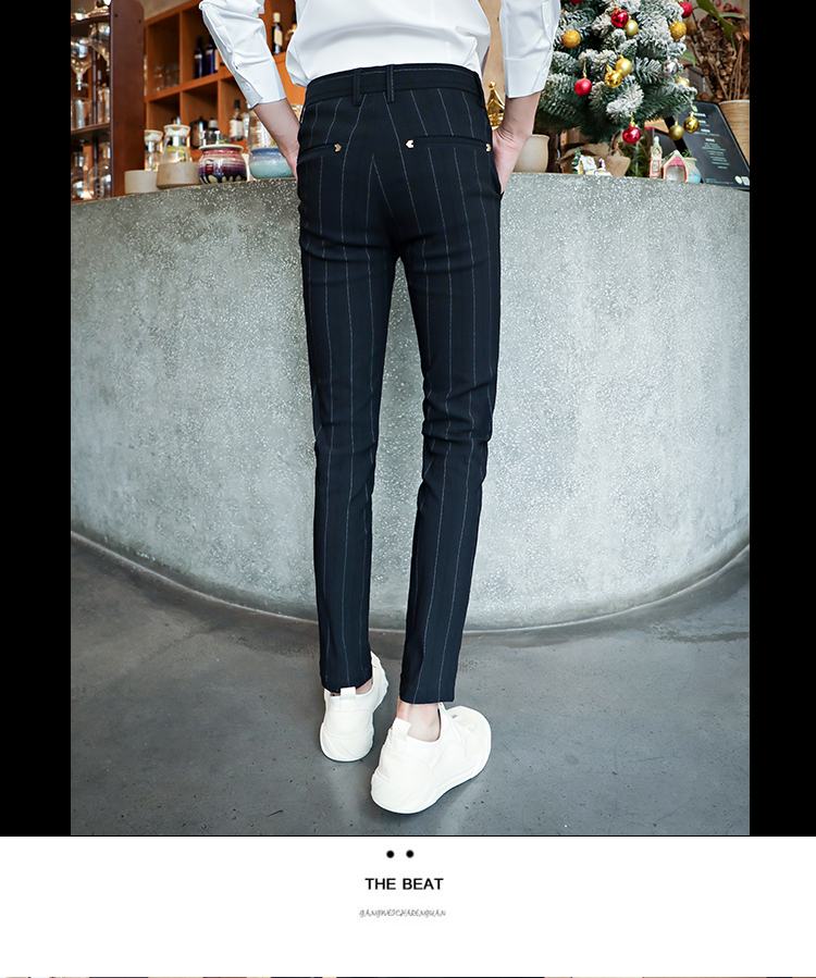 2019新款秋冬條紋休閑褲男士韓版帥氣小腳褲青年發型師修身褲子潮1入