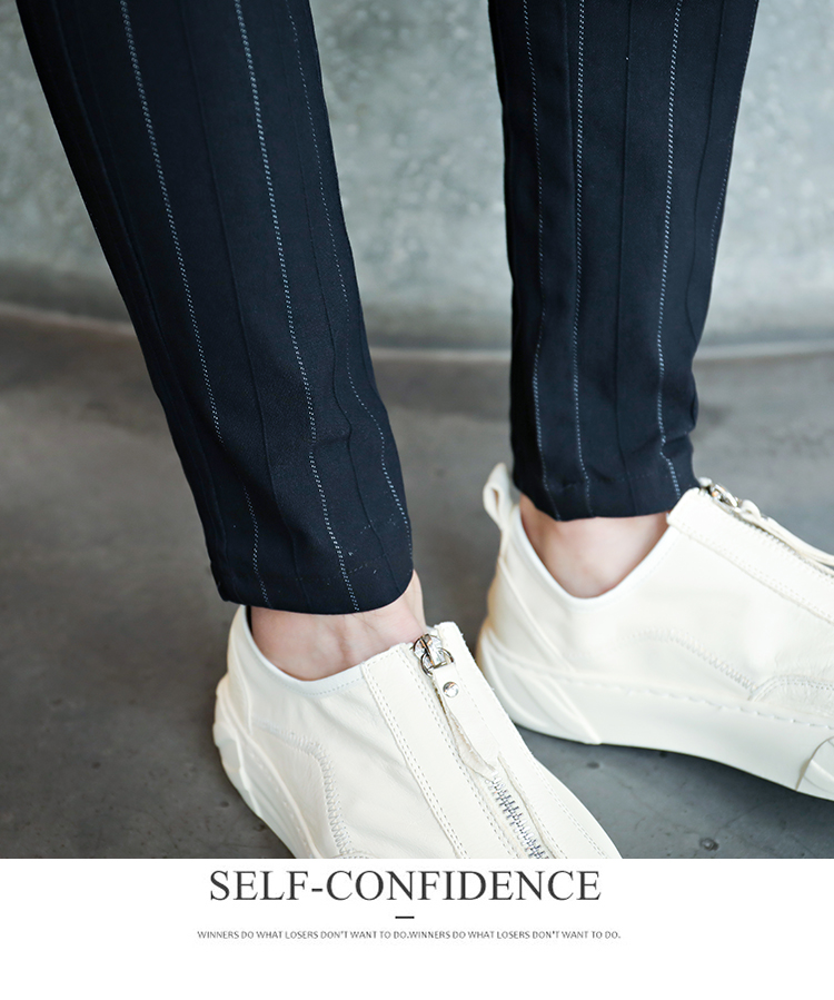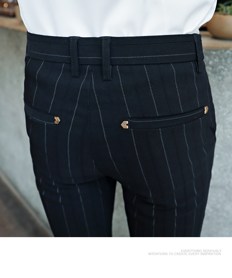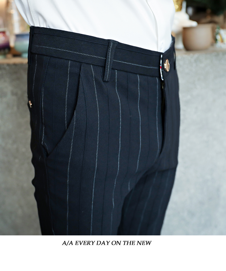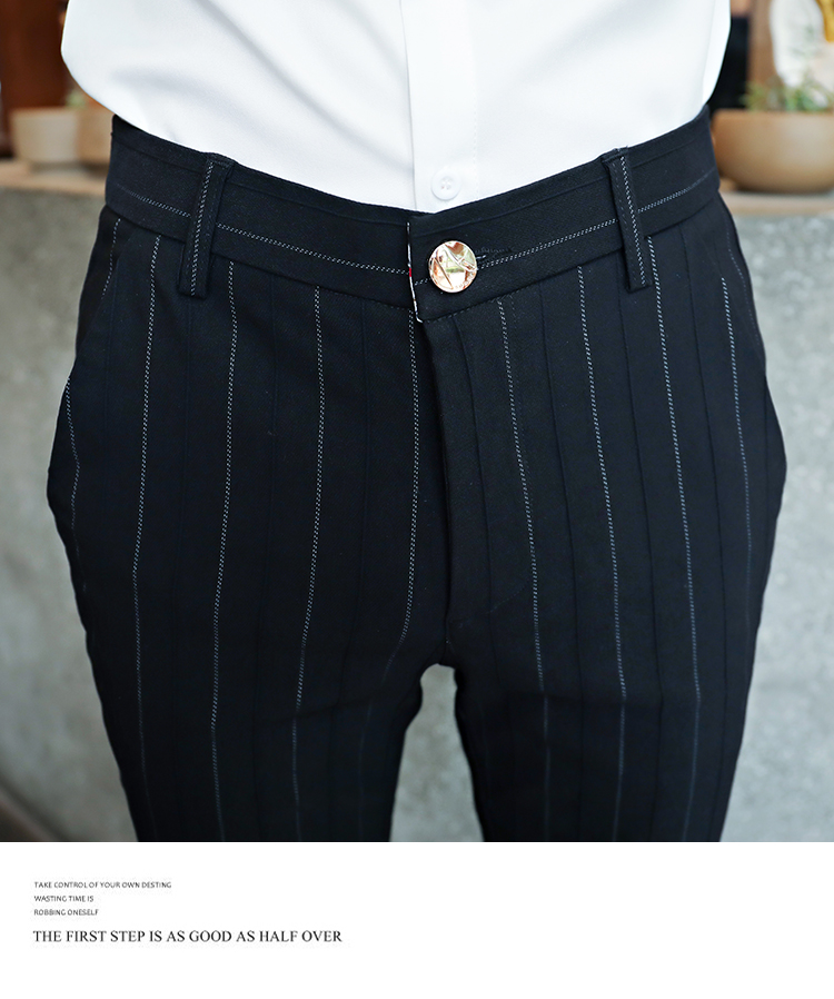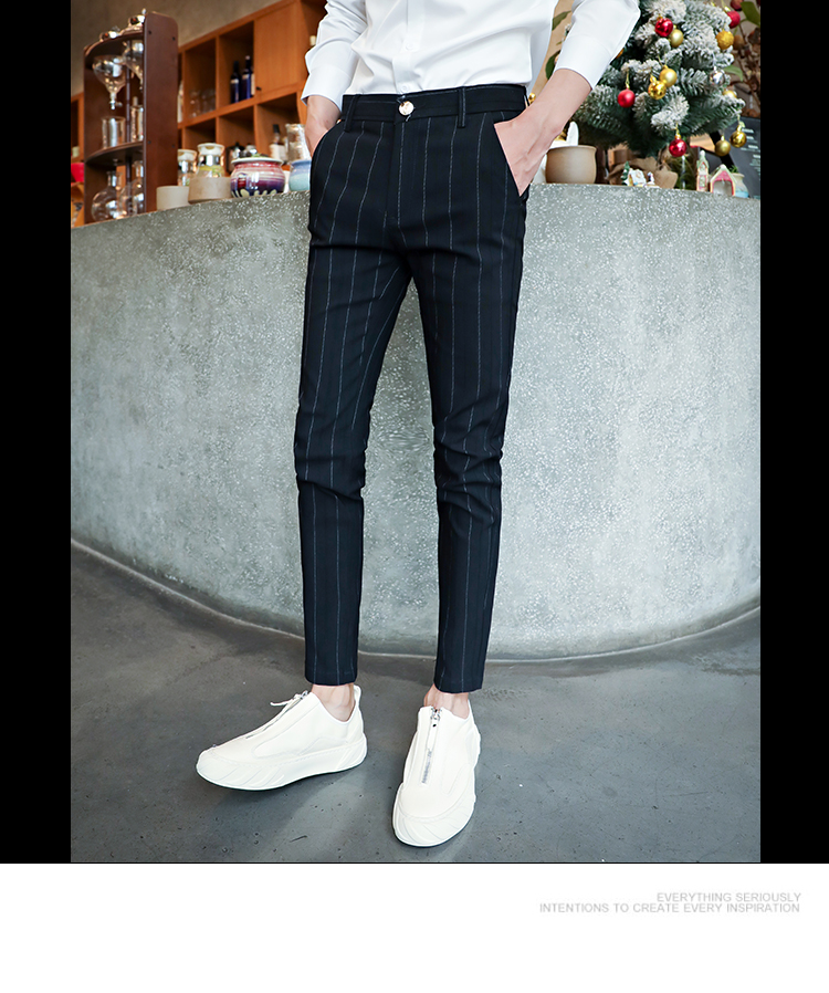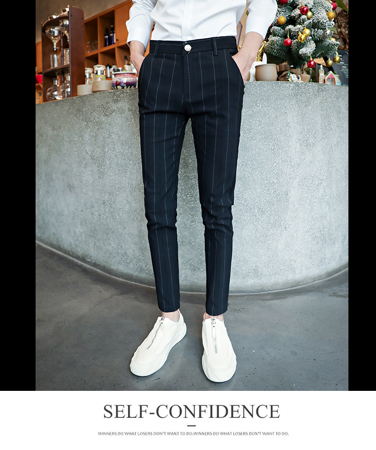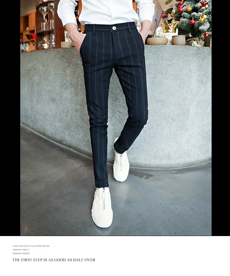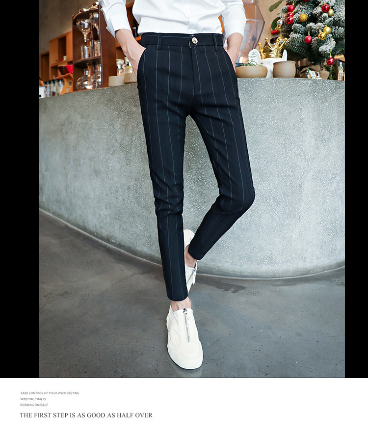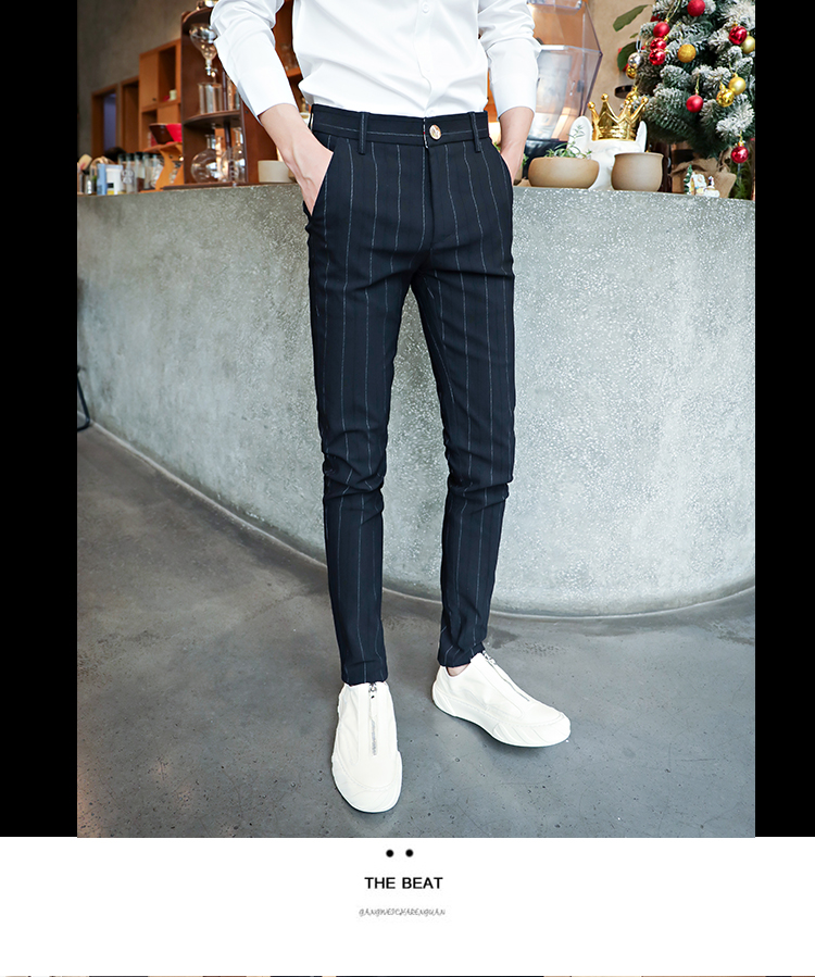 2019新款秋冬條紋休閑褲男士韓版帥氣小腳褲青年發型師修身褲子潮1入