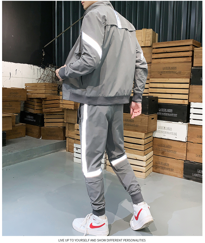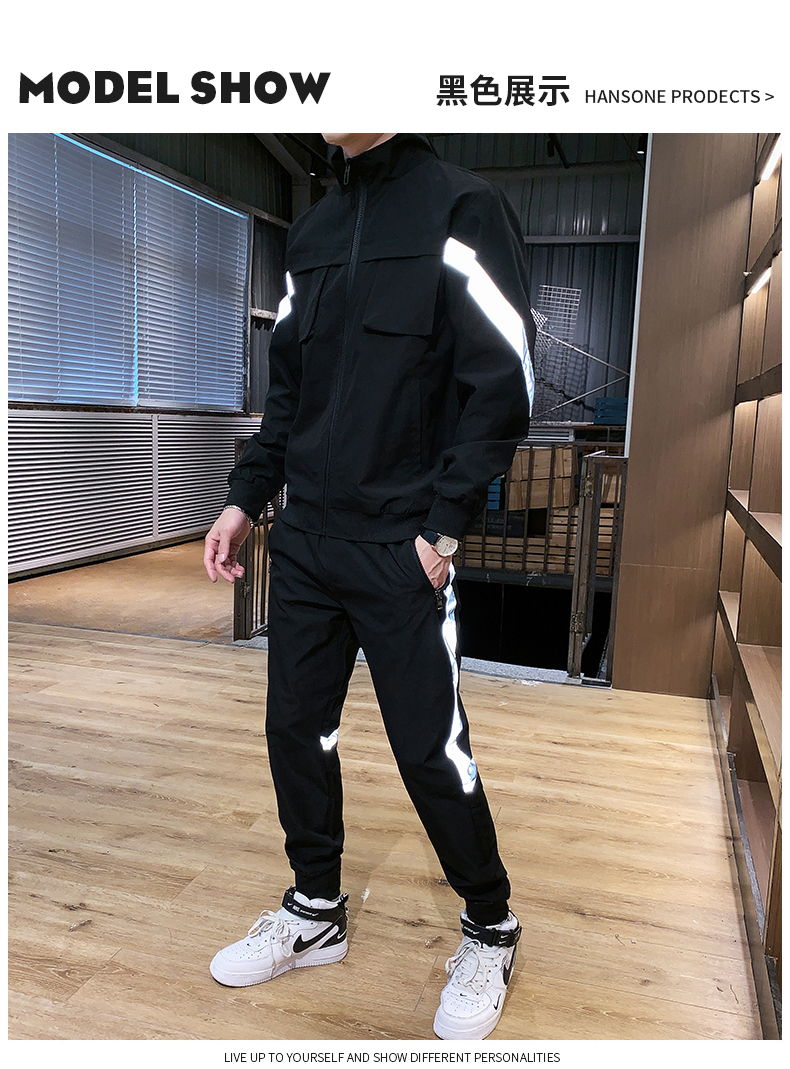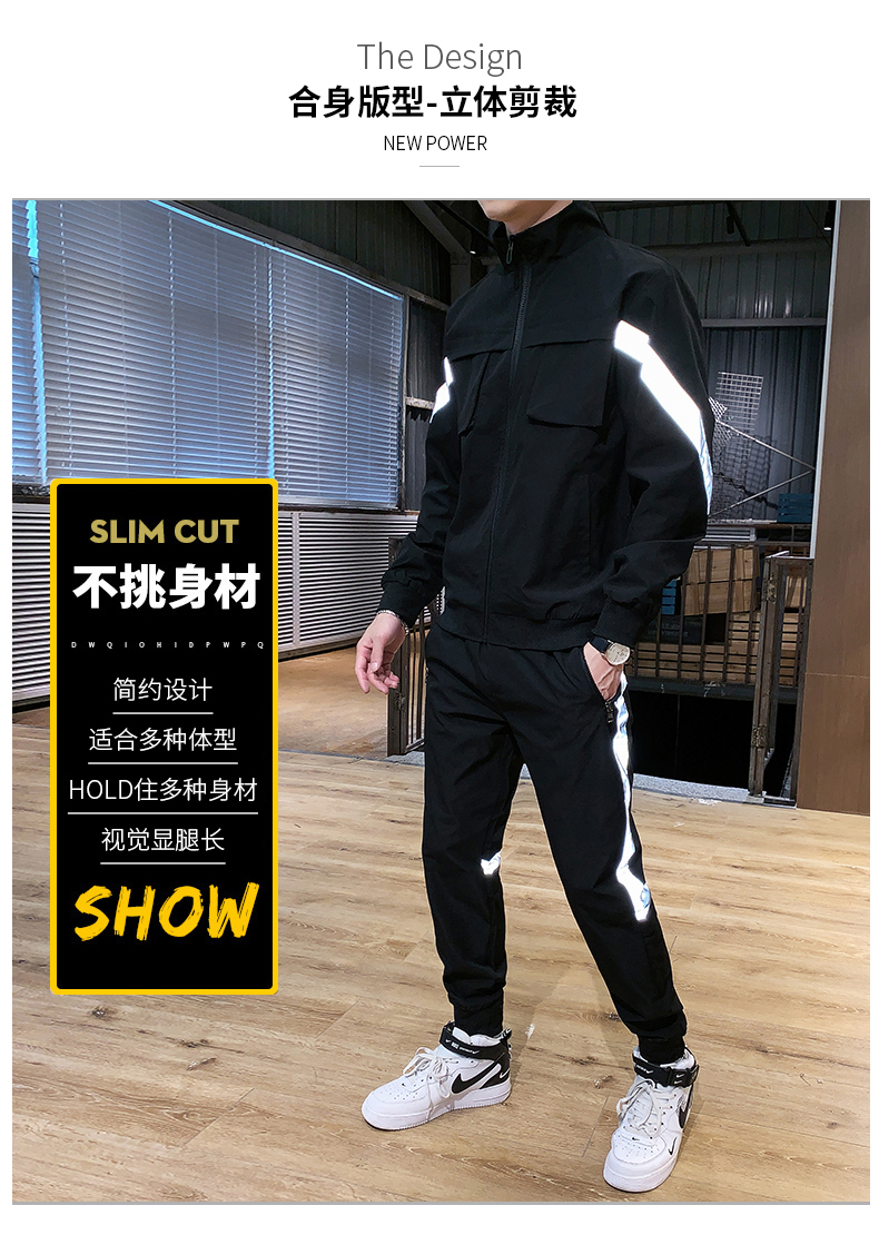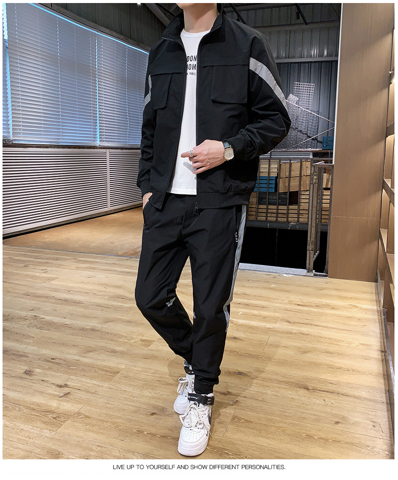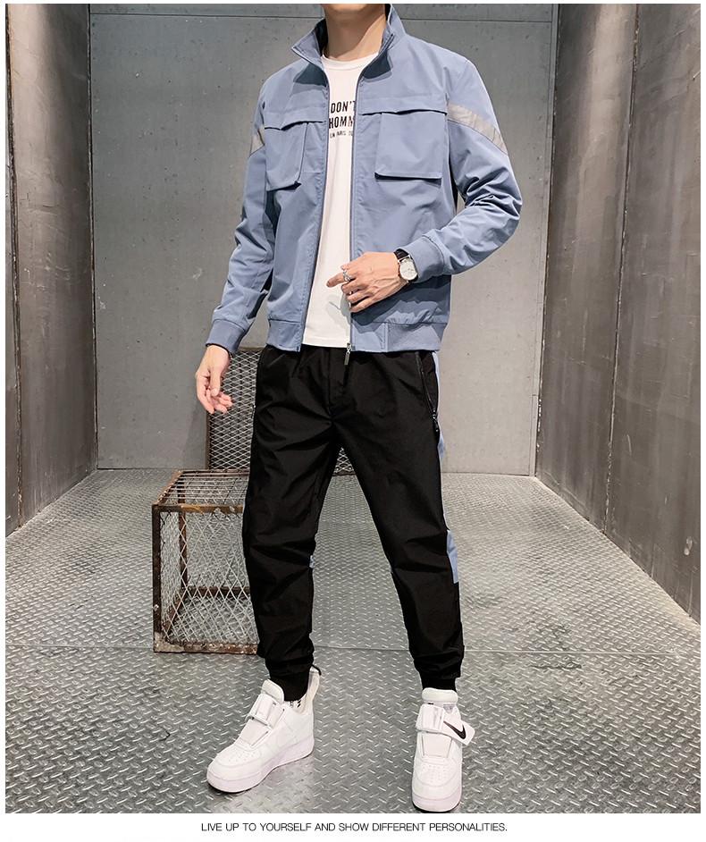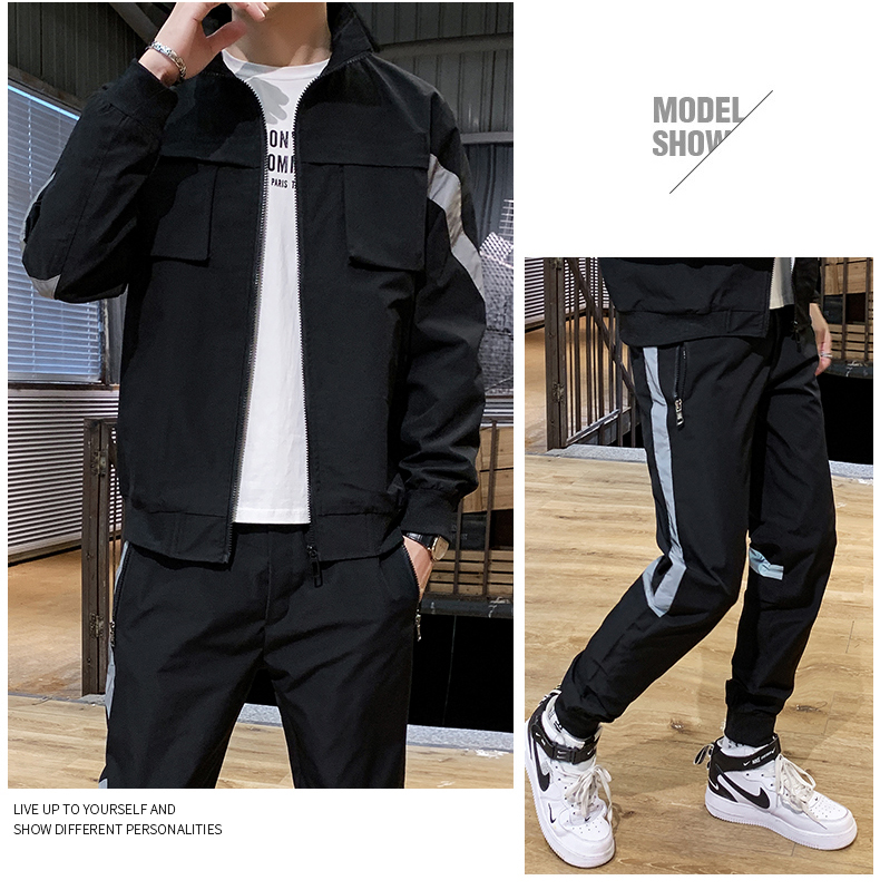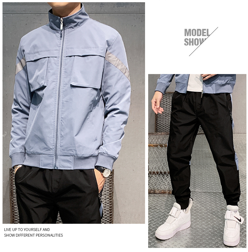 2019新款秋季薄款夾克男士韓版休閑運動套裝男網紅修身潮牌外套男1入