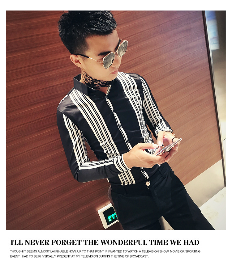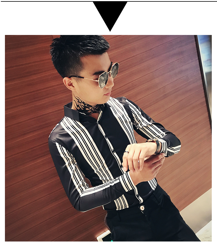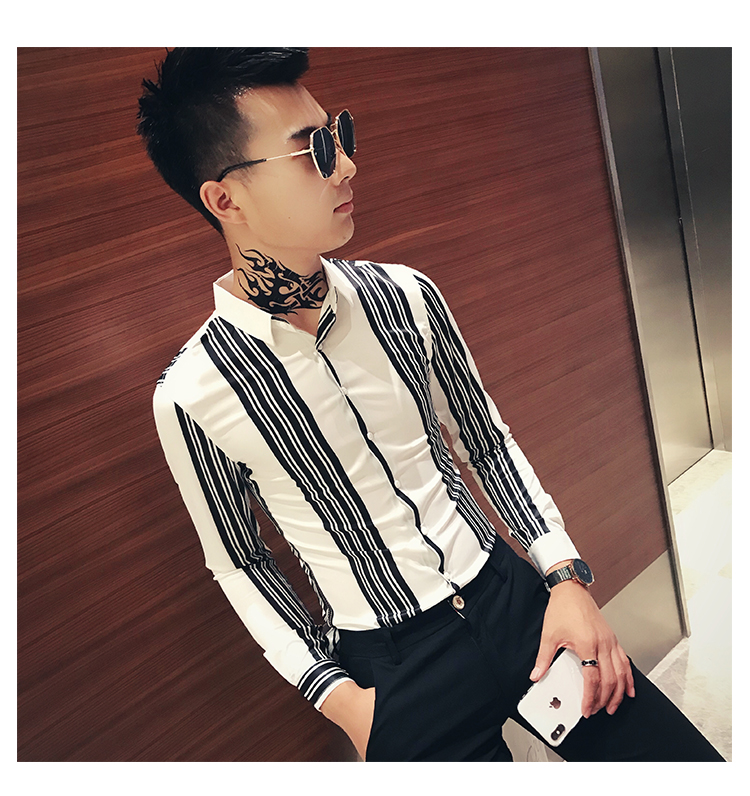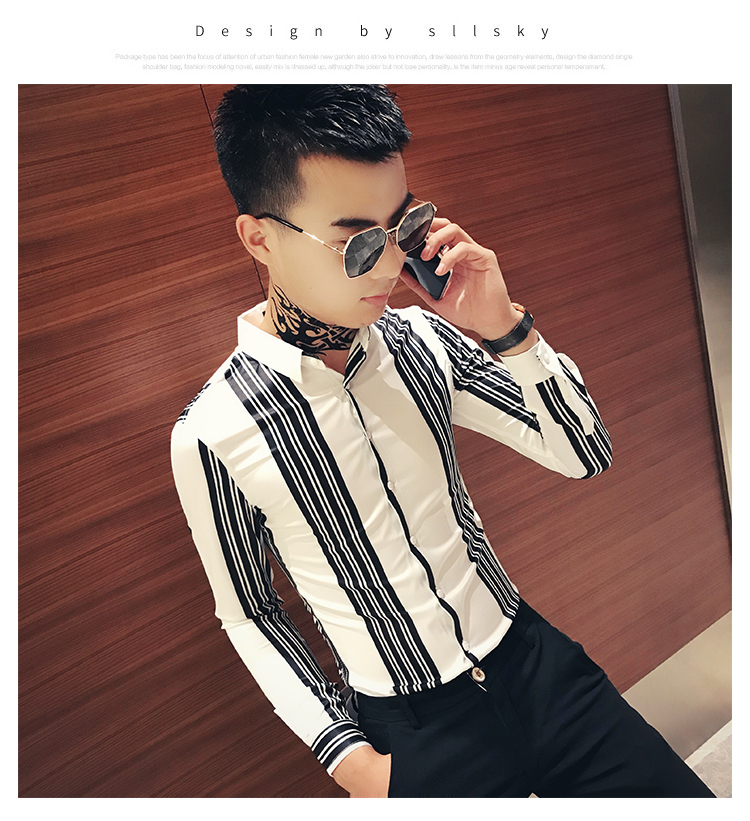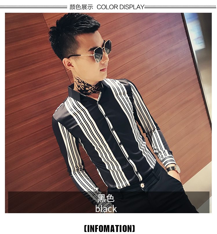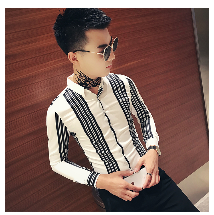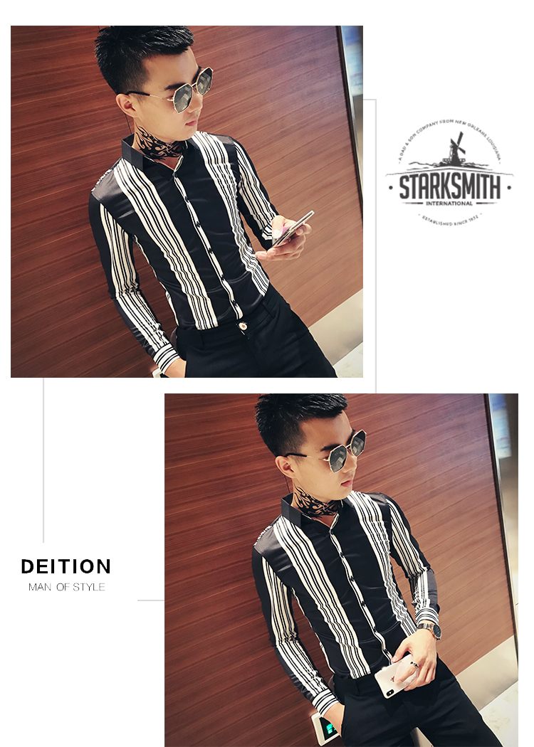 2019發型師個性條紋襯衫男網紅韓版修身長袖襯衣社會人夜店男裝潮1入