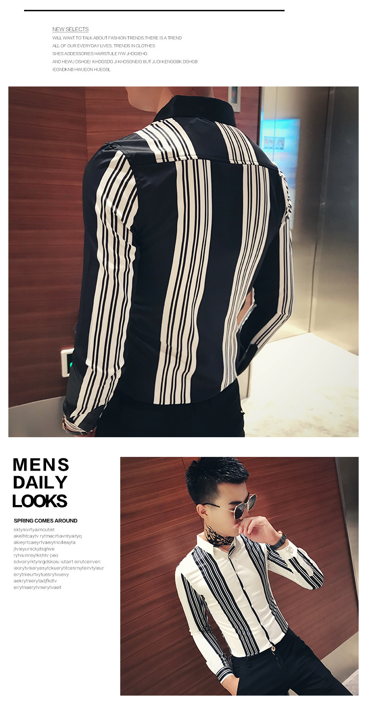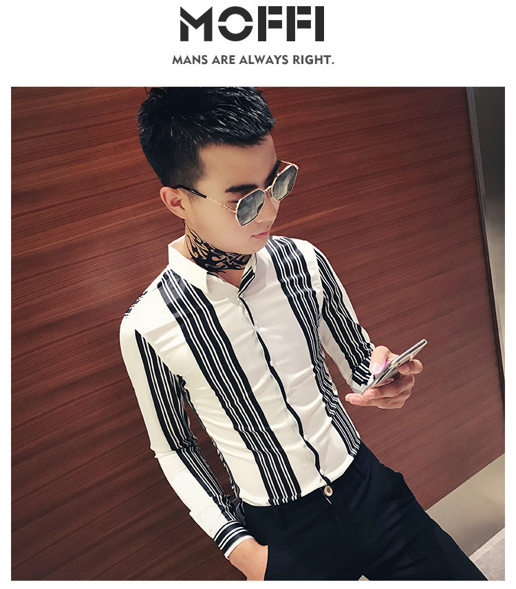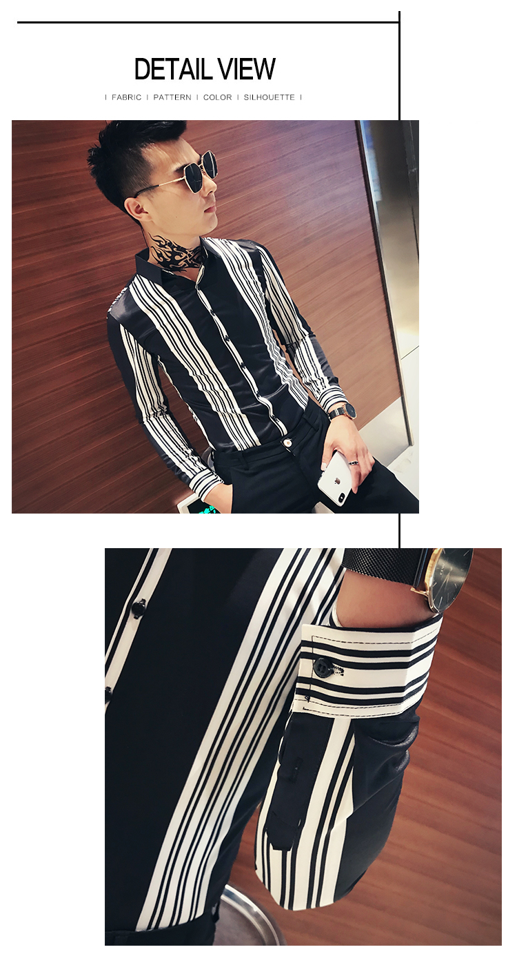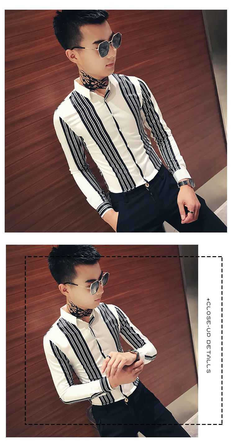 2019發型師個性條紋襯衫男網紅韓版修身長袖襯衣社會人夜店男裝潮1入