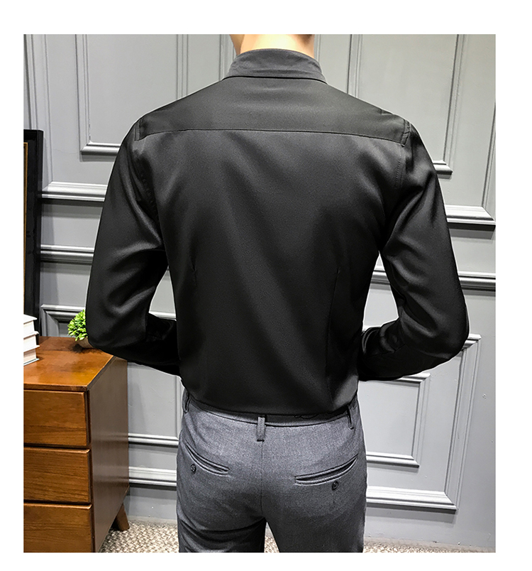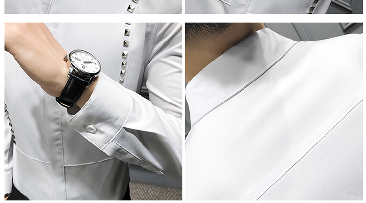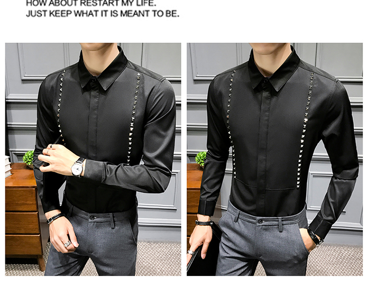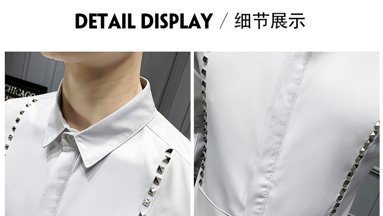 2019鉚釘修身男襯衣純色夜店風長袖襯衫KTV工服襯衫大碼男修身1入