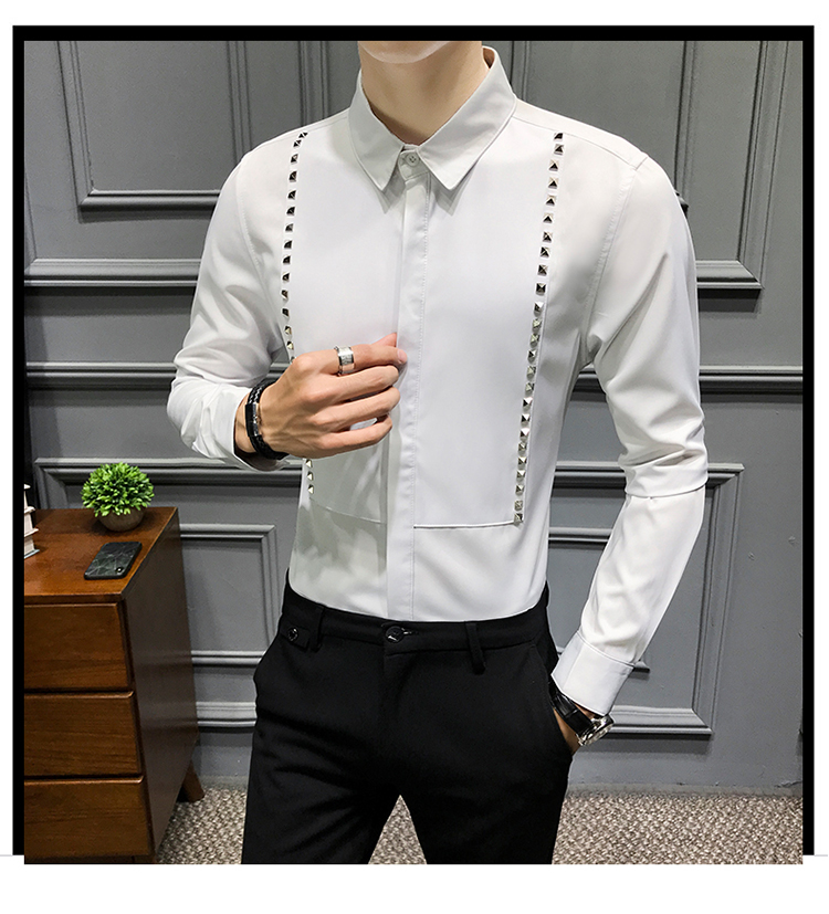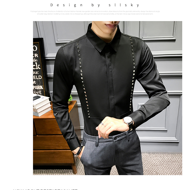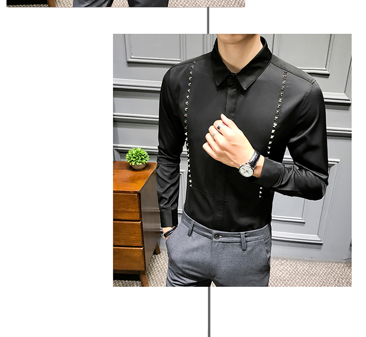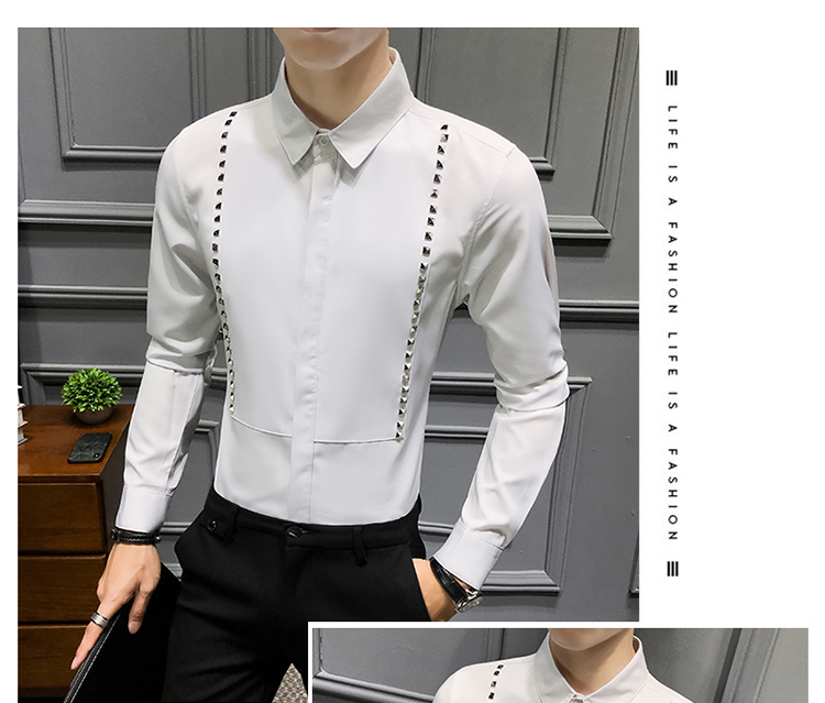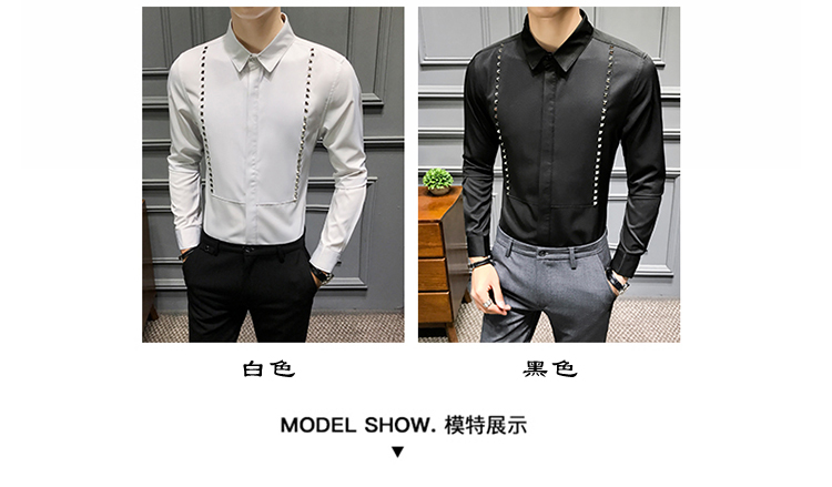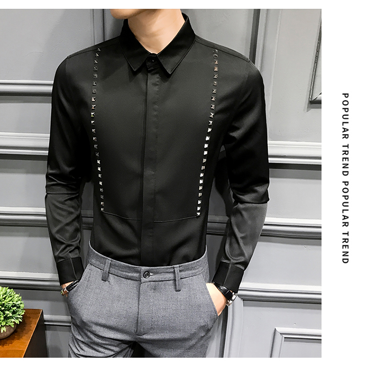 鉚釘男純色夜店風長袖襯衫KTV少爺襯衫大碼