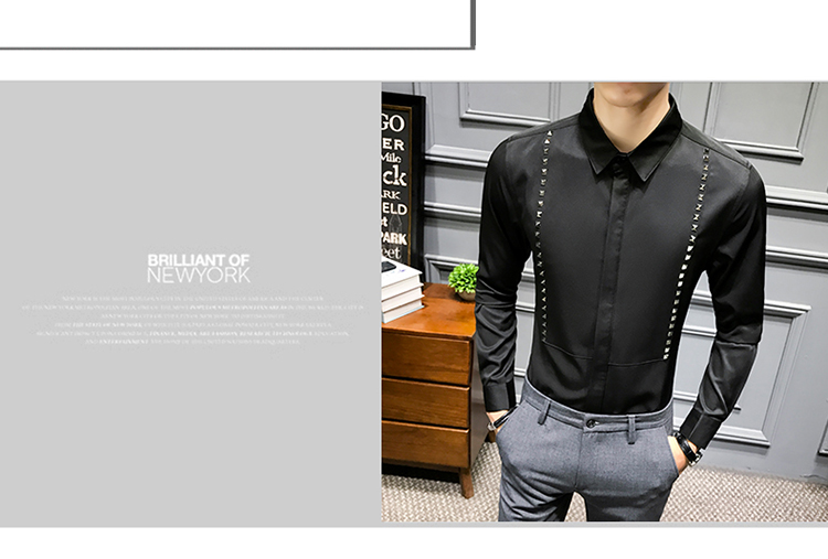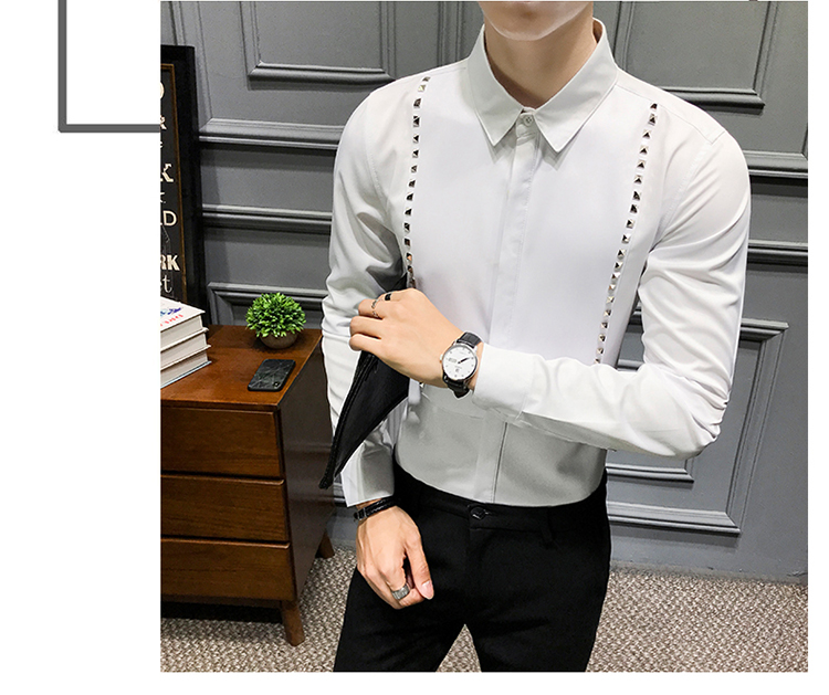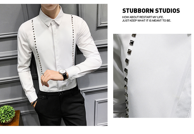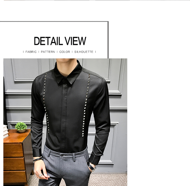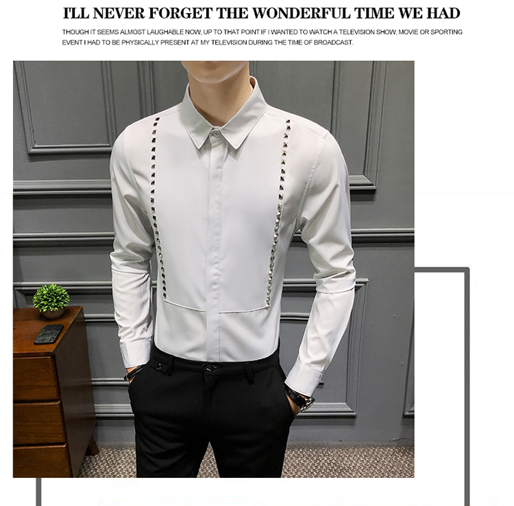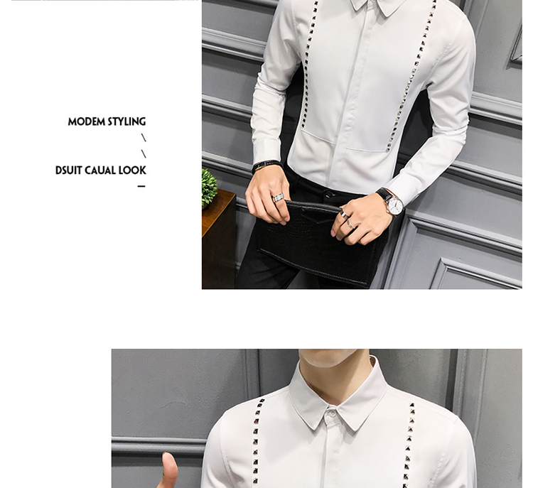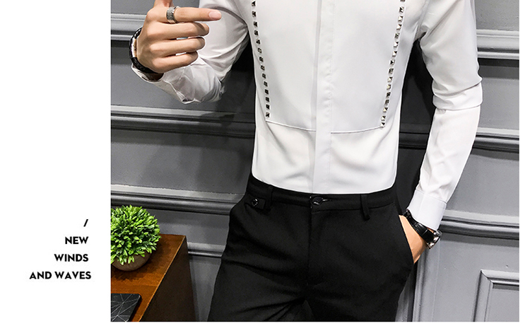 鉚釘男純色夜店風長袖襯衫KTV少爺襯衫大碼