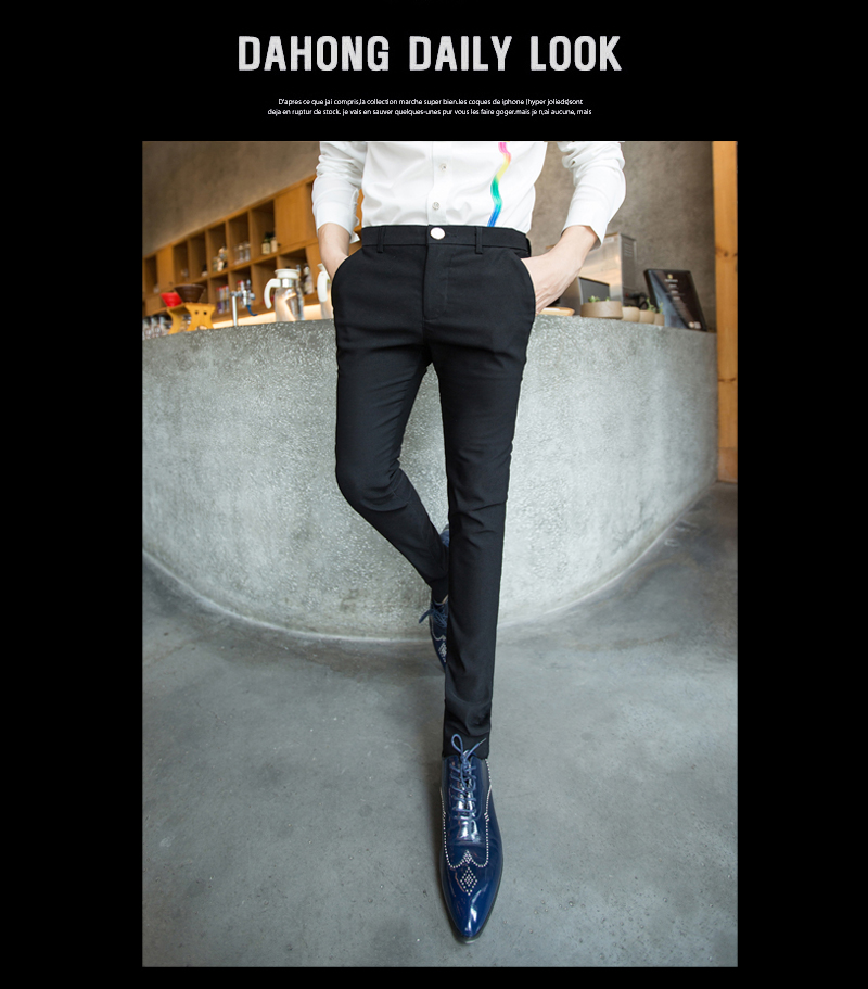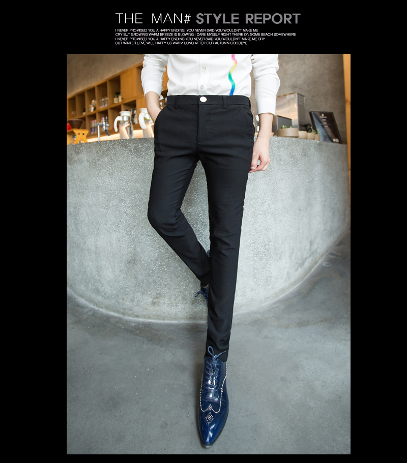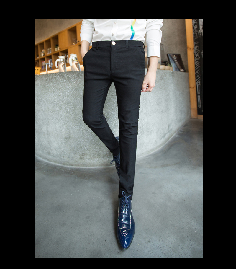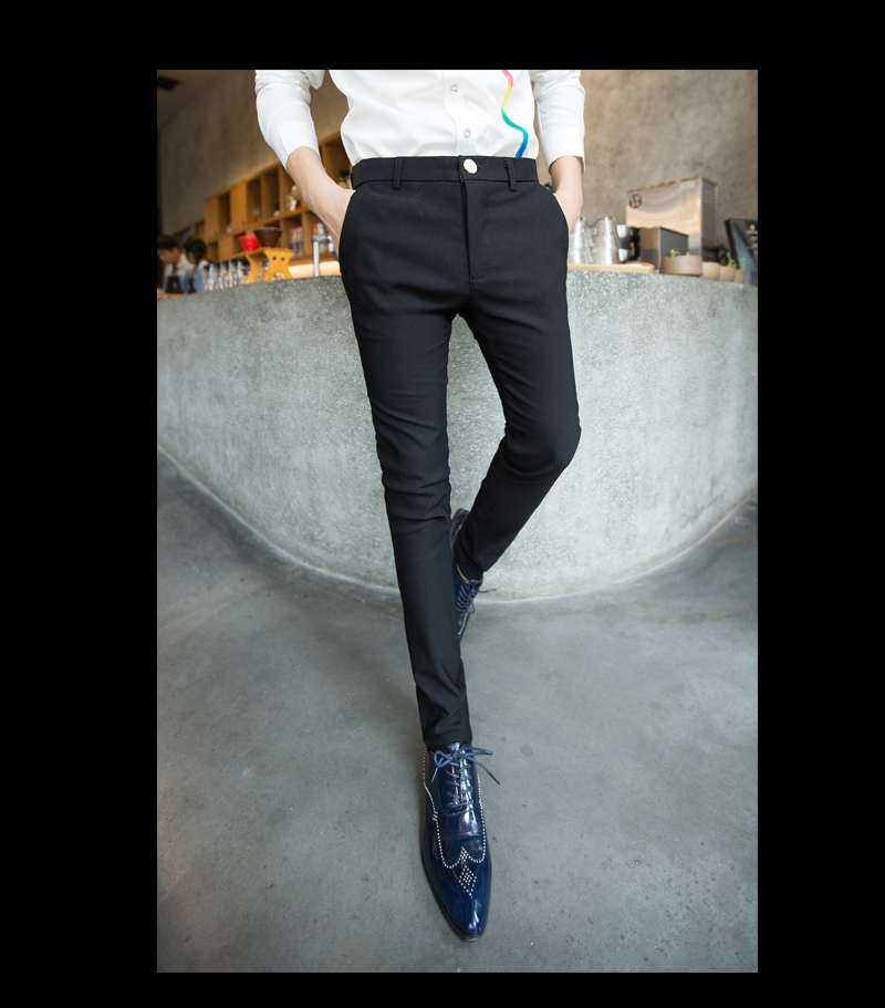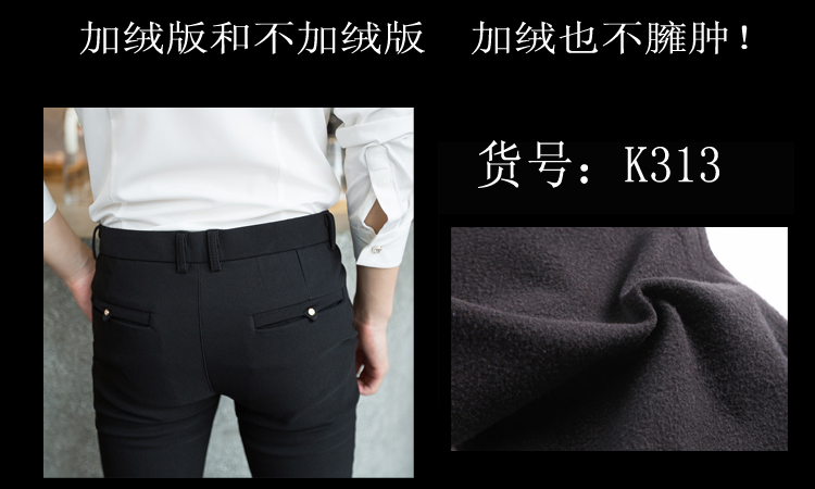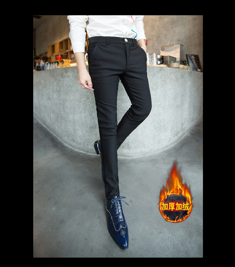 2018秋冬季潮流緊身小腳褲發型師韓版加絨保暖休閑褲男青年修身褲1入