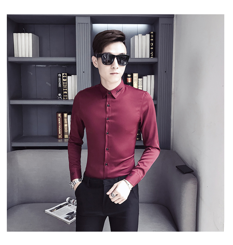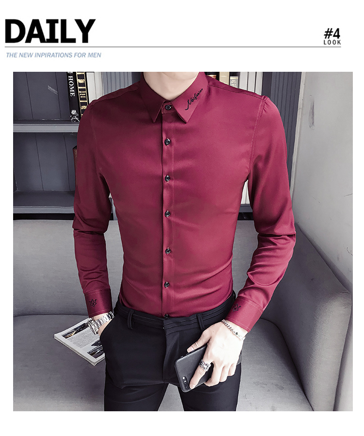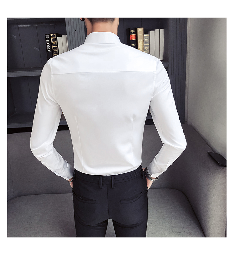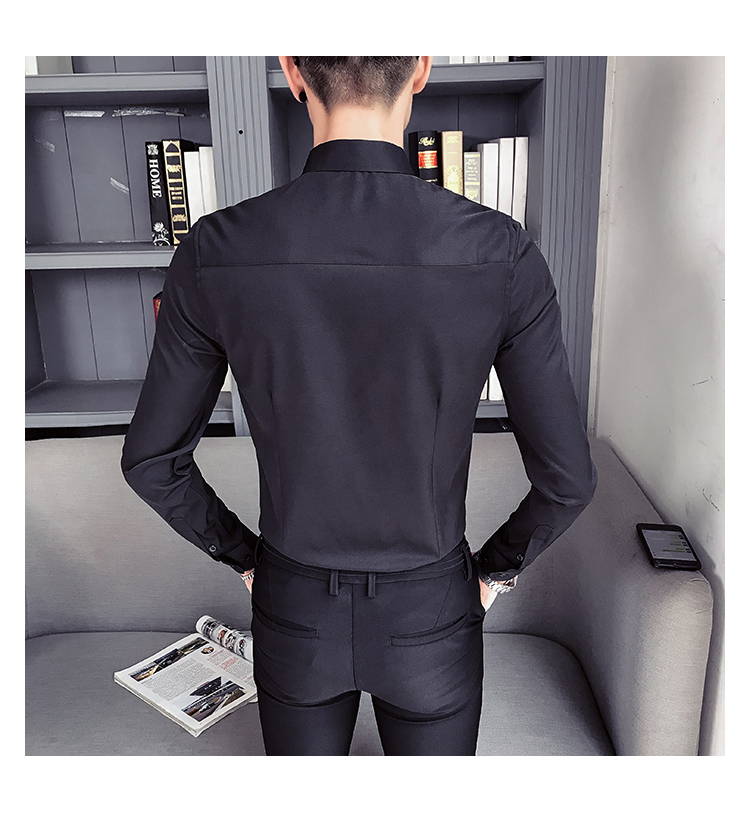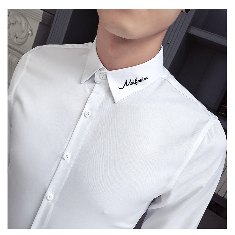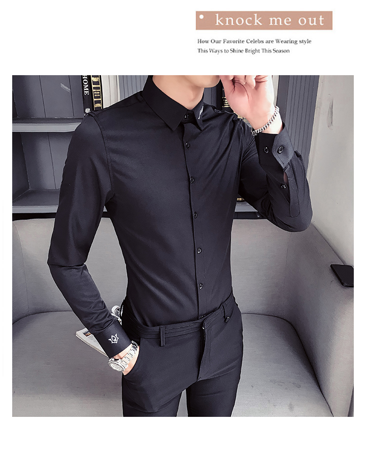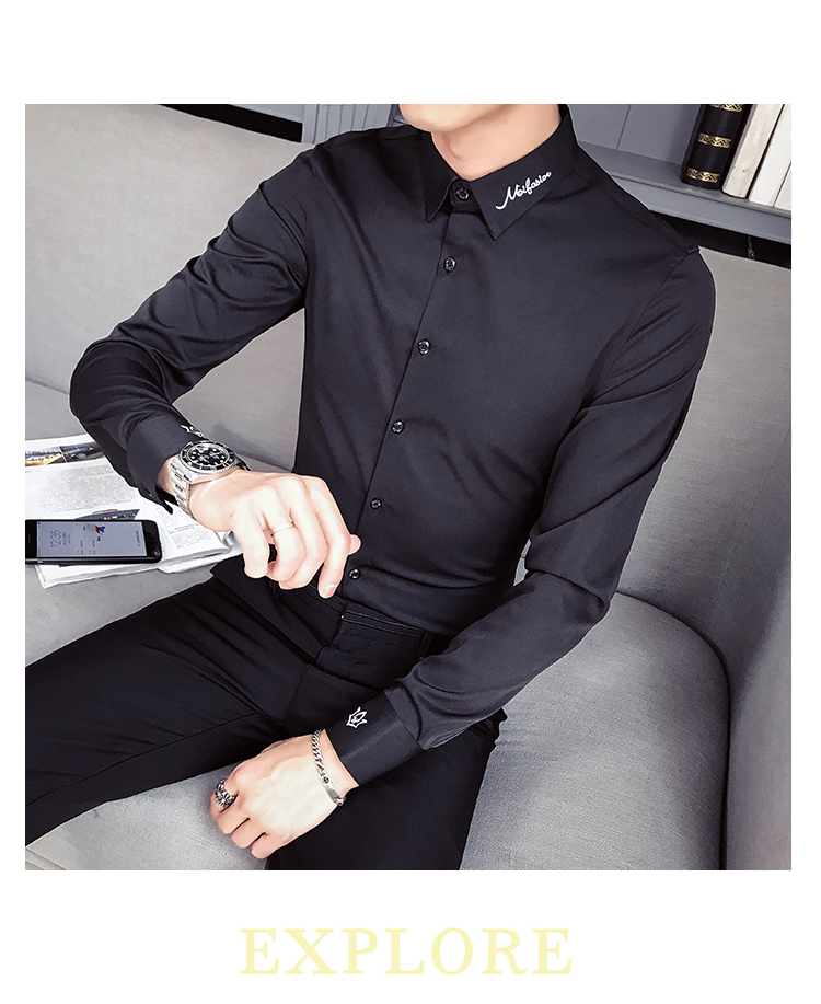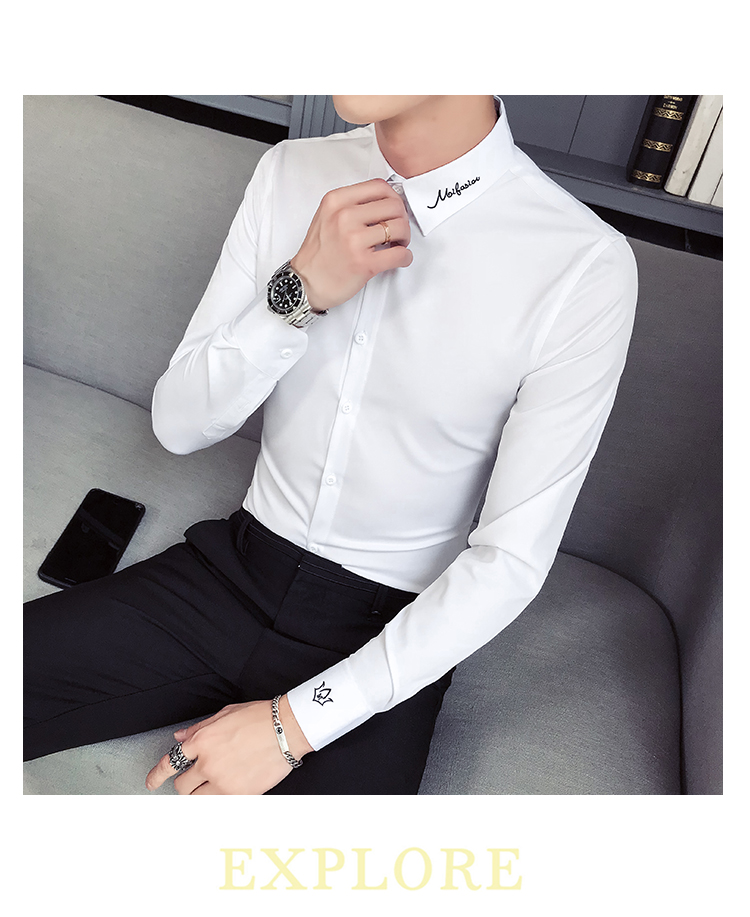 2018秋季休閑長袖襯衫男士修身白襯衣發型師夜店個性刺繡花寸衣男1入