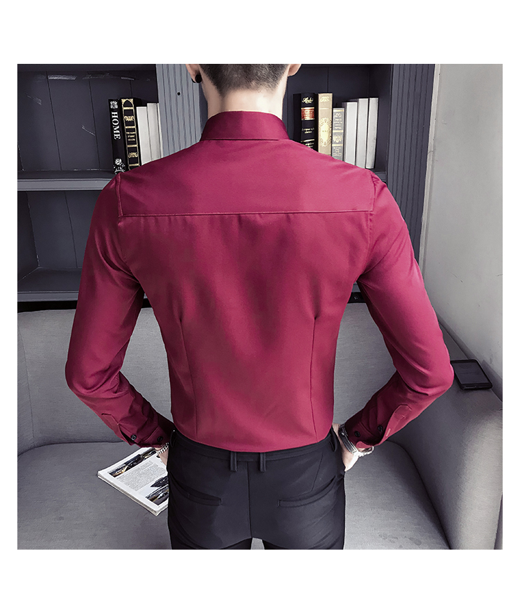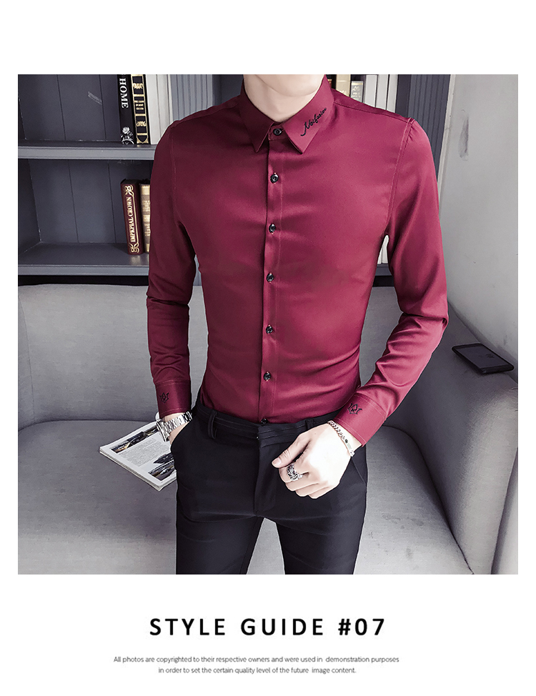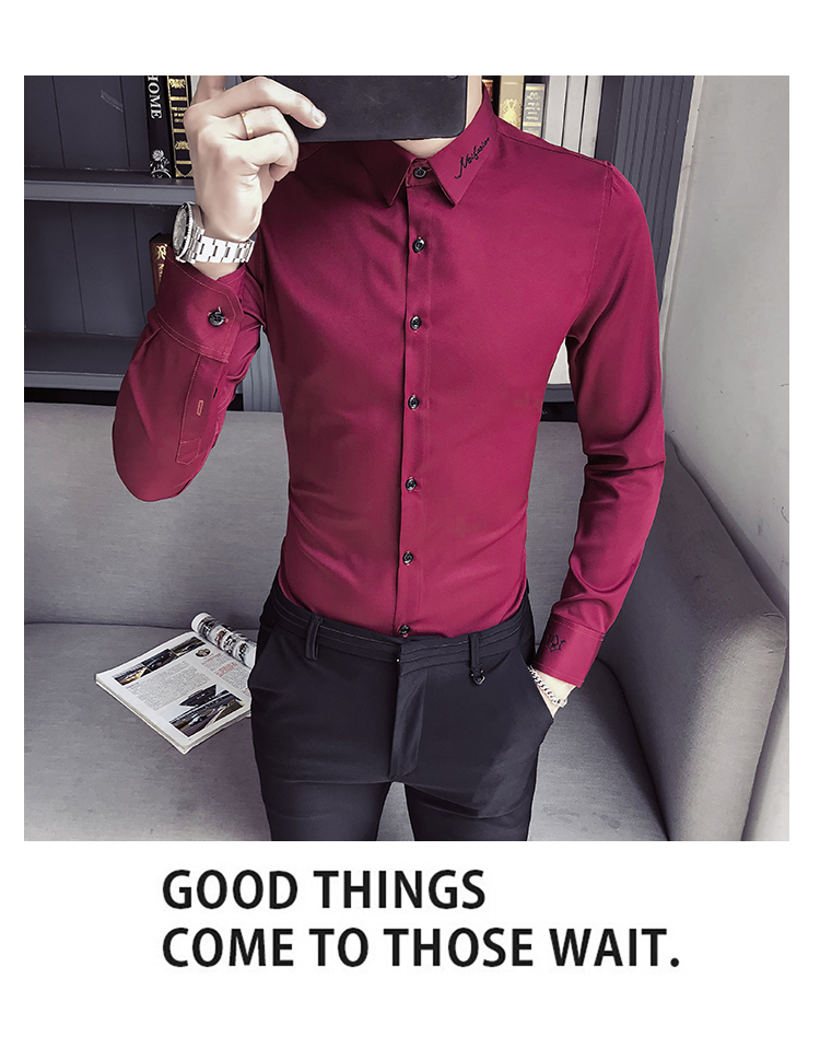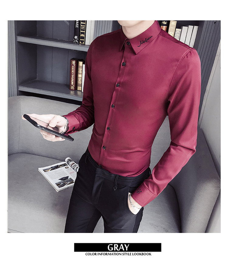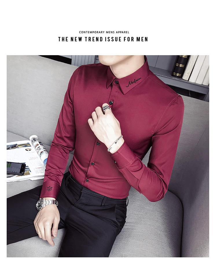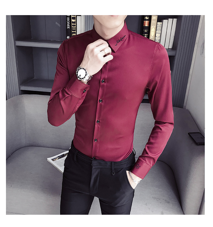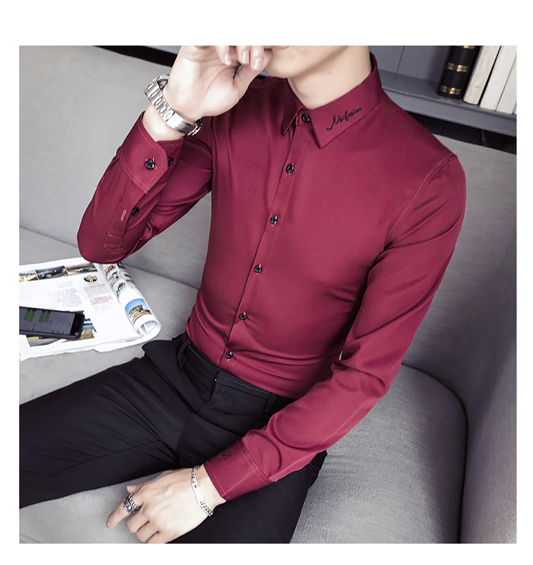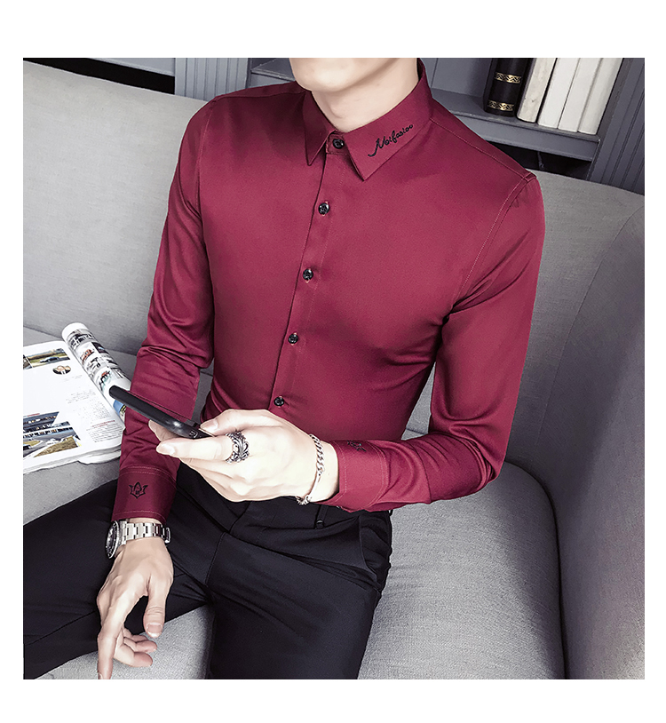 2018秋季休閑長袖襯衫男士修身白襯衣發型師夜店個性刺繡花寸衣男1入