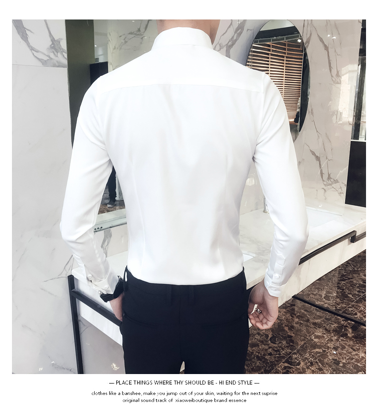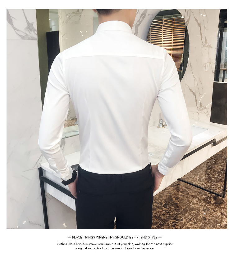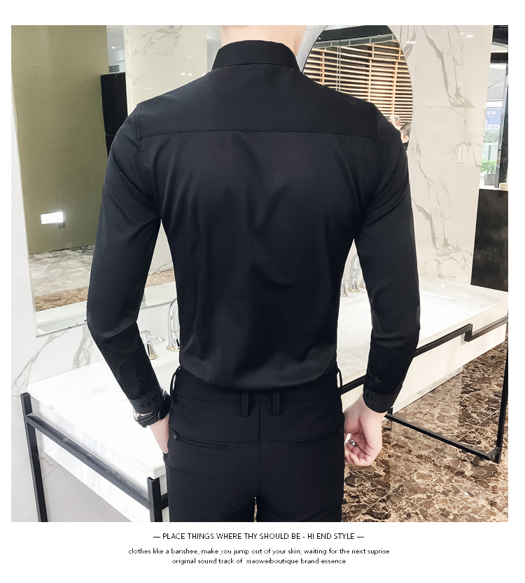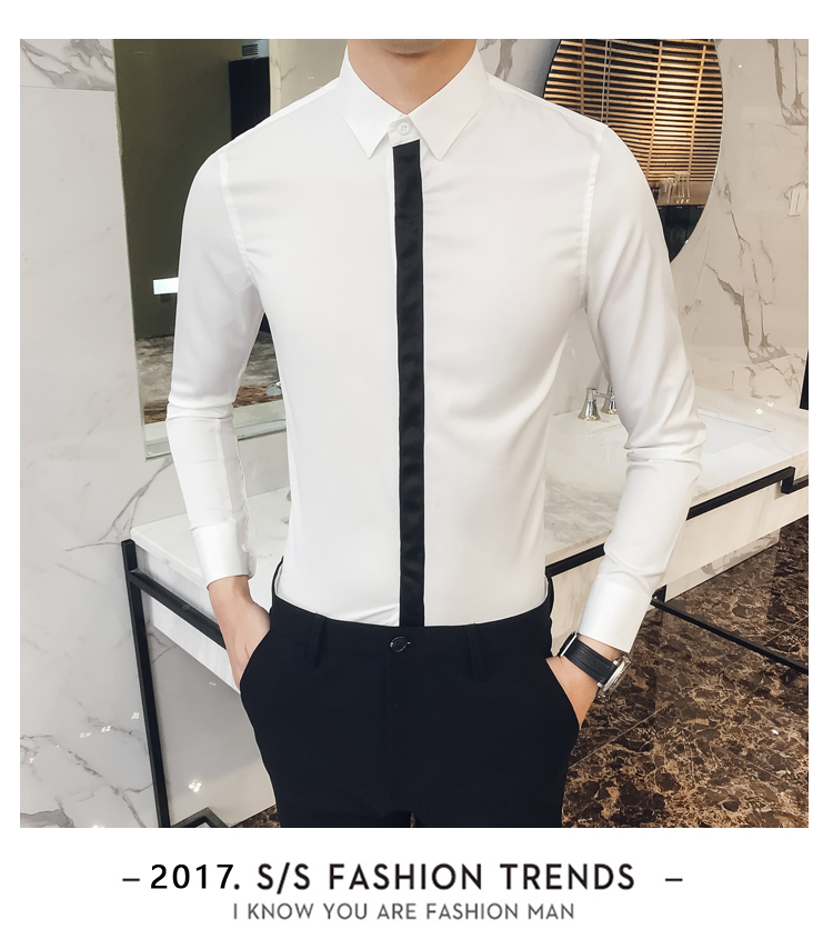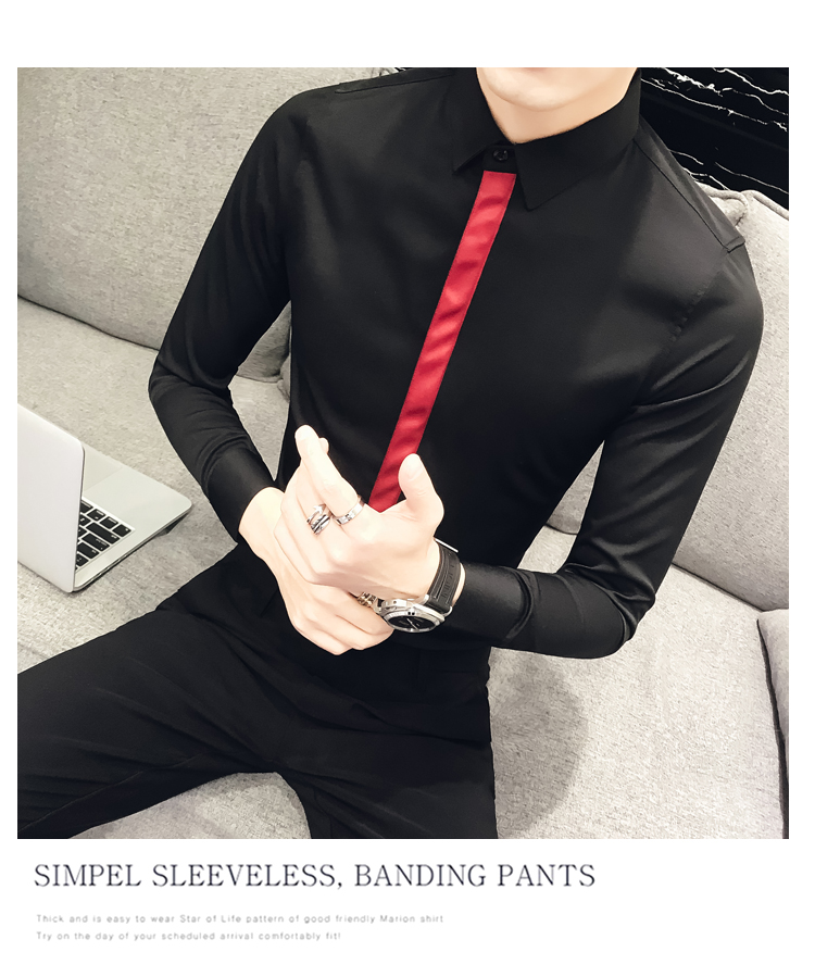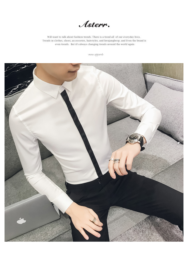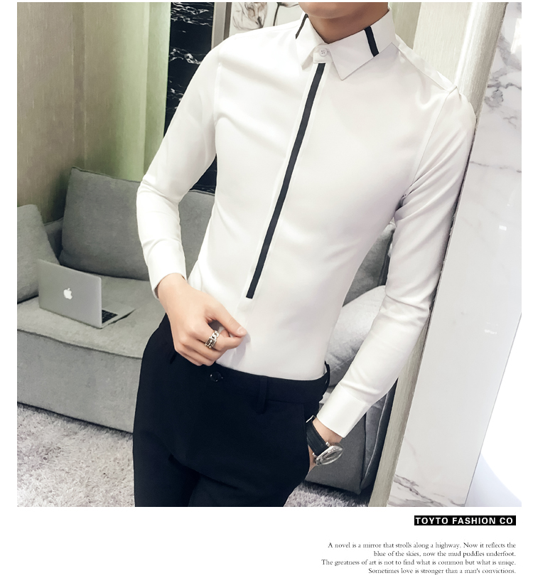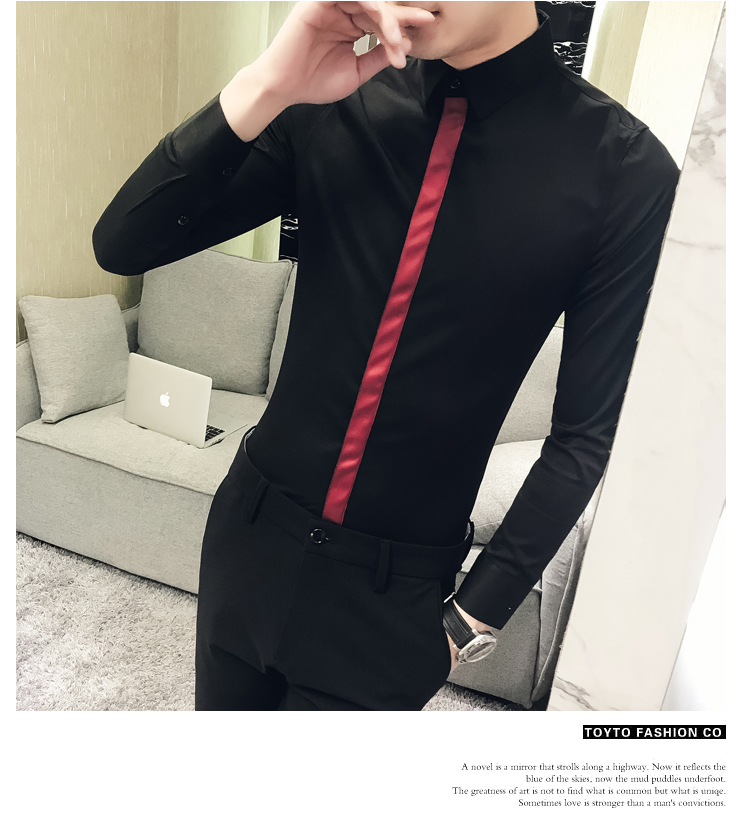 2019新款春秋修身花襯衫男韓版長袖襯衫發型師潮流條紋襯衣男青年1入