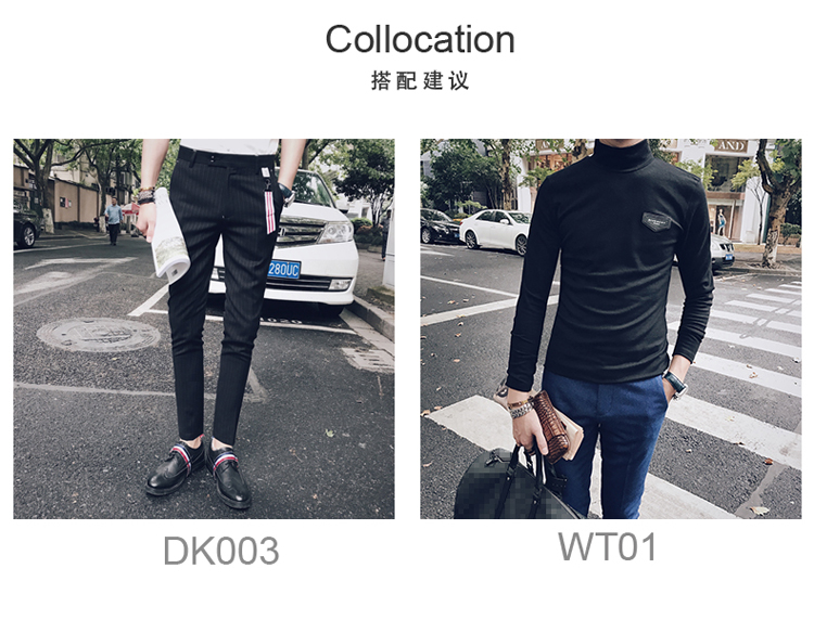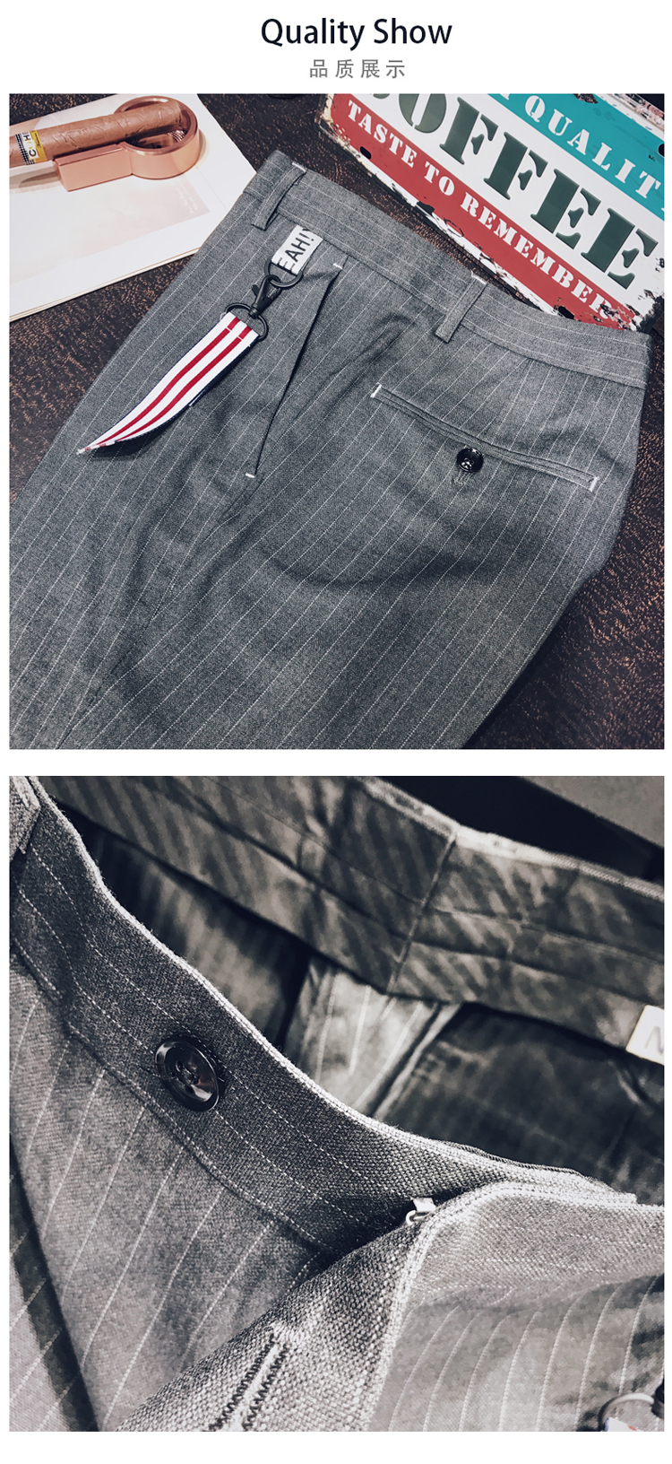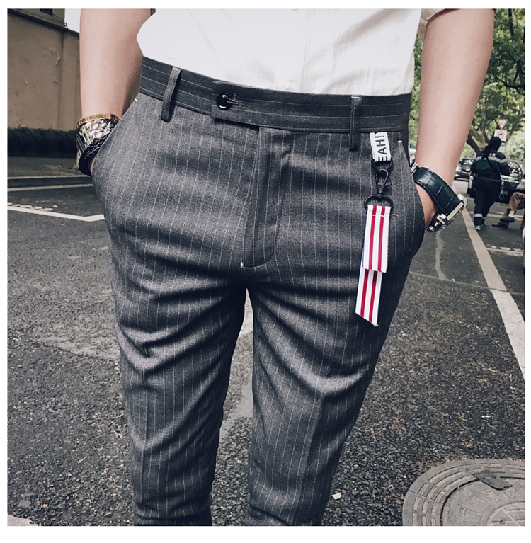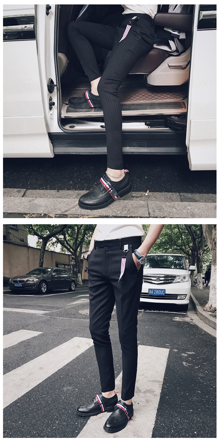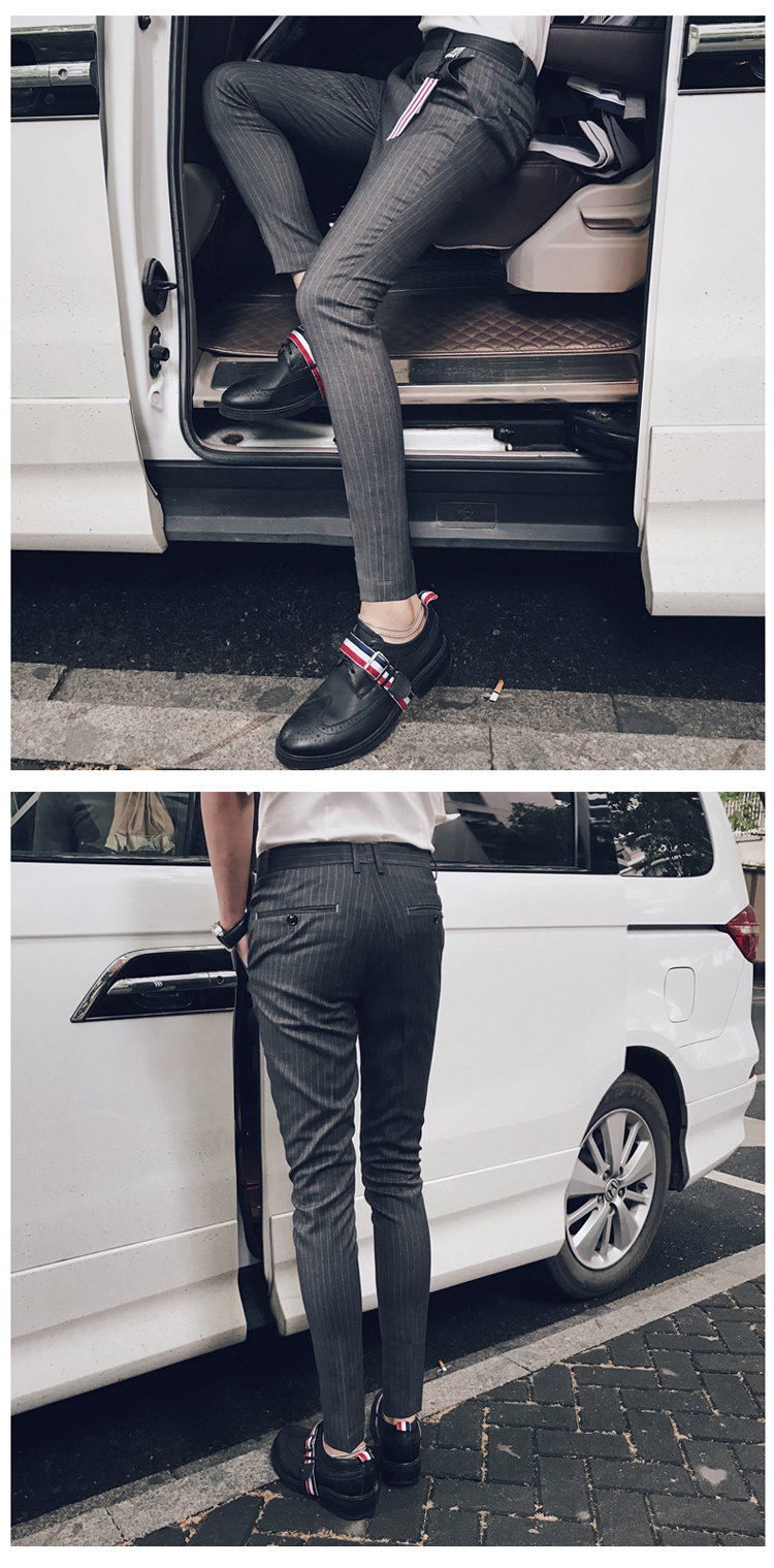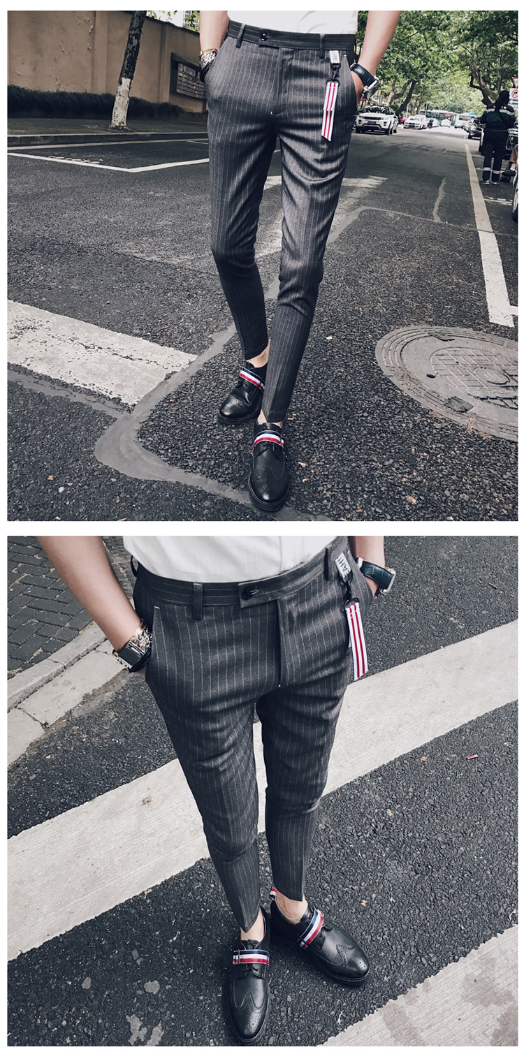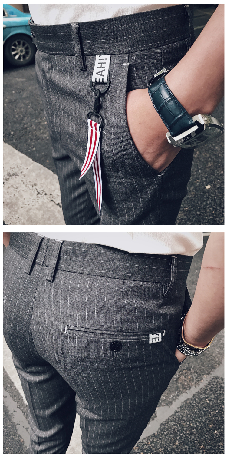 2018新款春夏條紋休閑褲發型師修身個性小腳褲男青年韓版潮流褲子1入