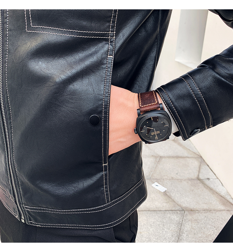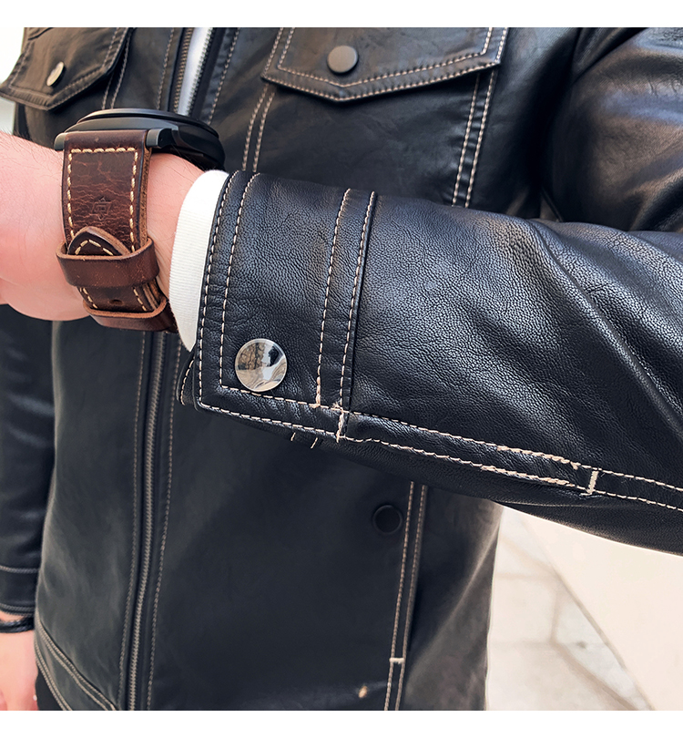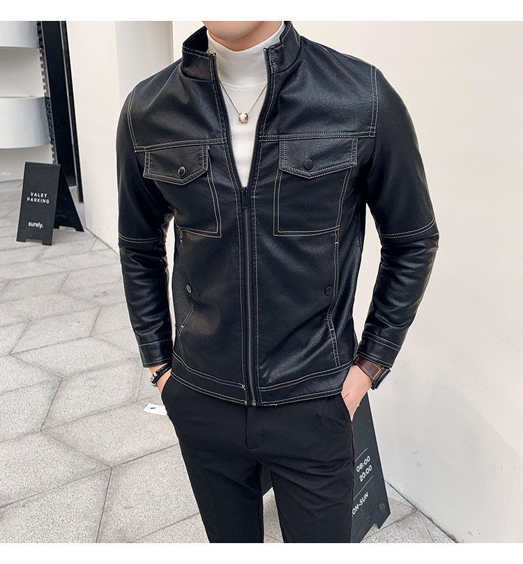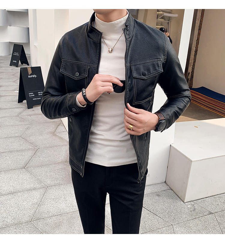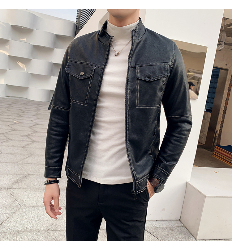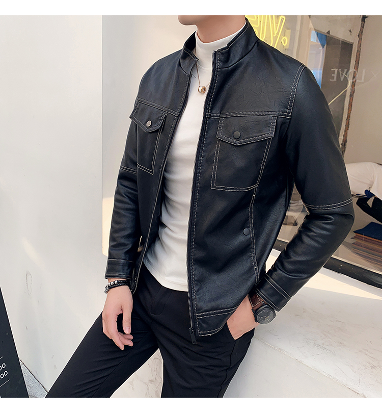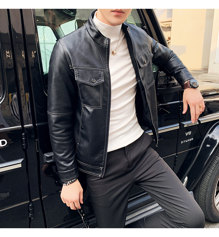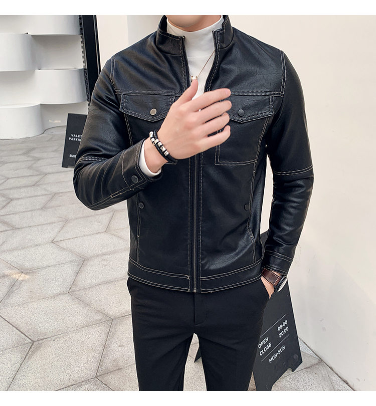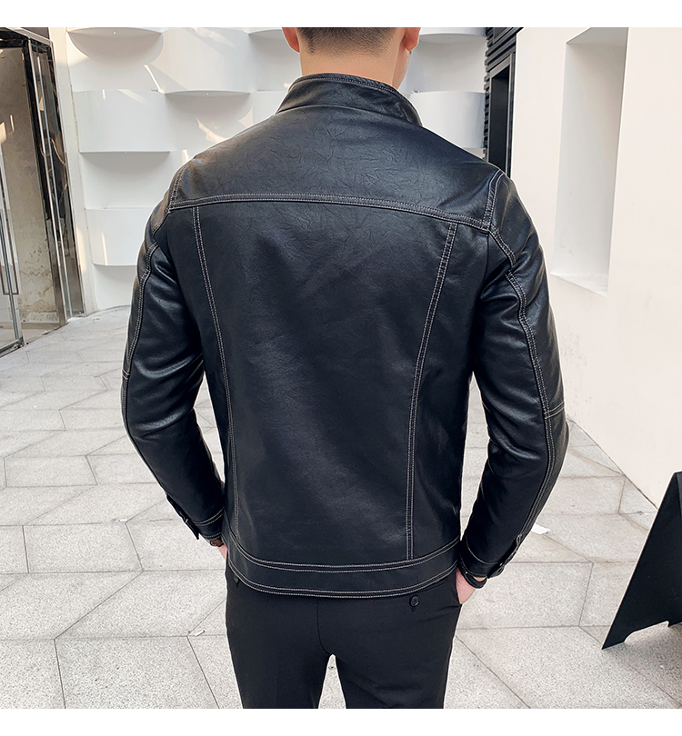 2019帥氣發型師夜店秋冬新款潮流時尚皮衣夾克韓版修身加厚外套男1入