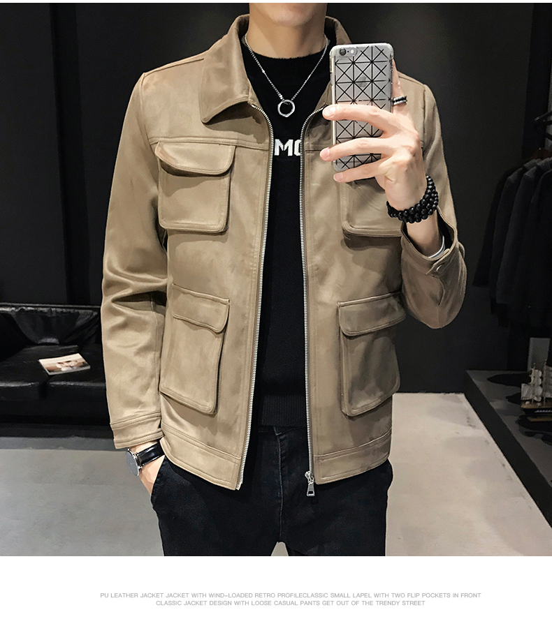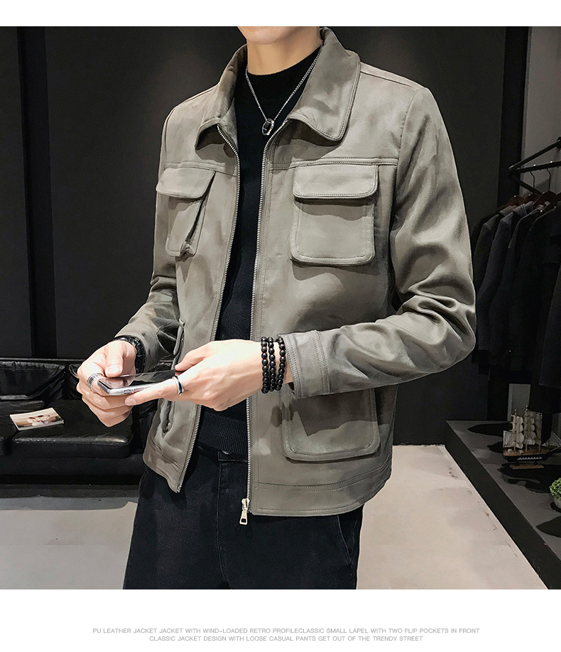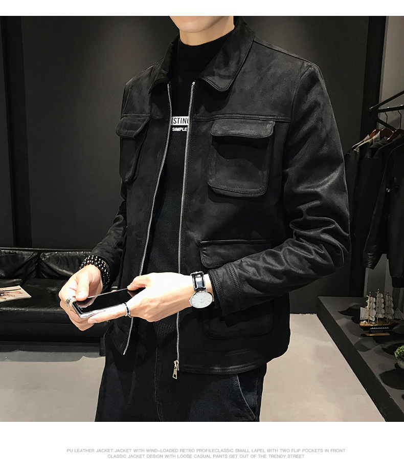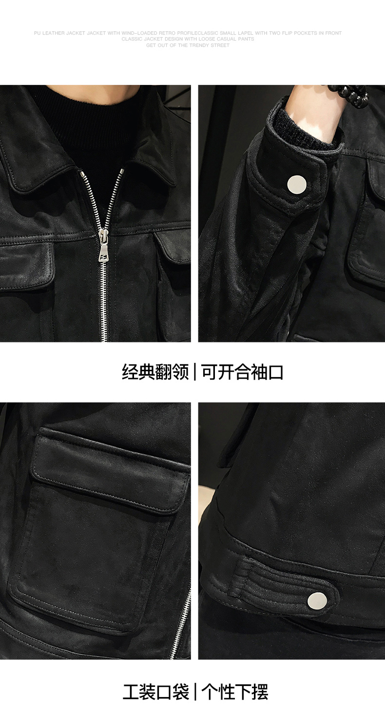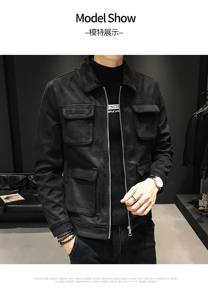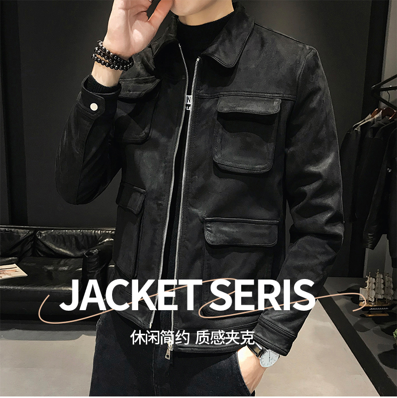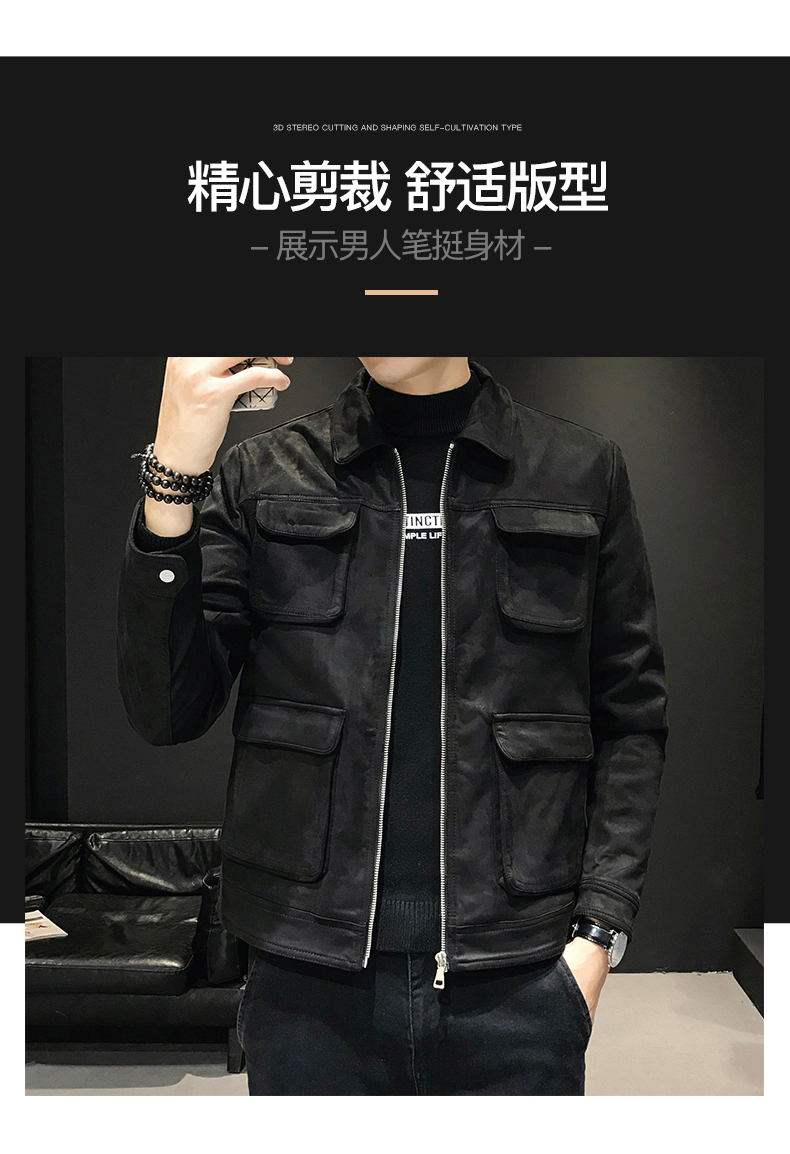 2019秋冬新款精神小伙韓版修身短款大碼夾克潮流時尚帥氣男士外套1入
