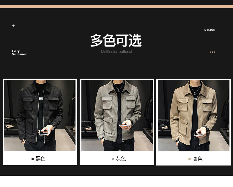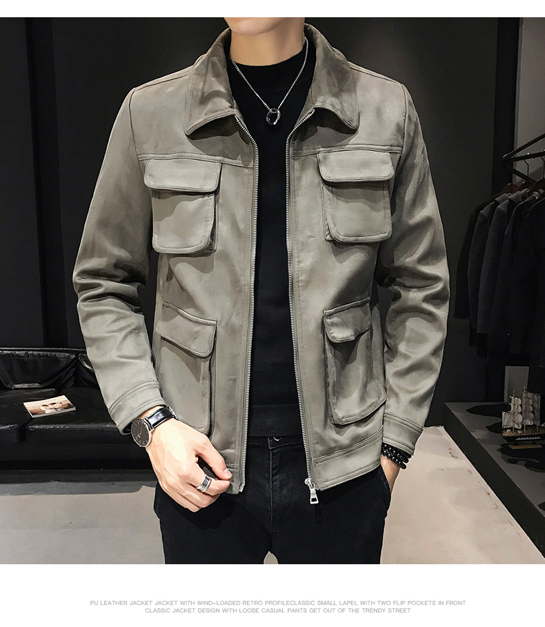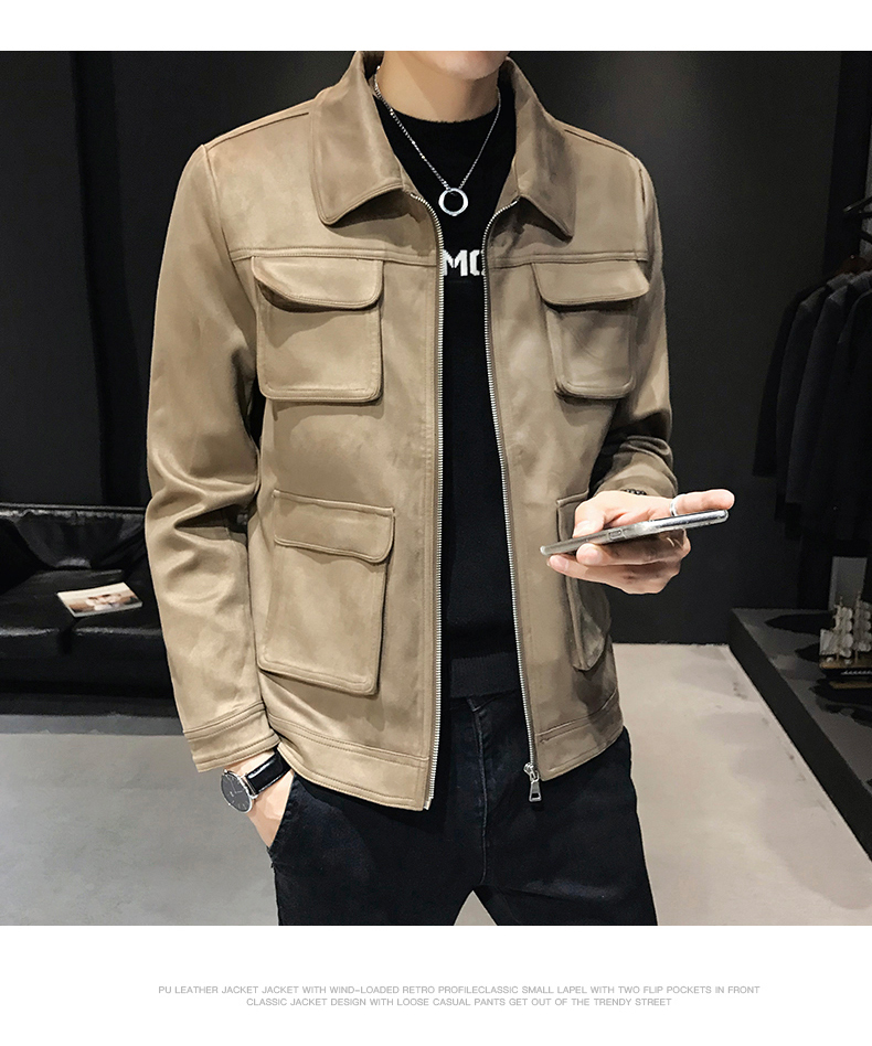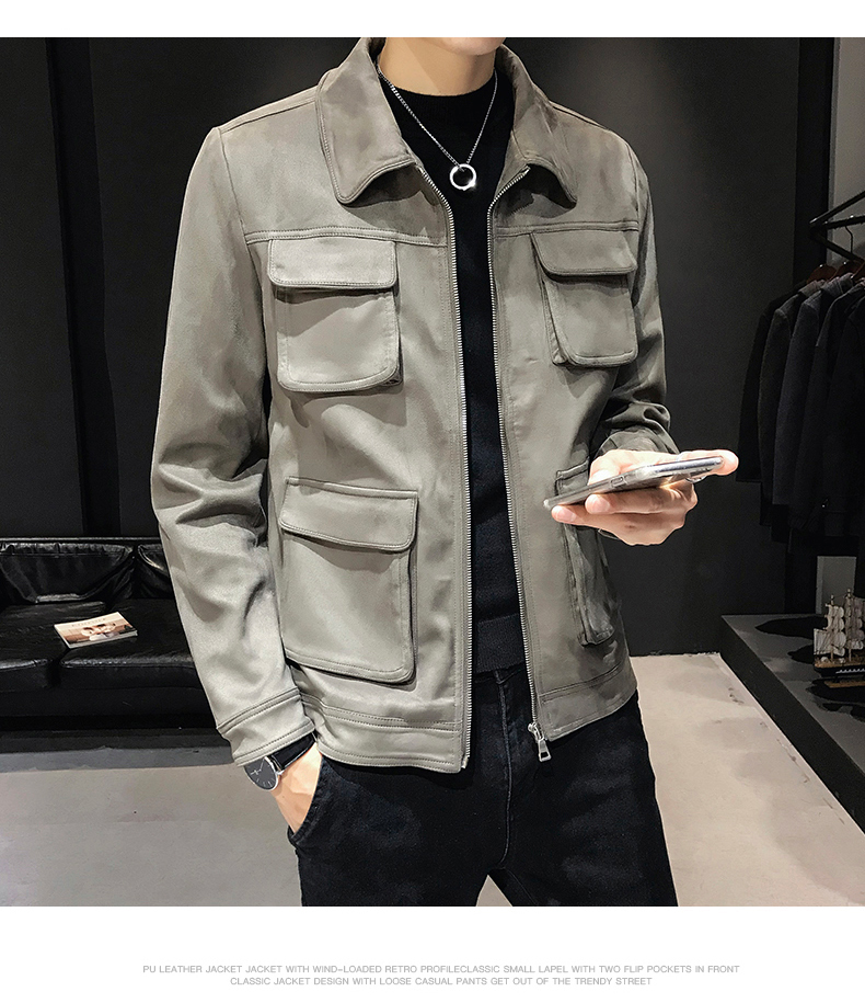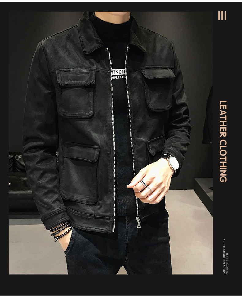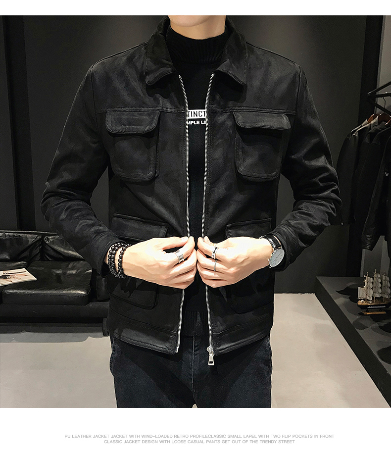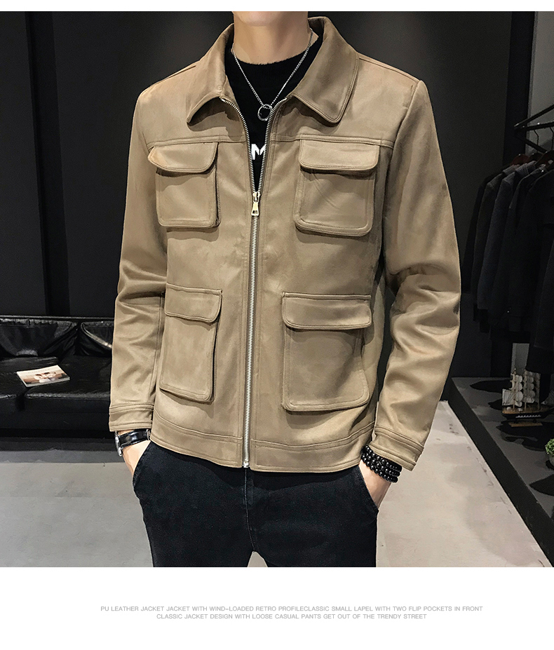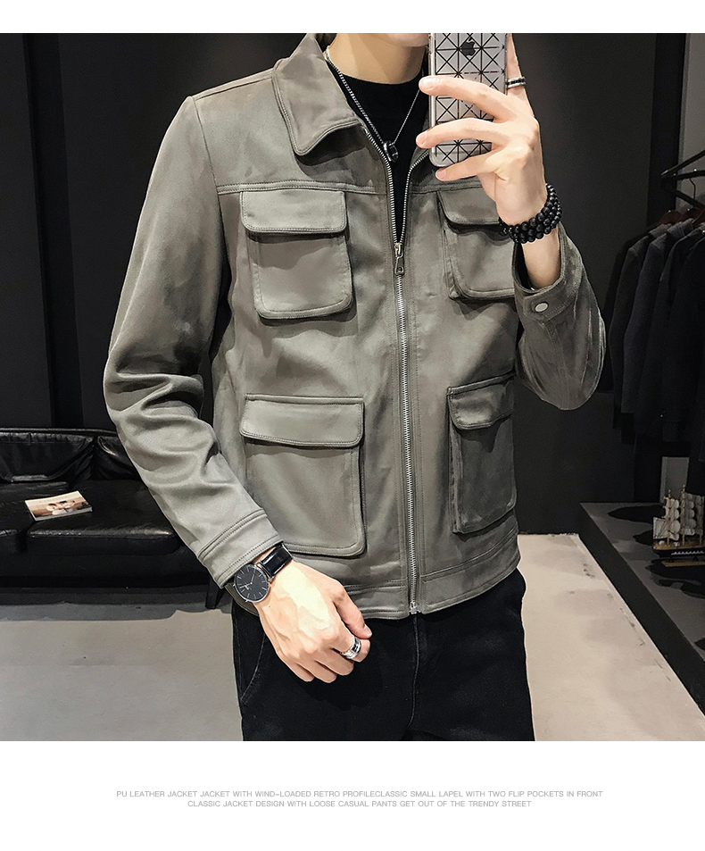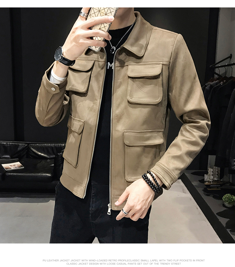 2019秋冬新款精神小伙韓版修身短款大碼夾克潮流時尚帥氣男士外套1入