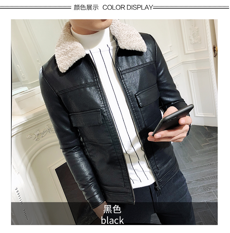 2019秋冬男士加絨加厚皮衣韓版帥氣毛領外套青年潮流修身皮夾克男1入