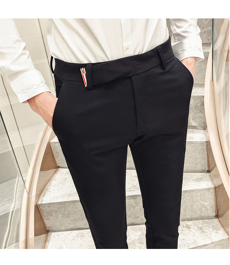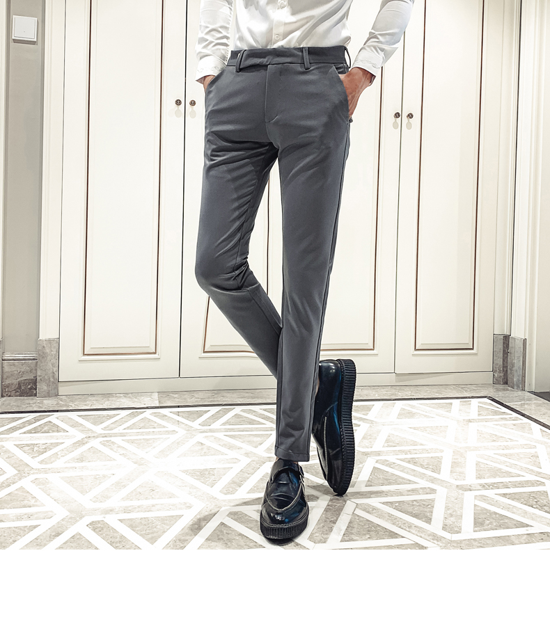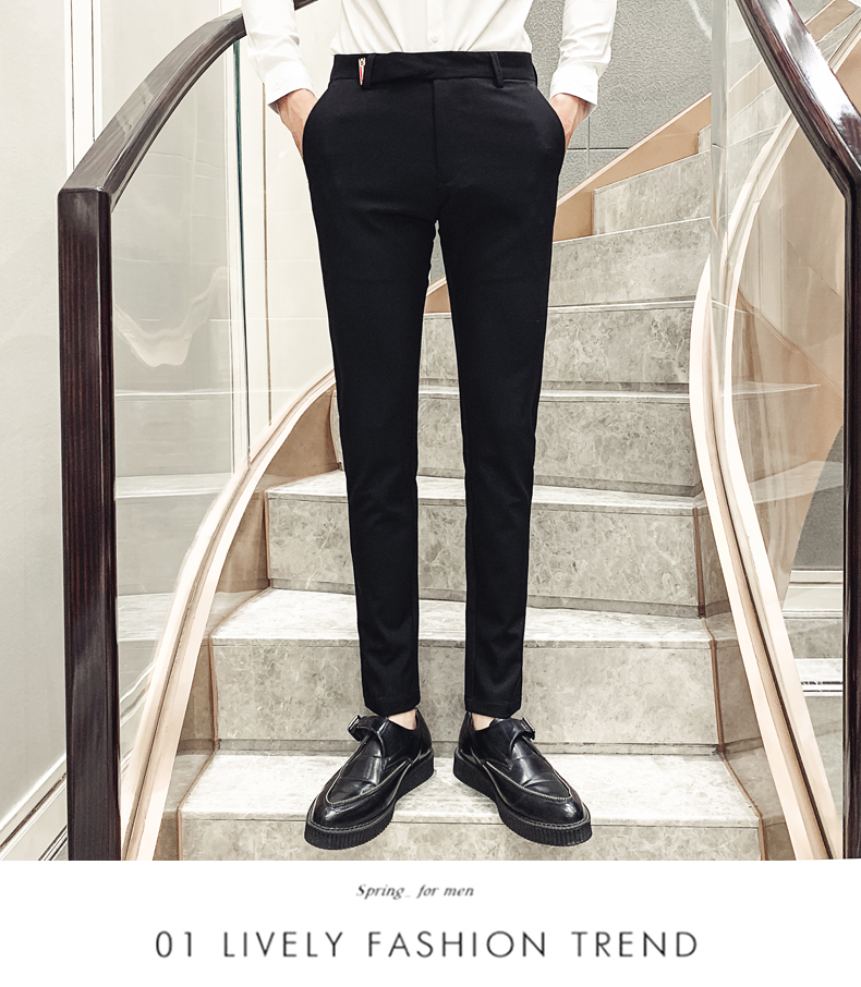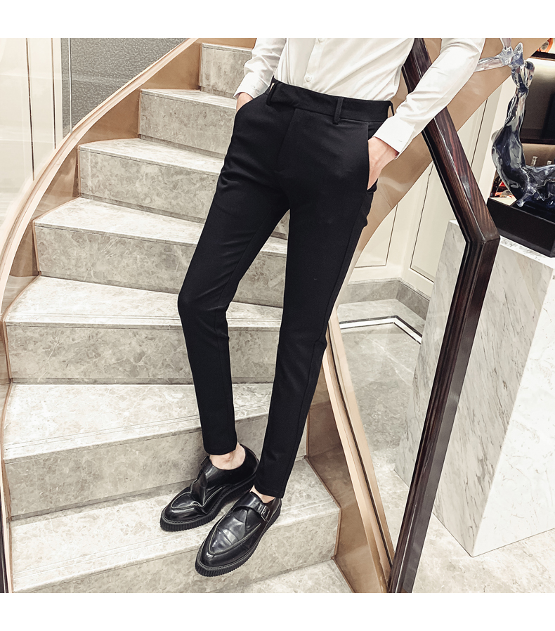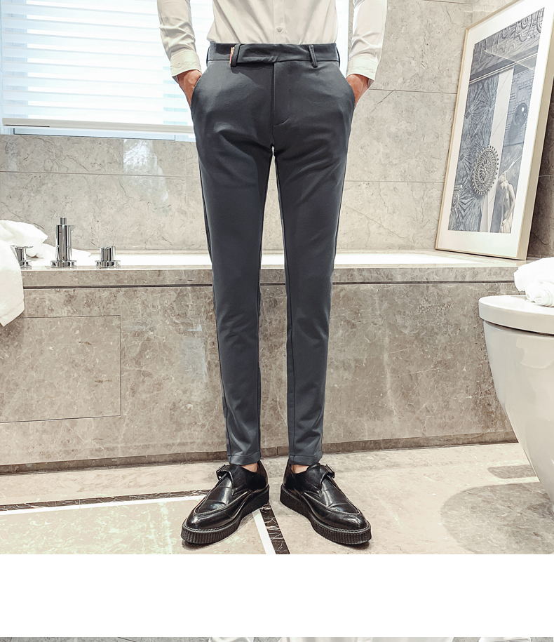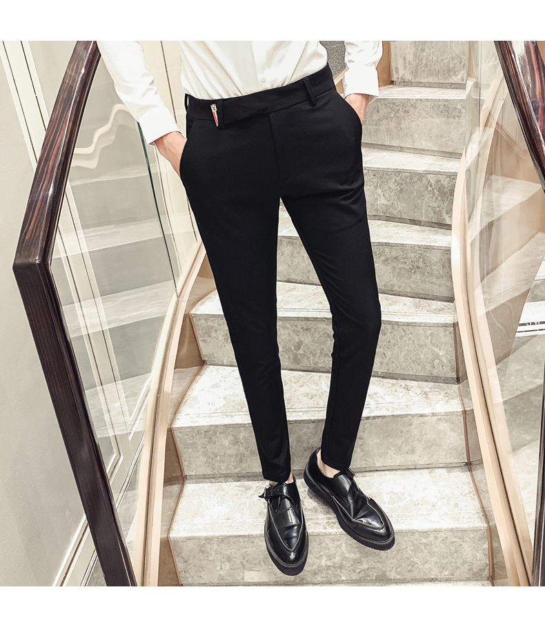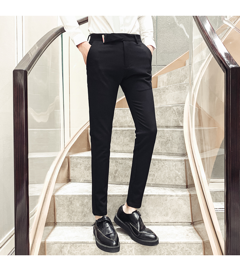2019男士純色休閑褲網紅韓版時尚小腳褲社會發型師潮牌修身長褲子1入