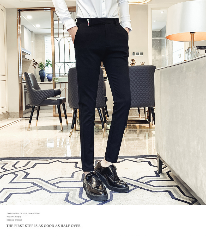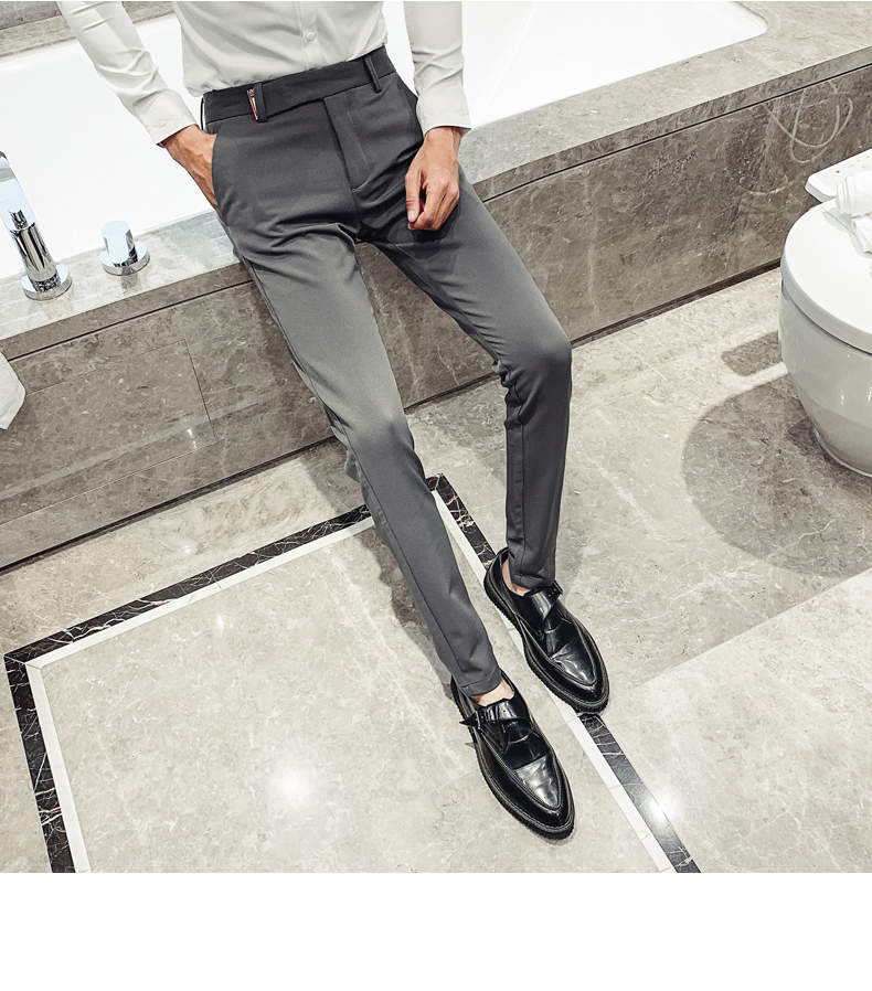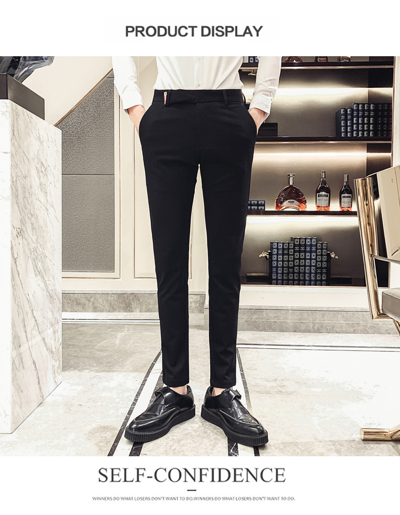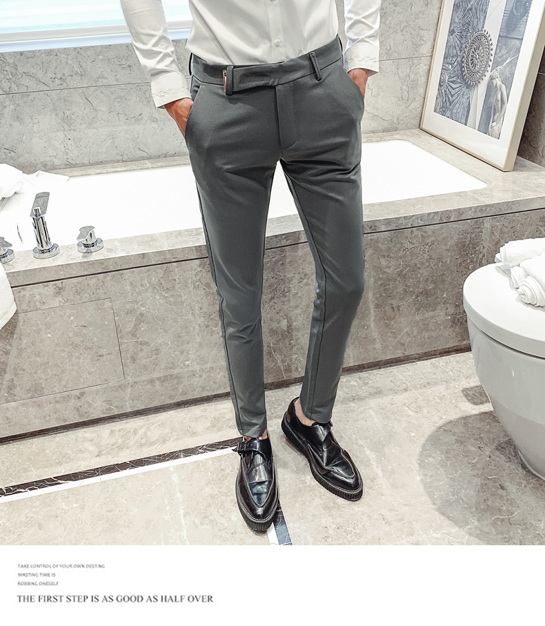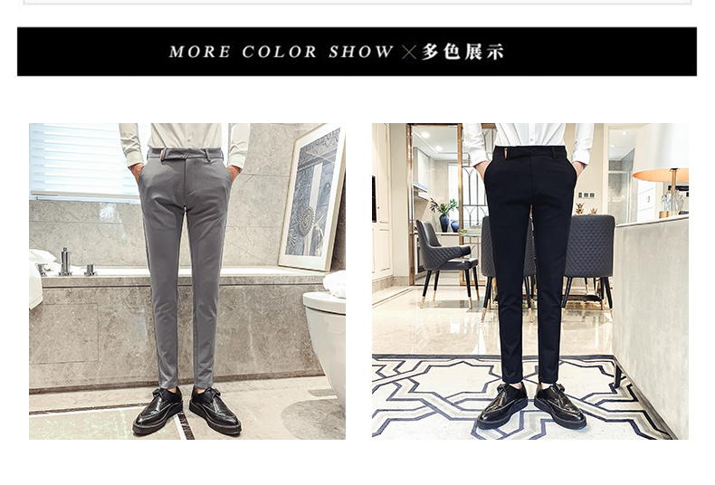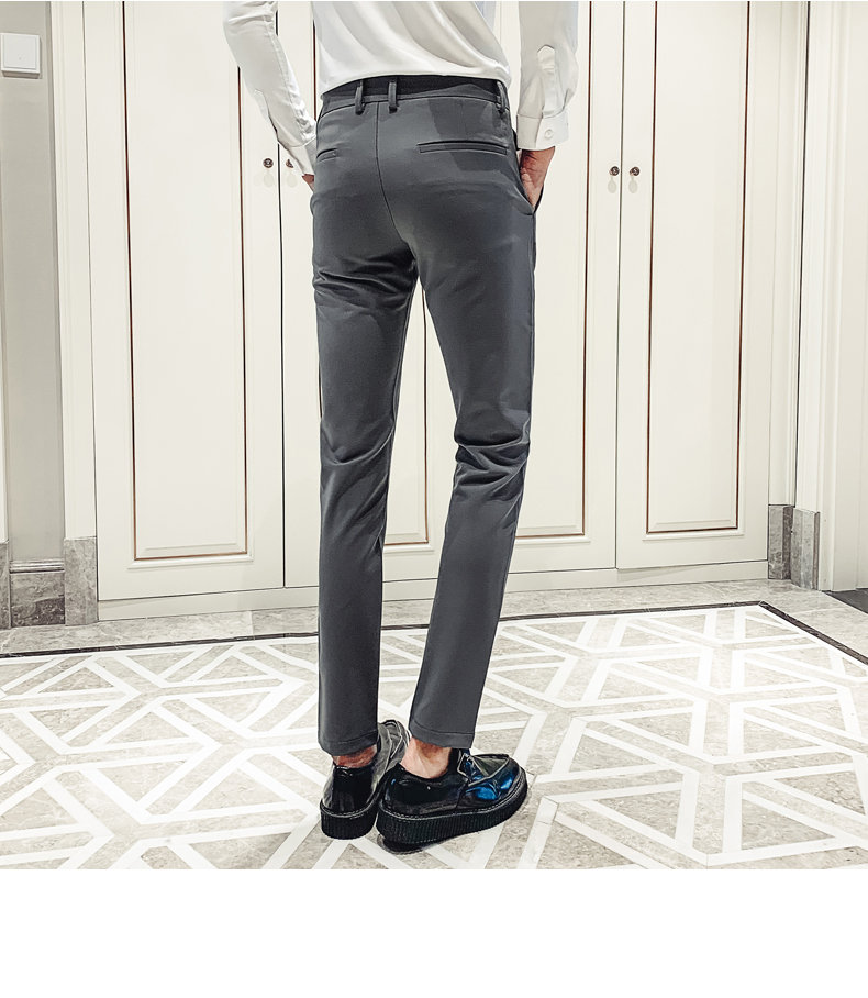 2019男士純色休閑褲網紅韓版時尚小腳褲社會發型師潮牌修身長褲子1入