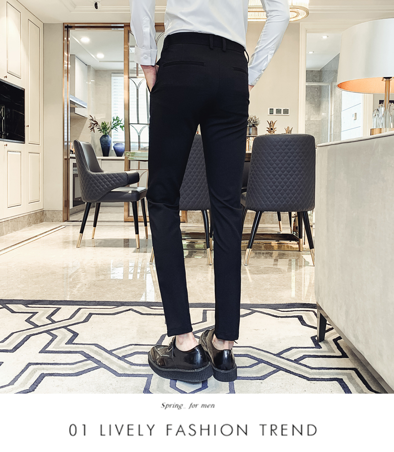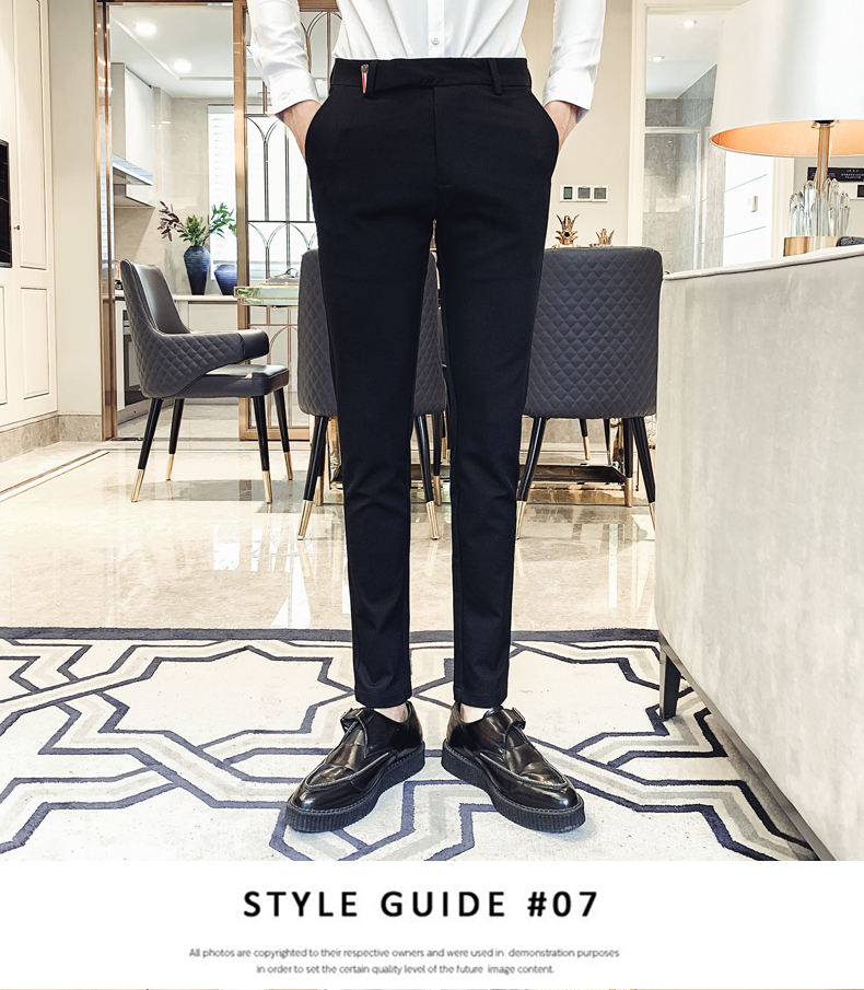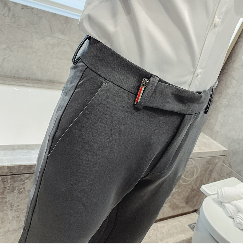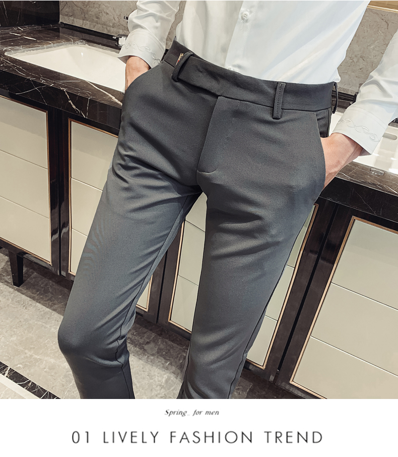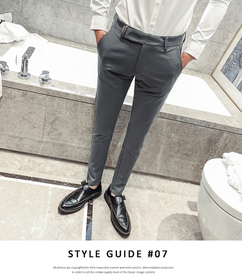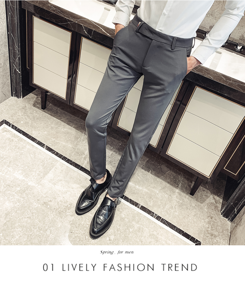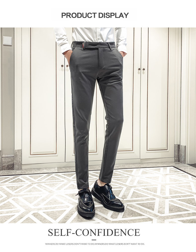2019男士純色休閑褲網紅韓版時尚小腳褲社會發型師潮牌修身長褲子1入