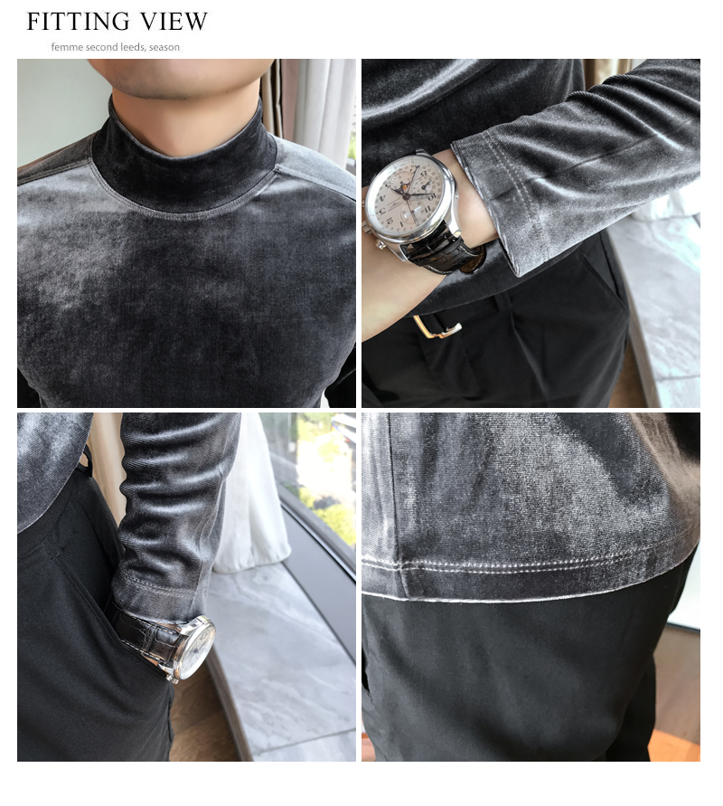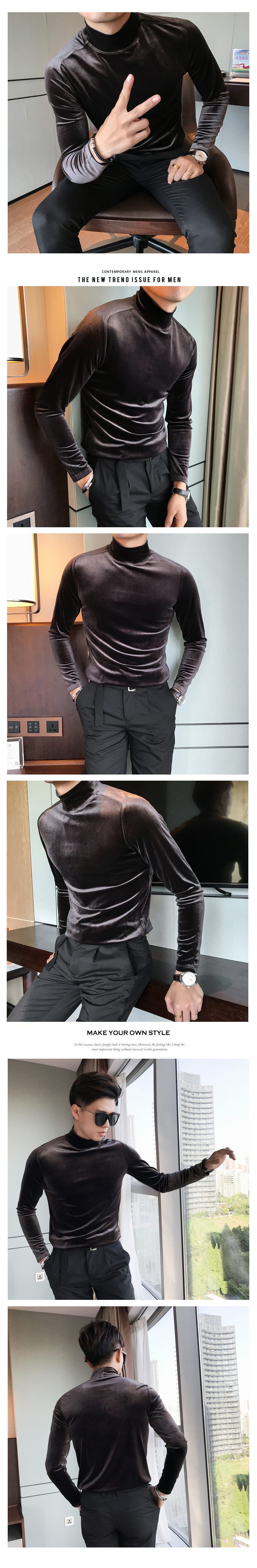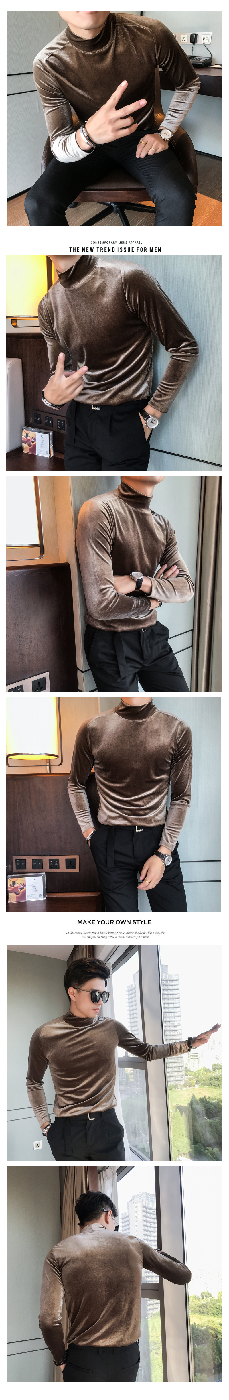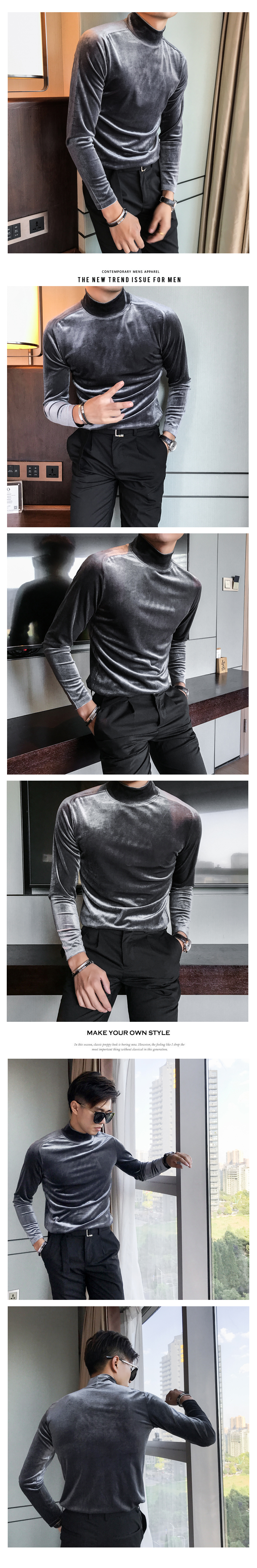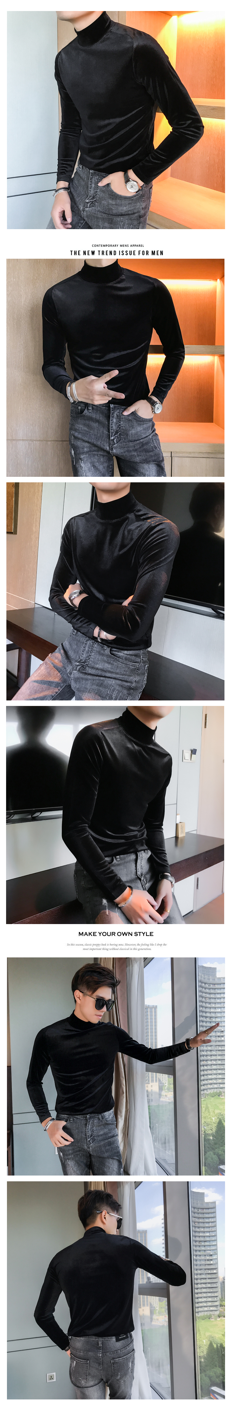 2019男士休閑打底衫半高領上衣服社會韓版修身圓領T恤網紅男裝潮1入