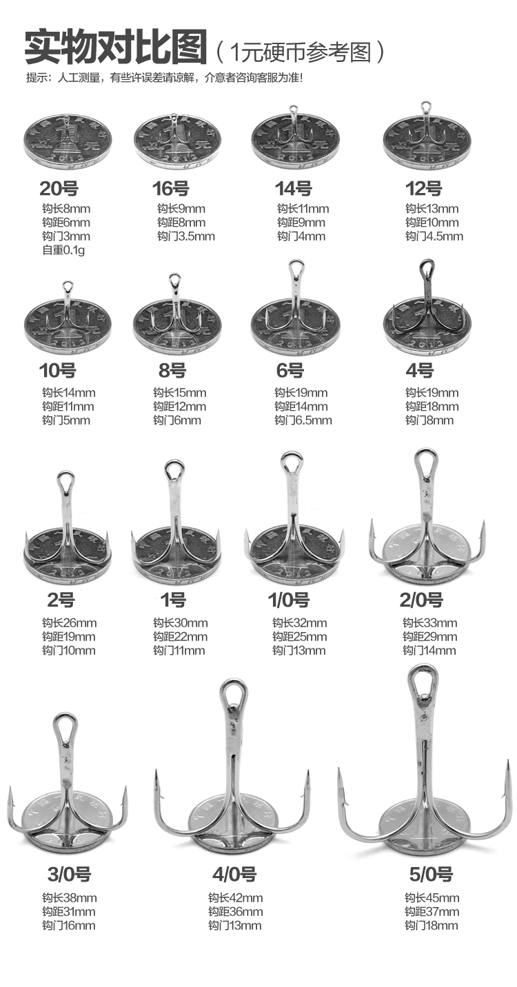 錨鉤三爪鉤錨魚鉤套裝三錨鉤假餌路亞鉤劃掛魚鉤三本鉤套裝漁具1入