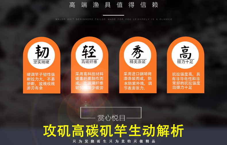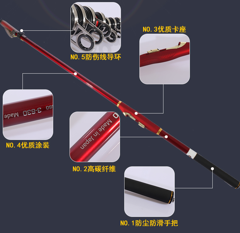 4.5/5.3/6.3米長節碳素斜導環富士護帽3號磯釣竿手海兩用竿魚竿1入