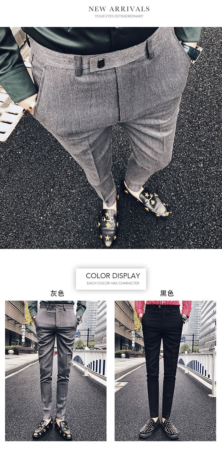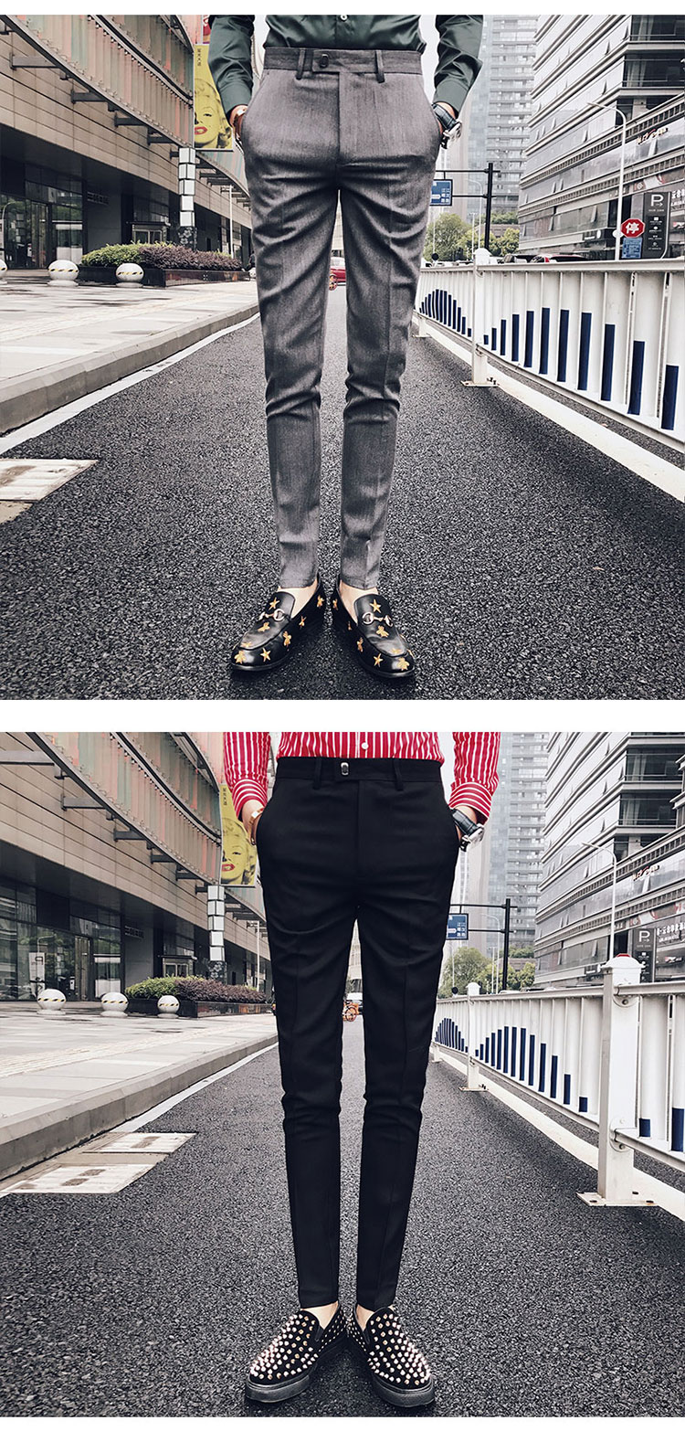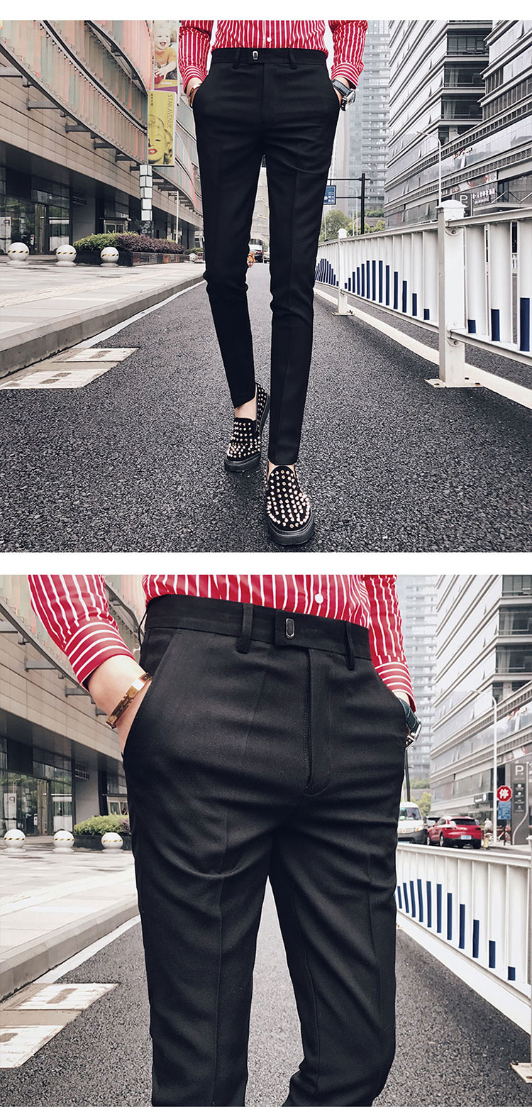 2018新款秋季修身西褲青年韓版個性休閑褲發型師男裝帥氣小腳褲潮1入