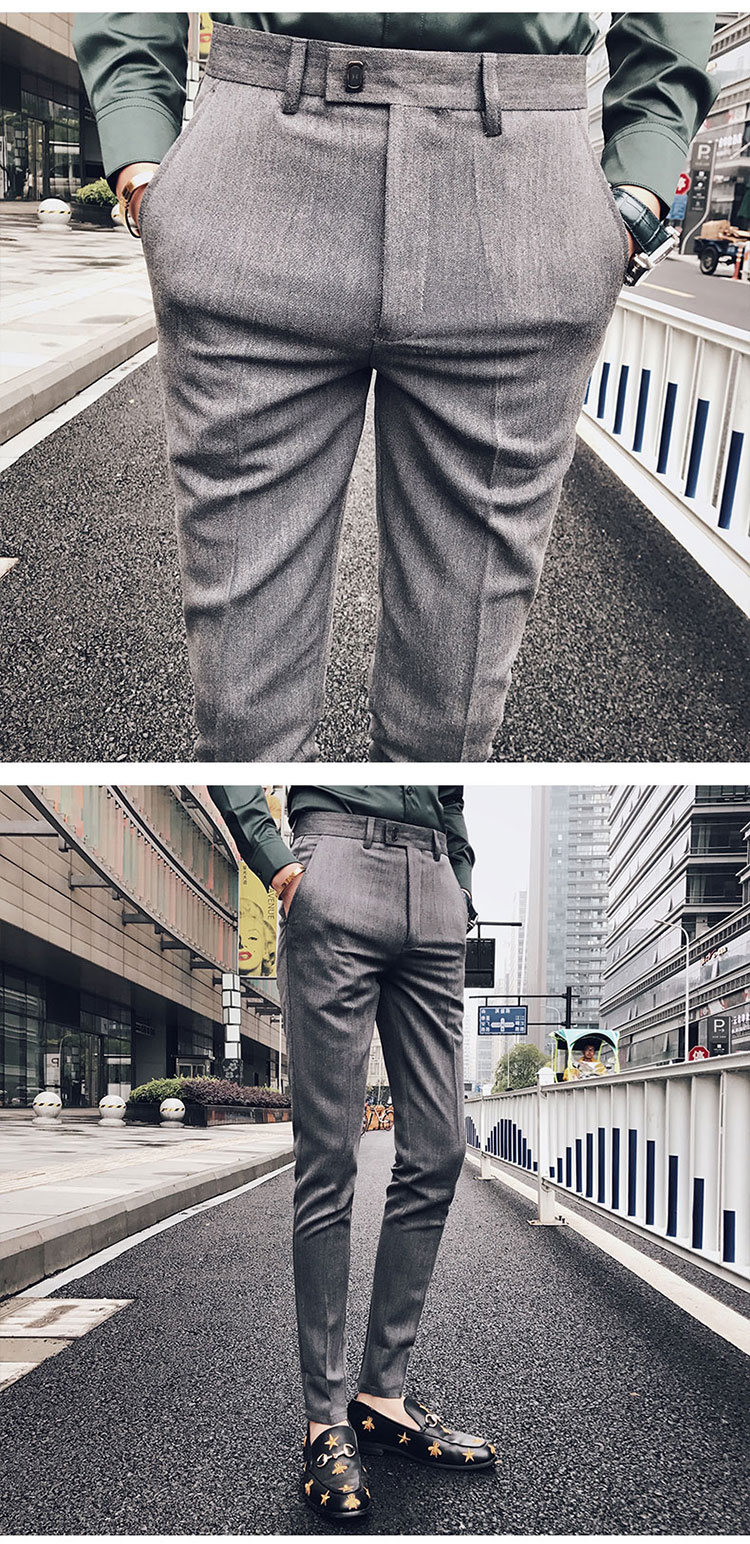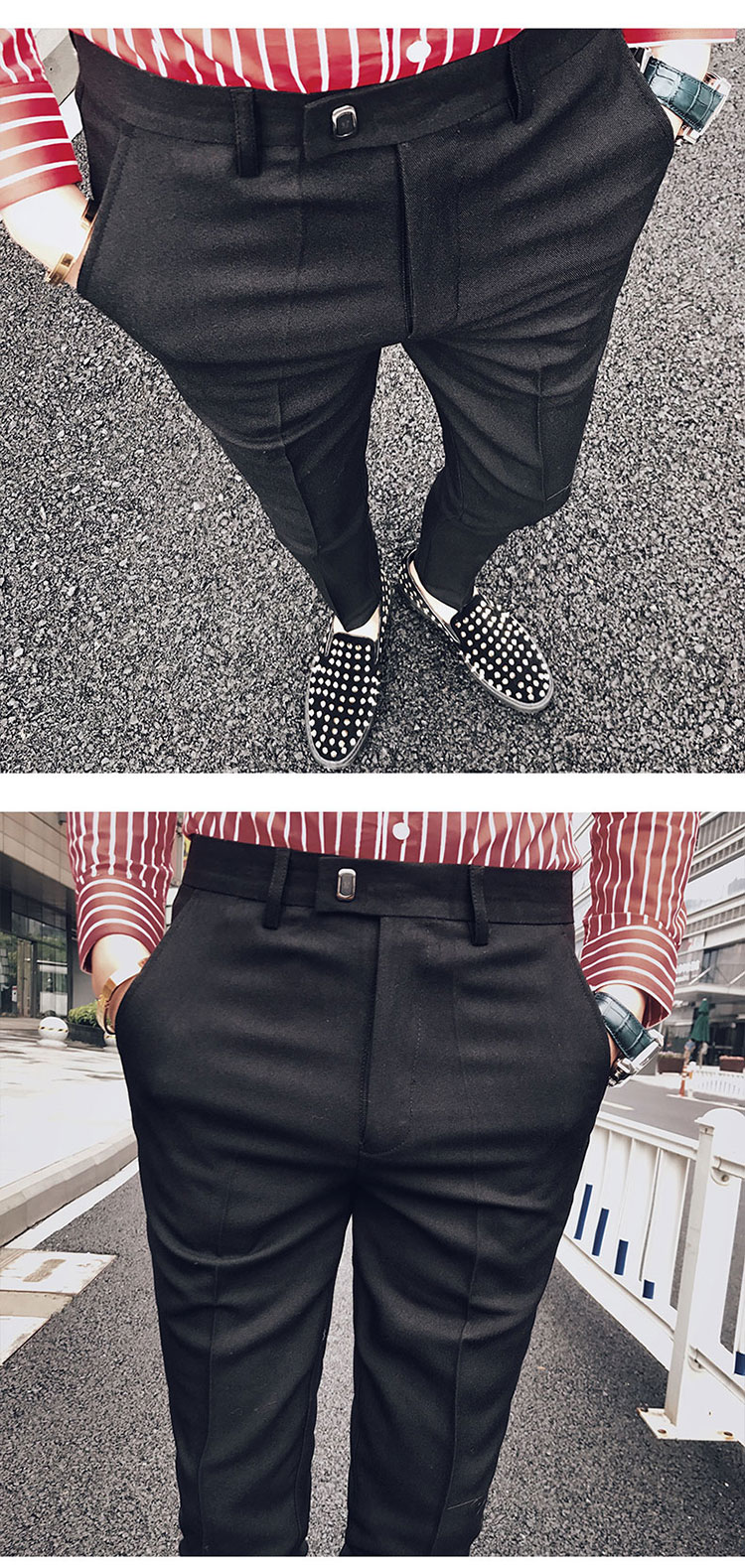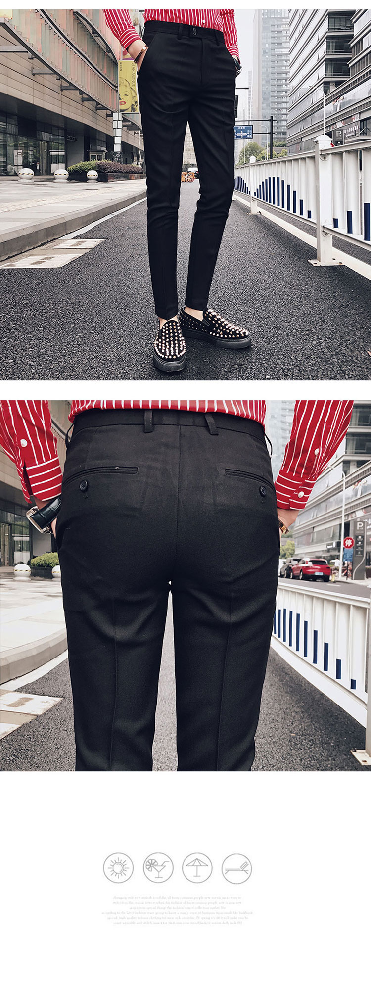 2018新款秋季修身西褲青年韓版個性休閑褲發型師男裝帥氣小腳褲潮1入