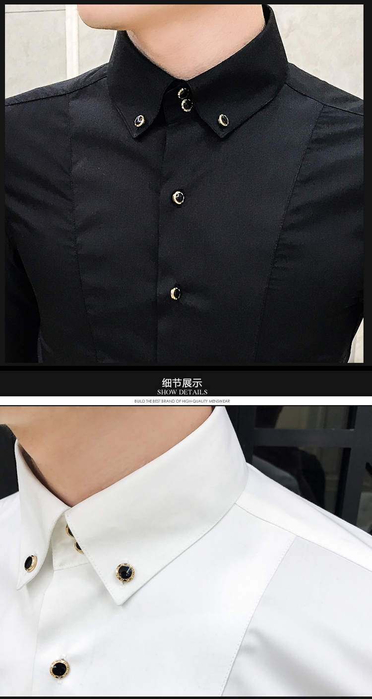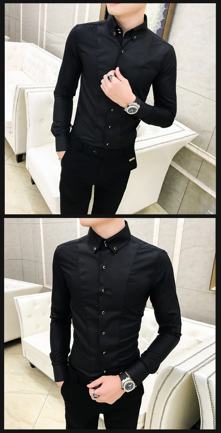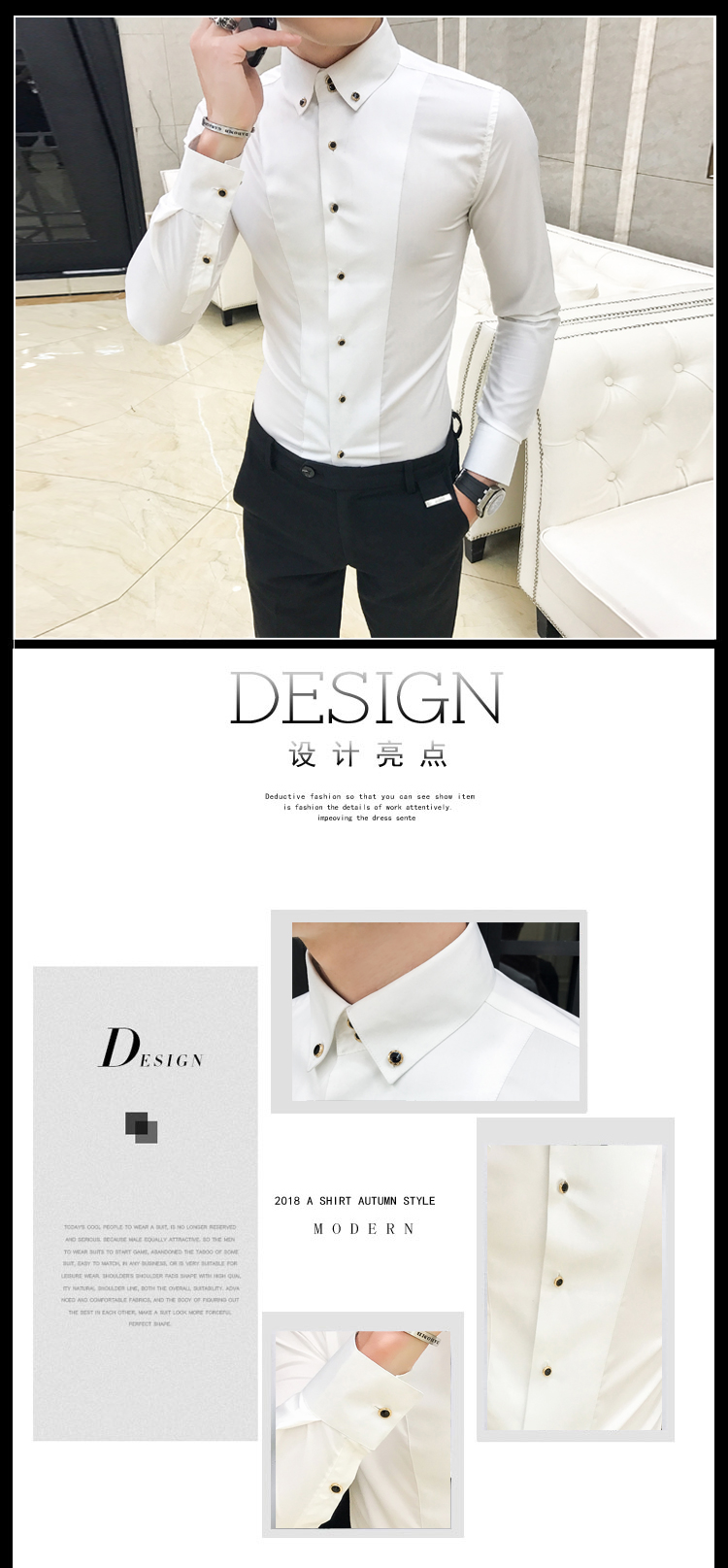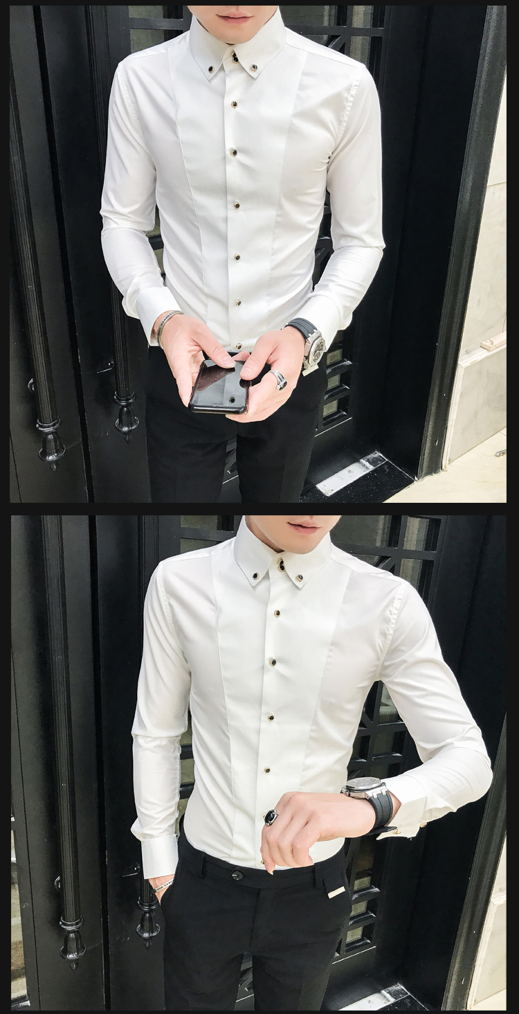 2018發型師夜場個性修身白襯衣男韓版帥氣長袖襯衫 秋季潮流男裝1入