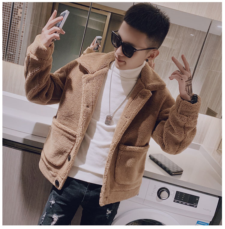 2019秋冬季修身保暖棉襖男韓版羊毛絨棉衣帥氣加厚外套網紅青年潮1入