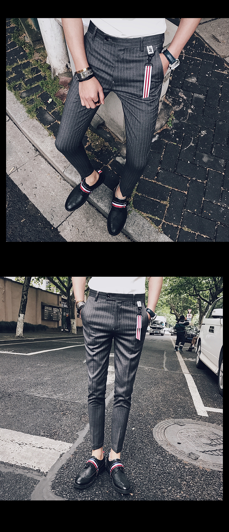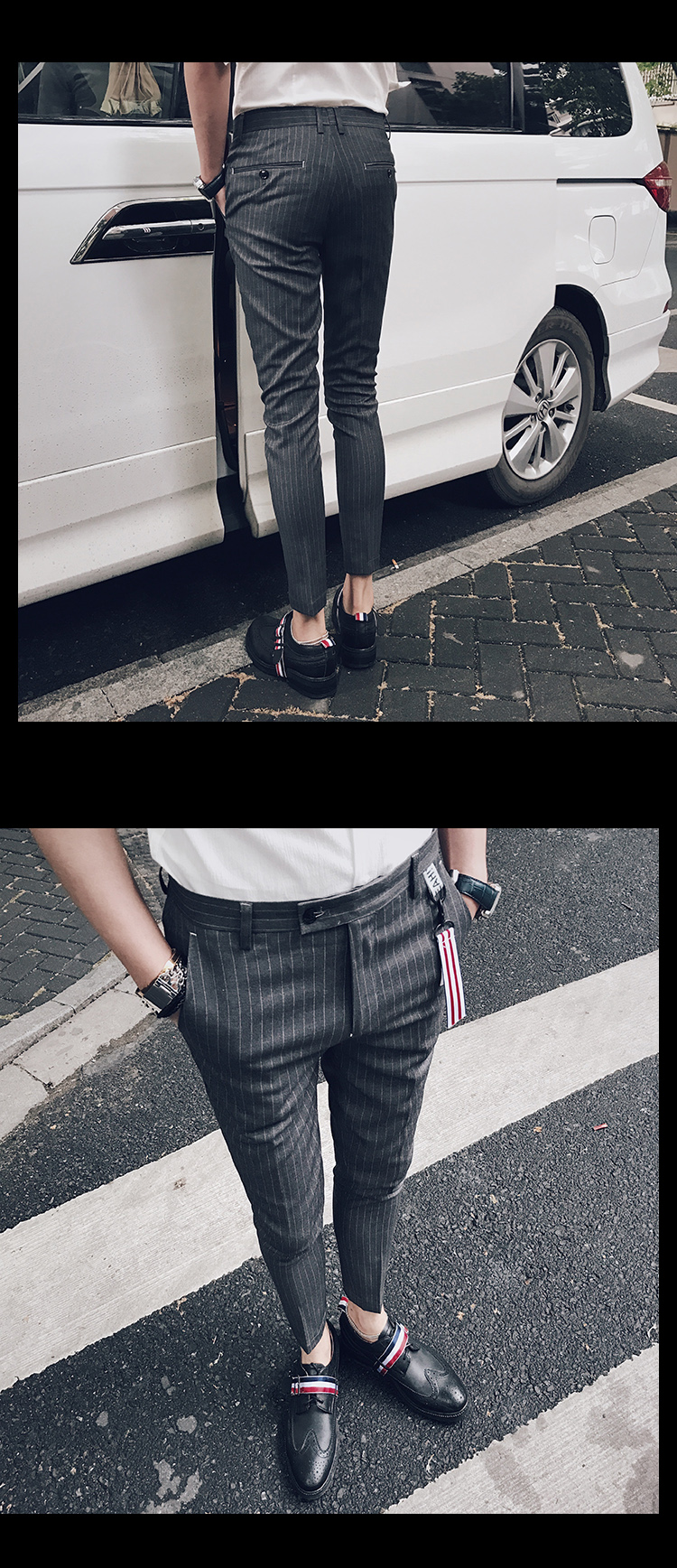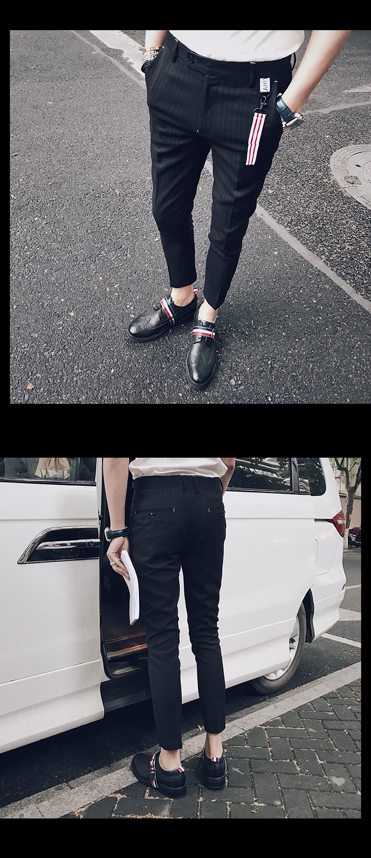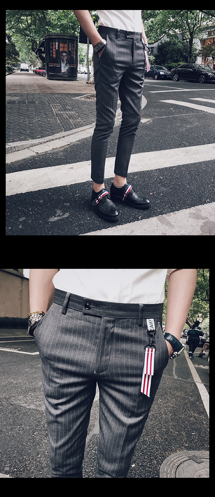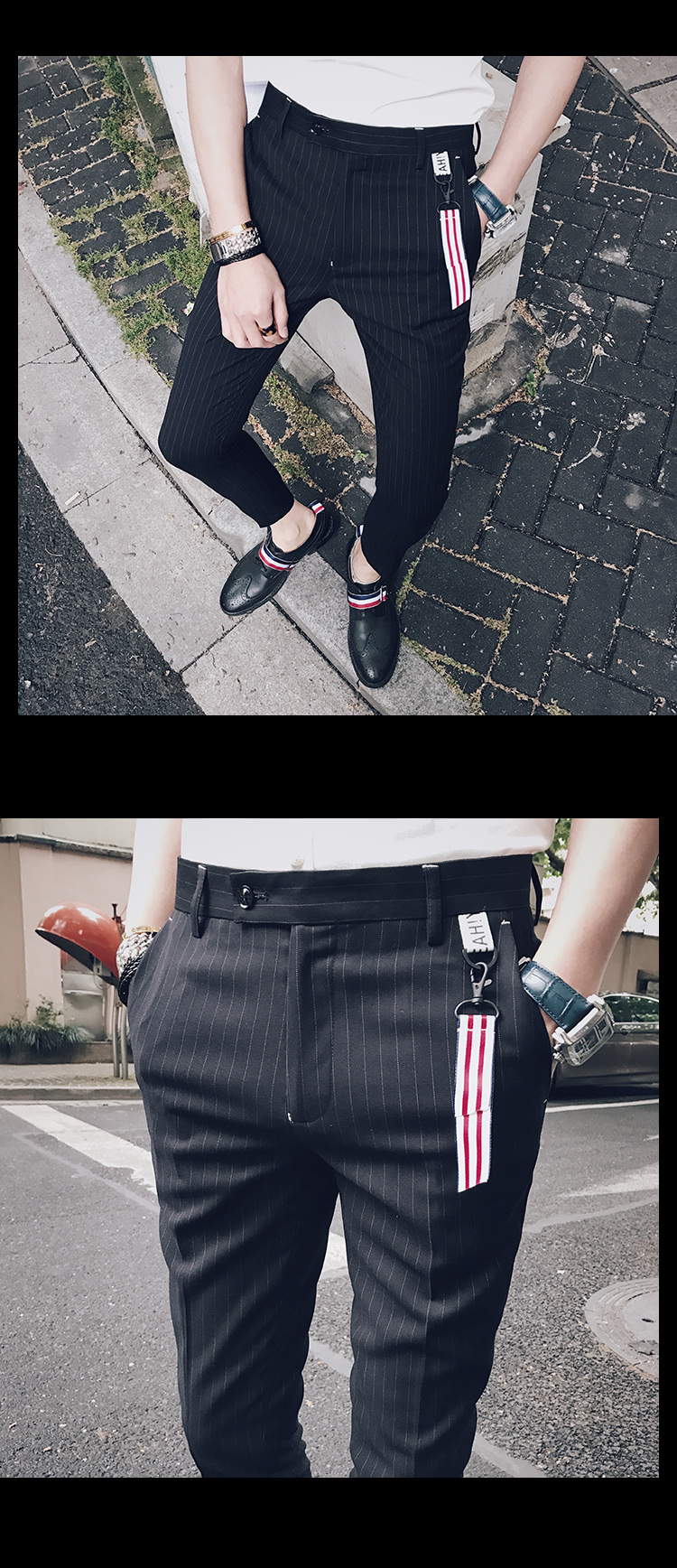 2019夏季男士條紋九分褲青年韓版修身褲子發型師個性百搭小腳褲潮1入