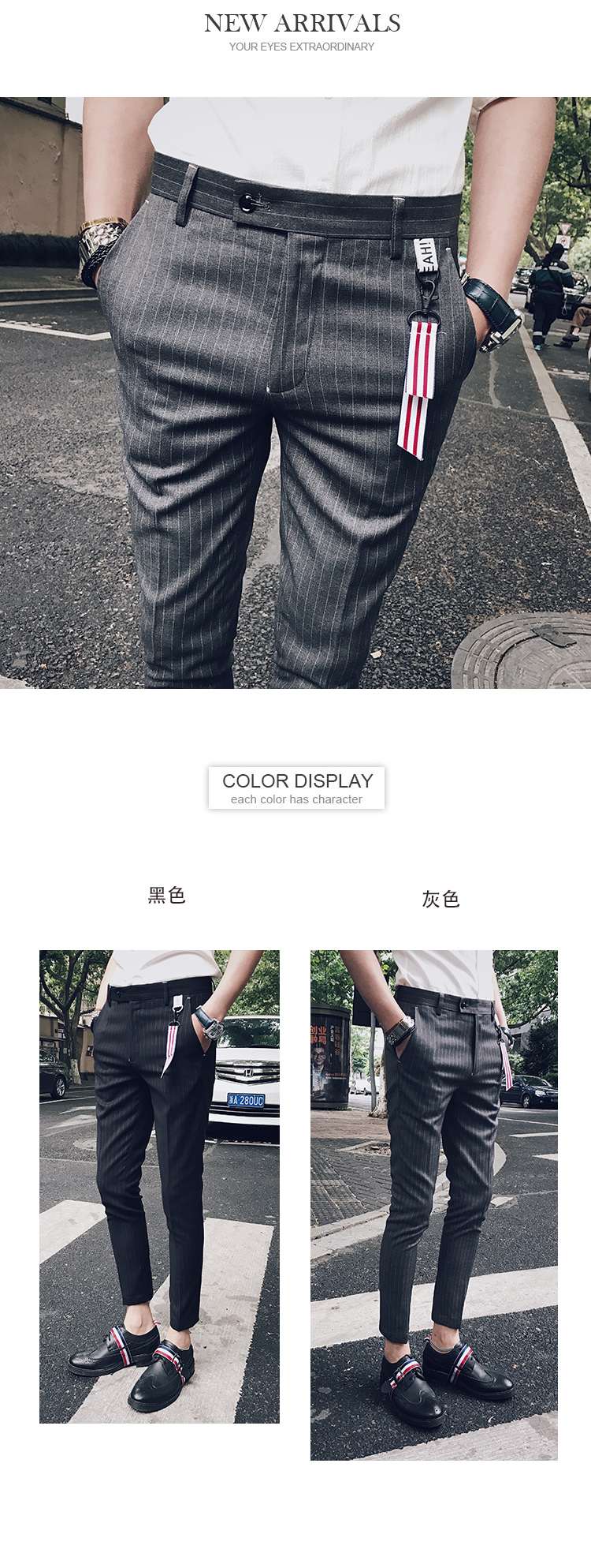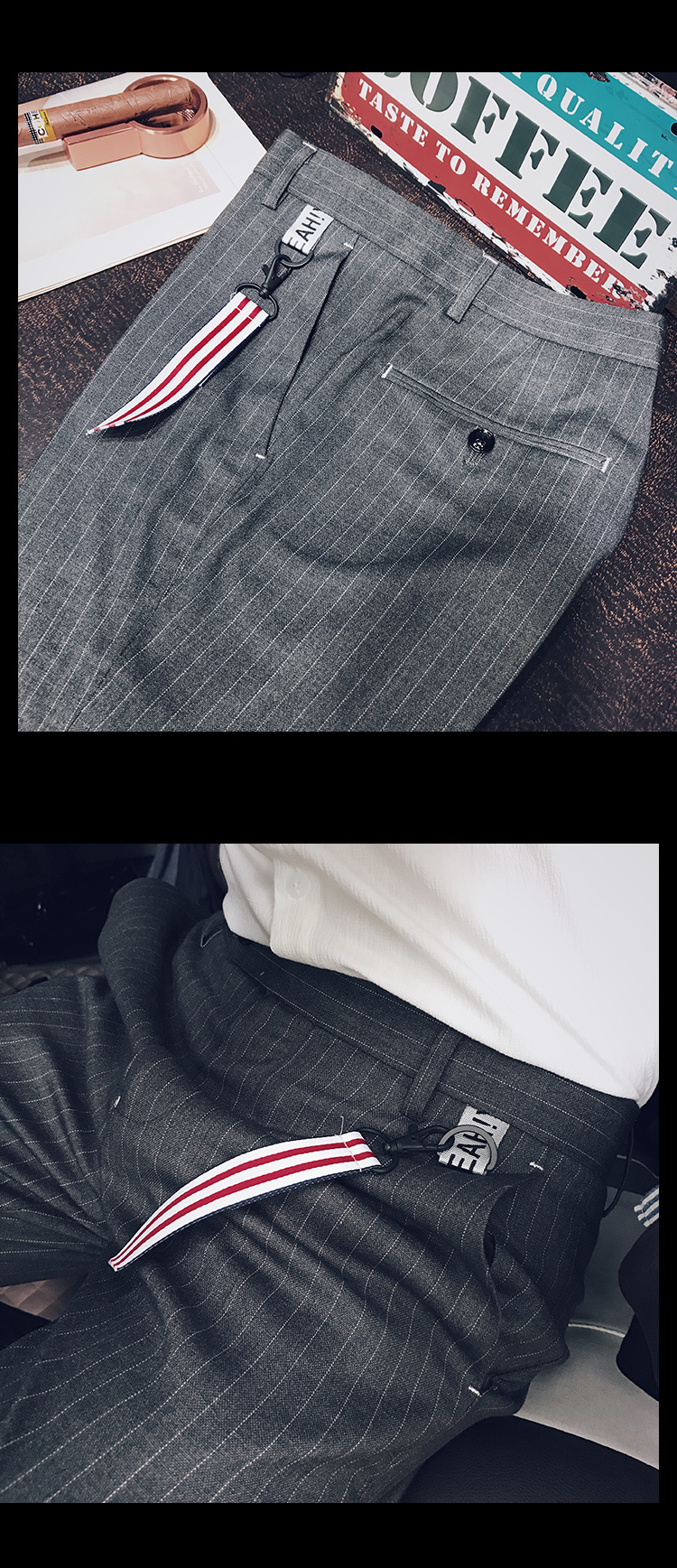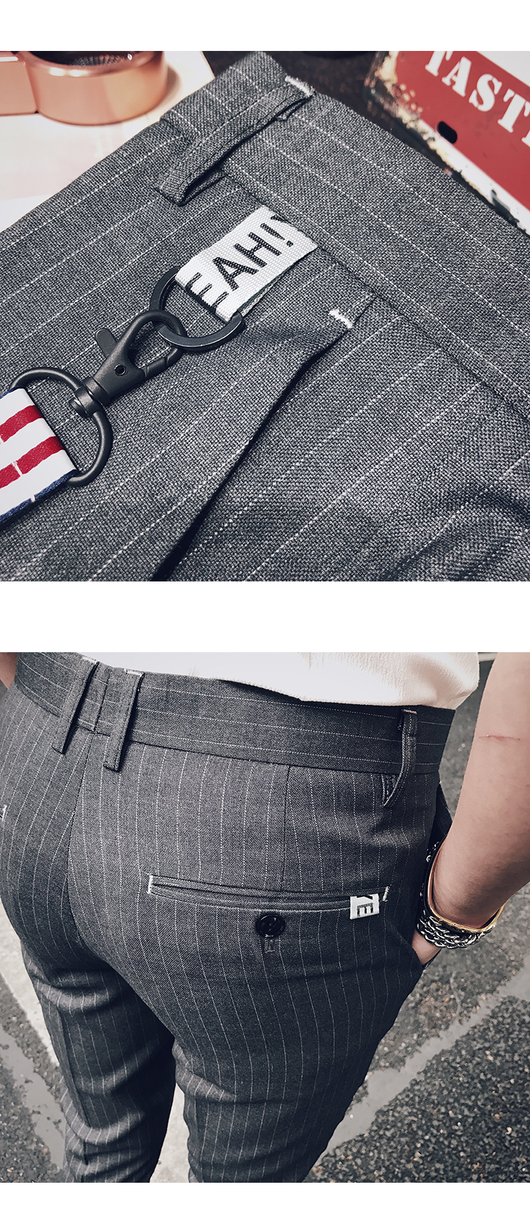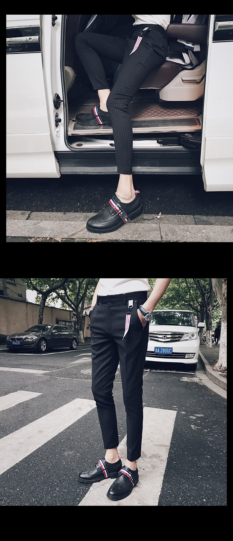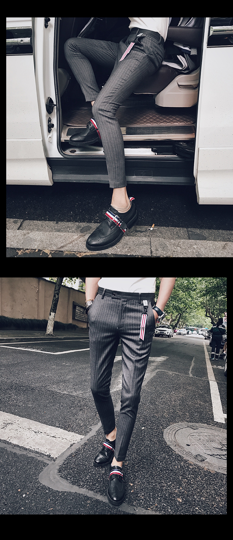 2019夏季男士條紋九分褲青年韓版修身褲子發型師個性百搭小腳褲潮1入
