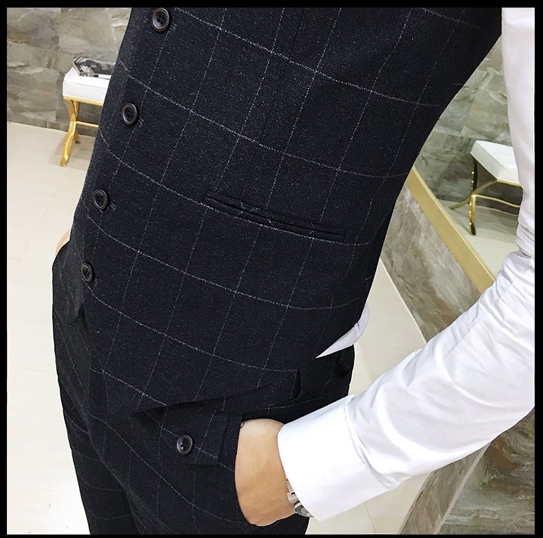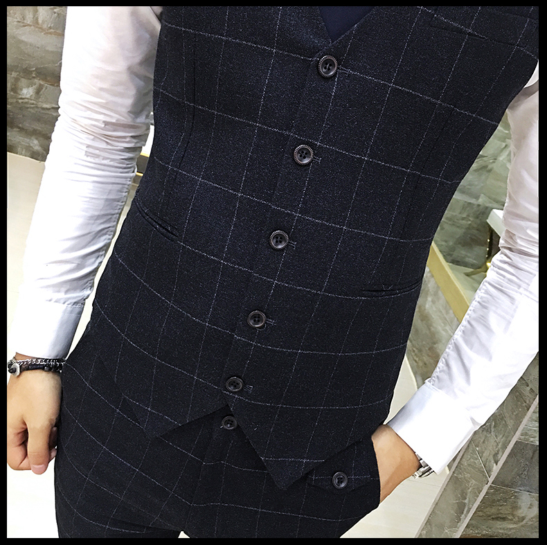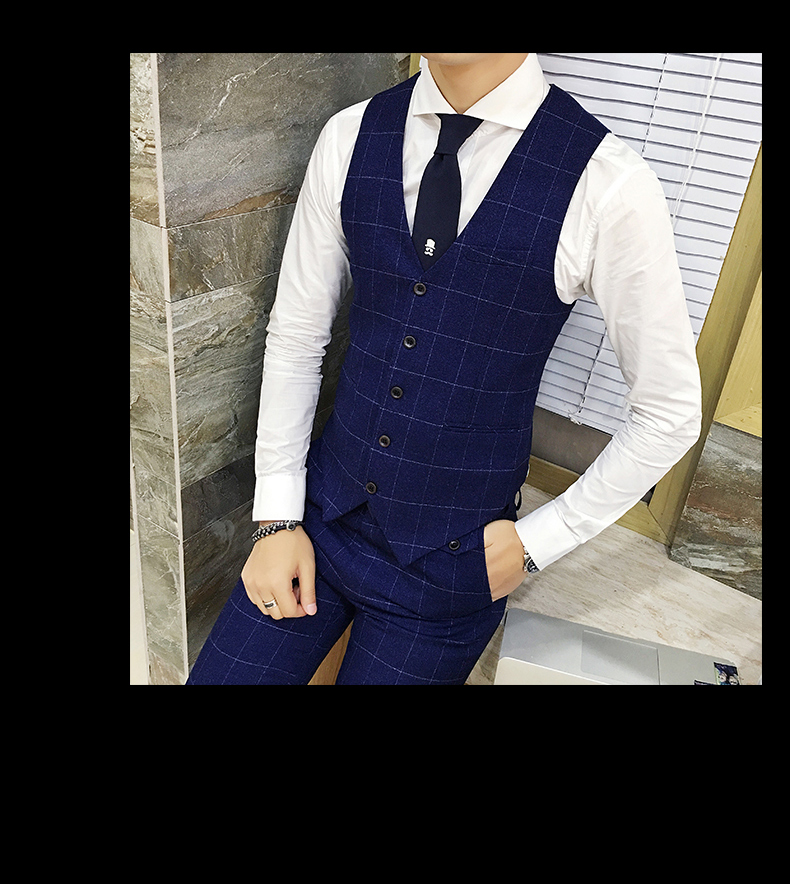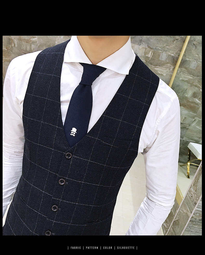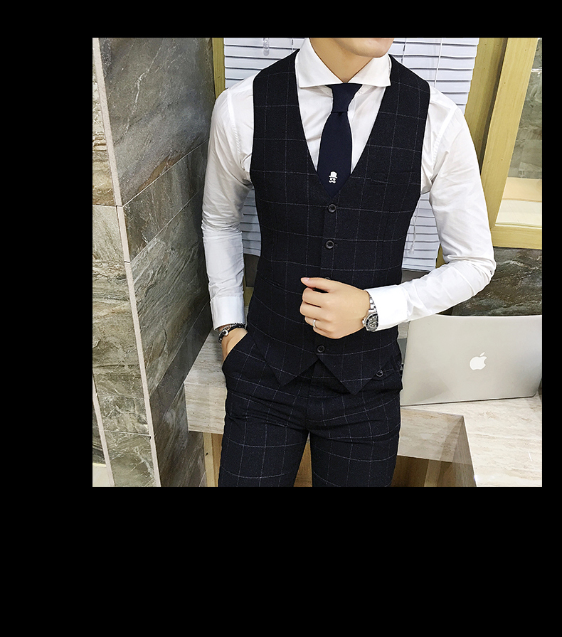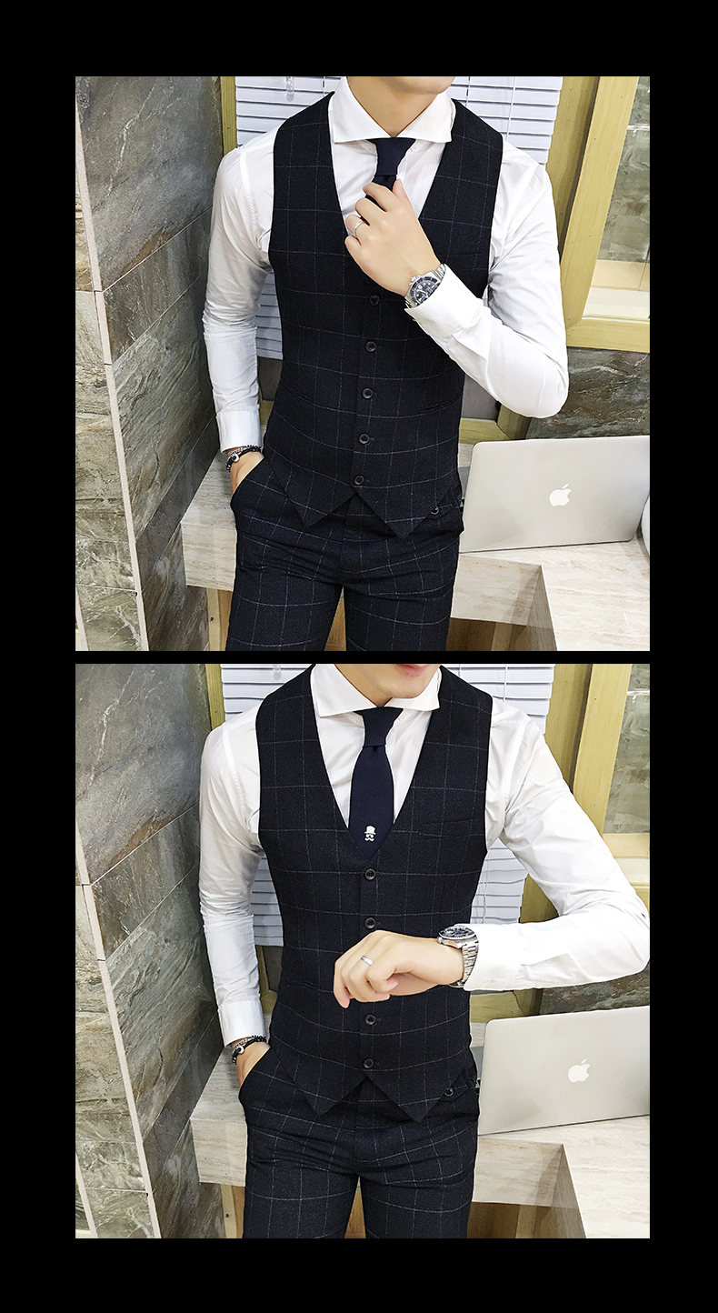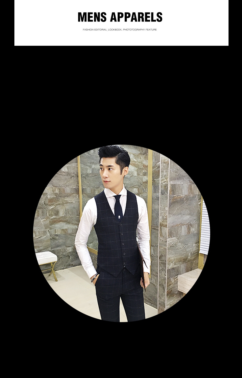 2016男士休閑格子馬甲韓版修身V領馬甲男青年時尚潮流小馬甲潮男1入
