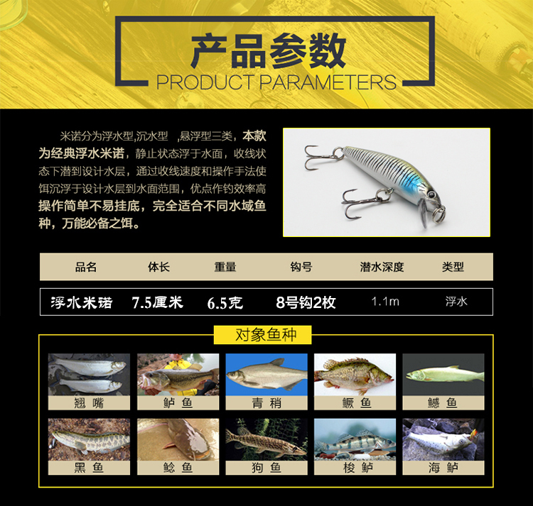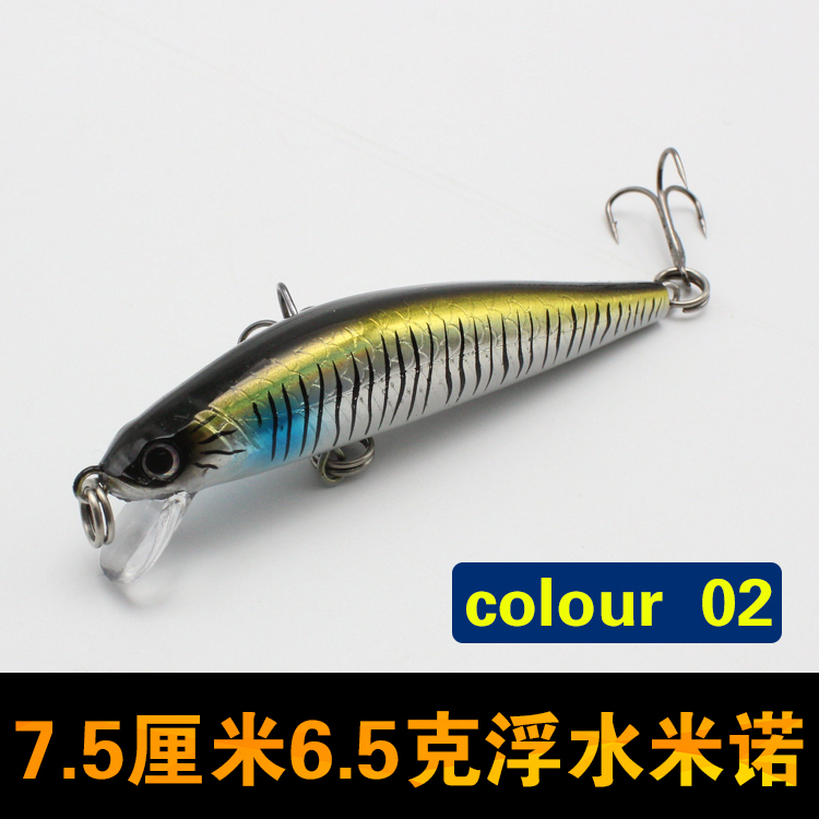 [2]夜光7.5cm/6.5g浮水米諾路亞餌假餌鱸魚/翹嘴/海鱸黑魚海釣淡水用1入