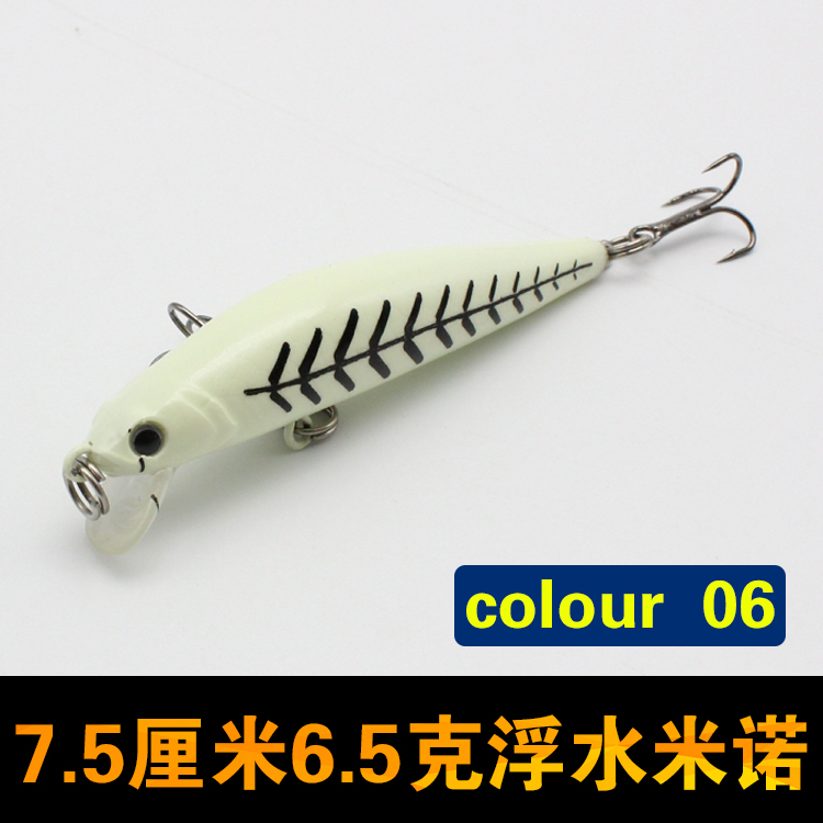 夜光7.5cm/6.5g浮水米諾路亞餌假餌鱸魚/翹嘴/海鱸黑魚海釣淡水用1入