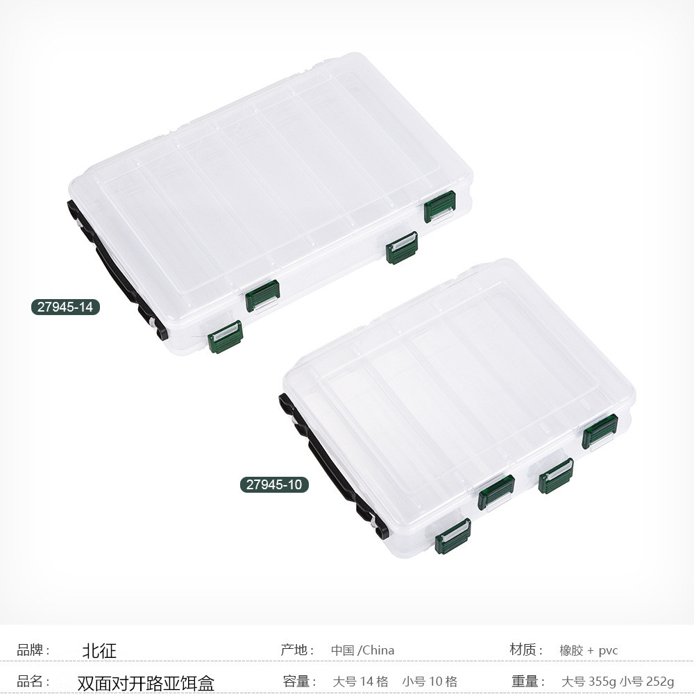 雙面對開直列路亞盒中大號10/14格路亞配件魚餌硬餌漁具盒工具盒1入
