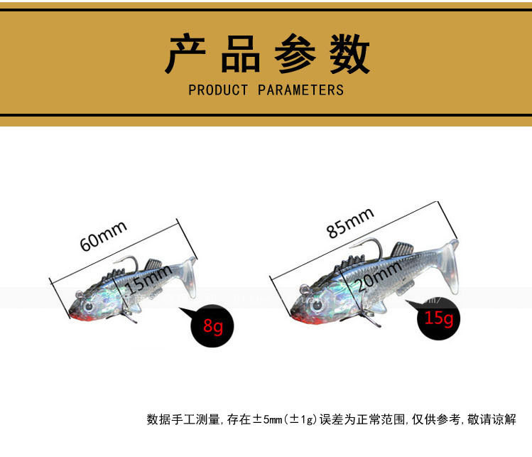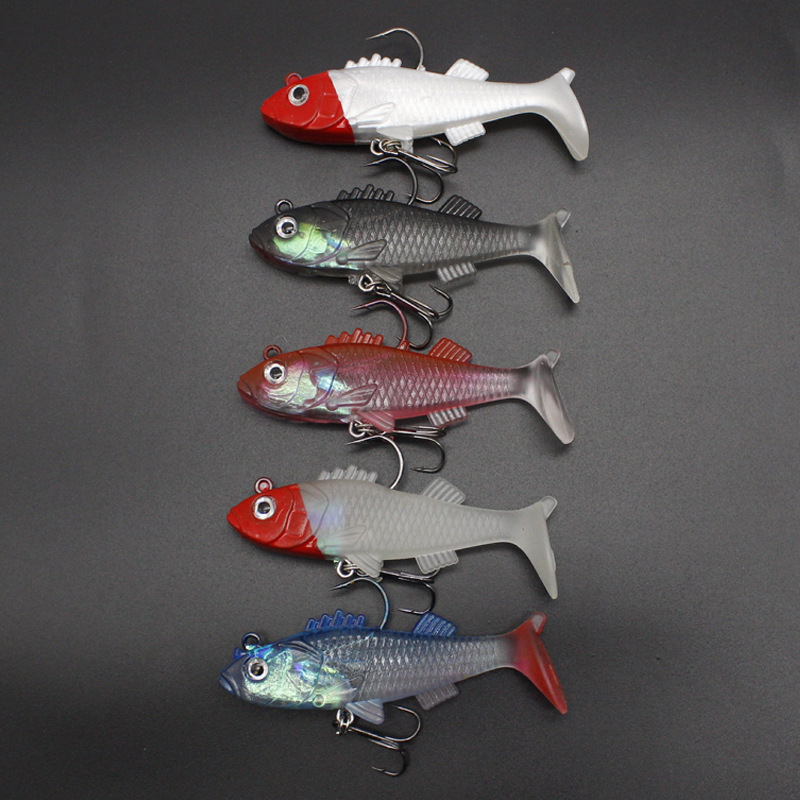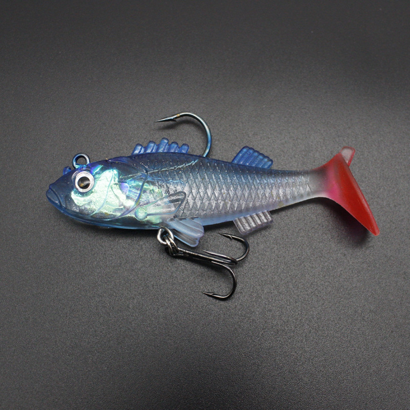 軟魚假餌路亞餌15克8.5cm/8g6.5cm包鉛魚軟餌擬餌雙鉤T尾海鱸魚餌1入