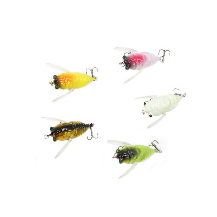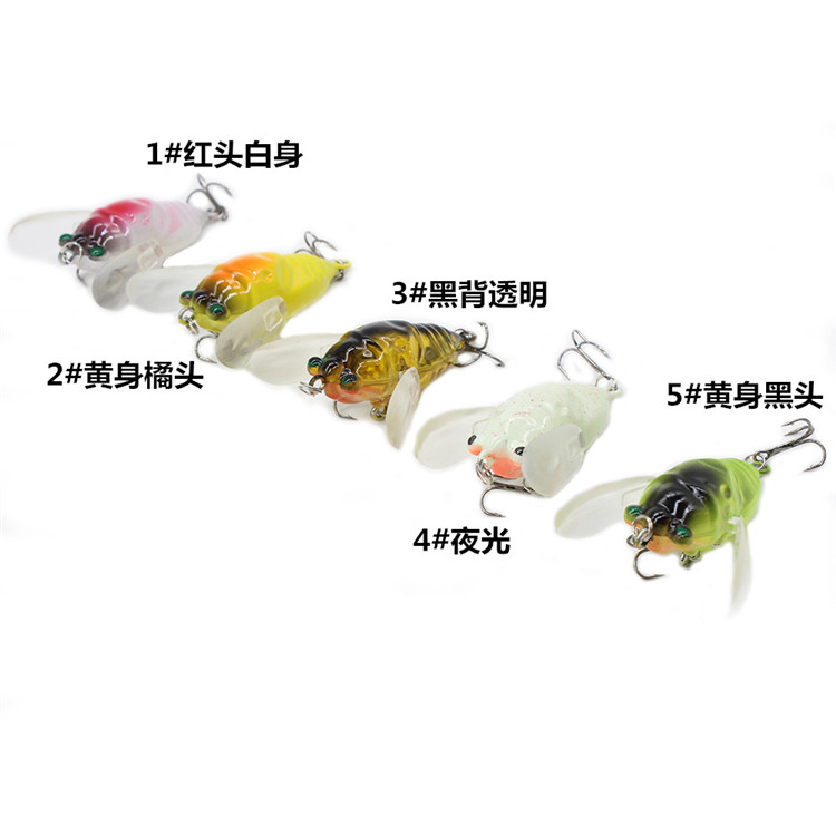 蟬6g5cm五色可選 昆蟲知了 軟翅膀 假餌路亞餌仿生硬餌 魚餌批發