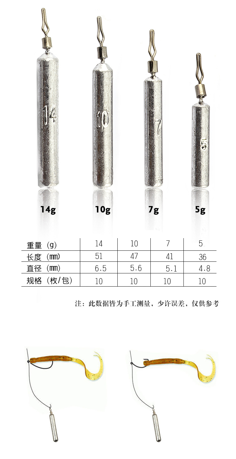 路亞柱型倒釣鉛墜銅墜路亞配件垂釣漁具用品 棒狀倒吊鉛 軟餌配鉛1入