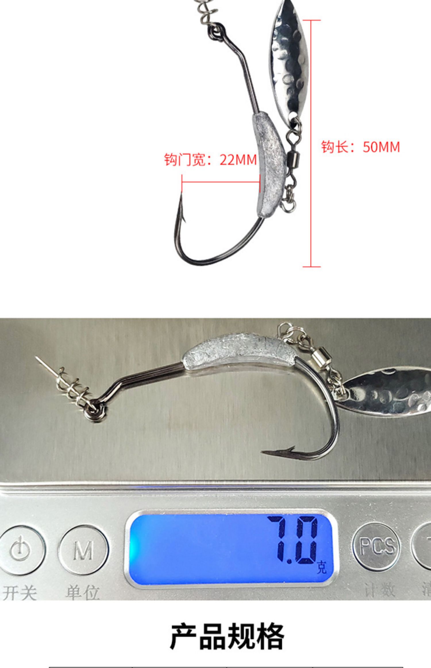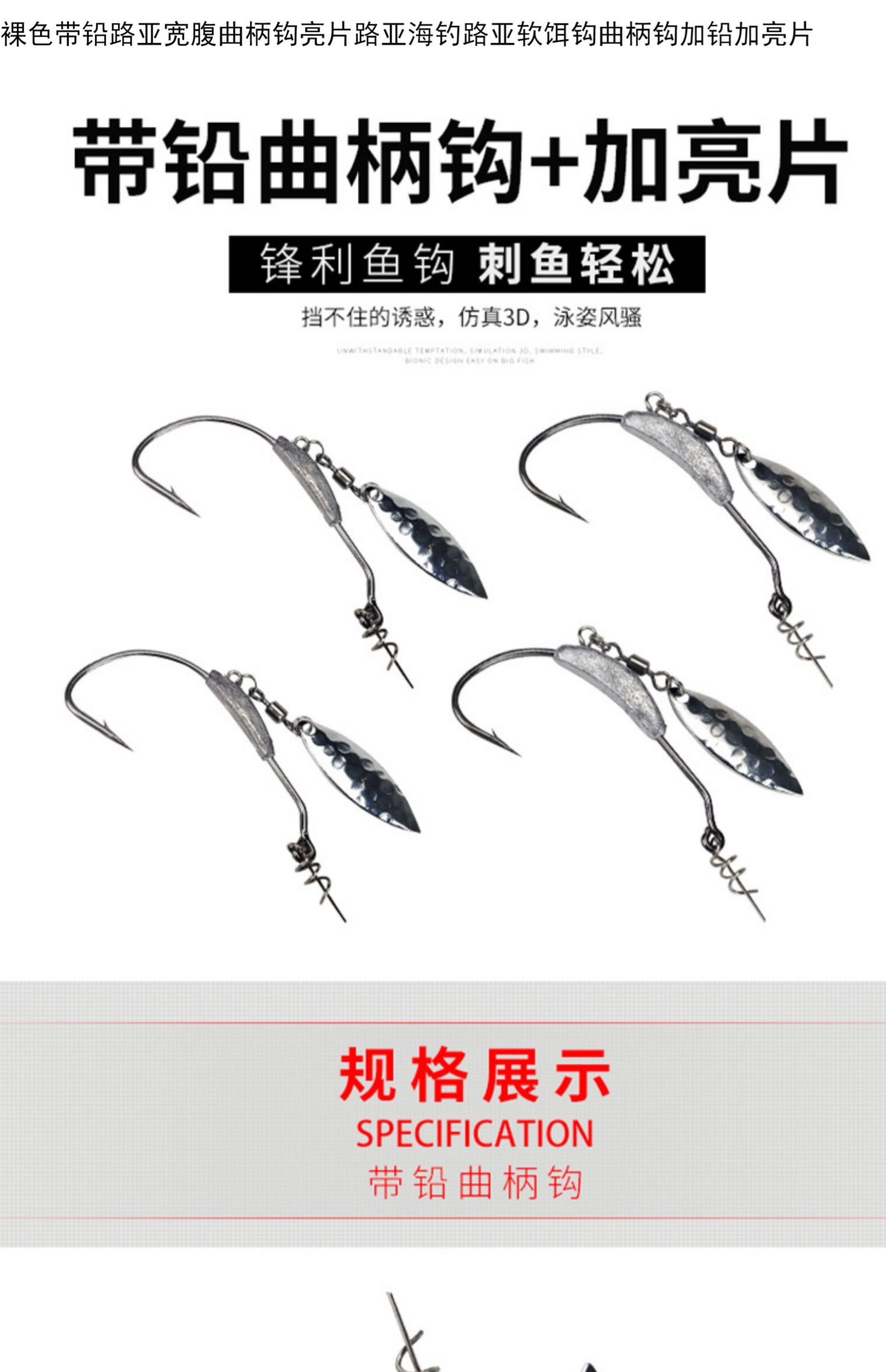 裸色帶鉛路亞寬腹曲柄鉤亮片路亞海釣路亞軟餌鉤曲柄鉤加鉛加亮片1入