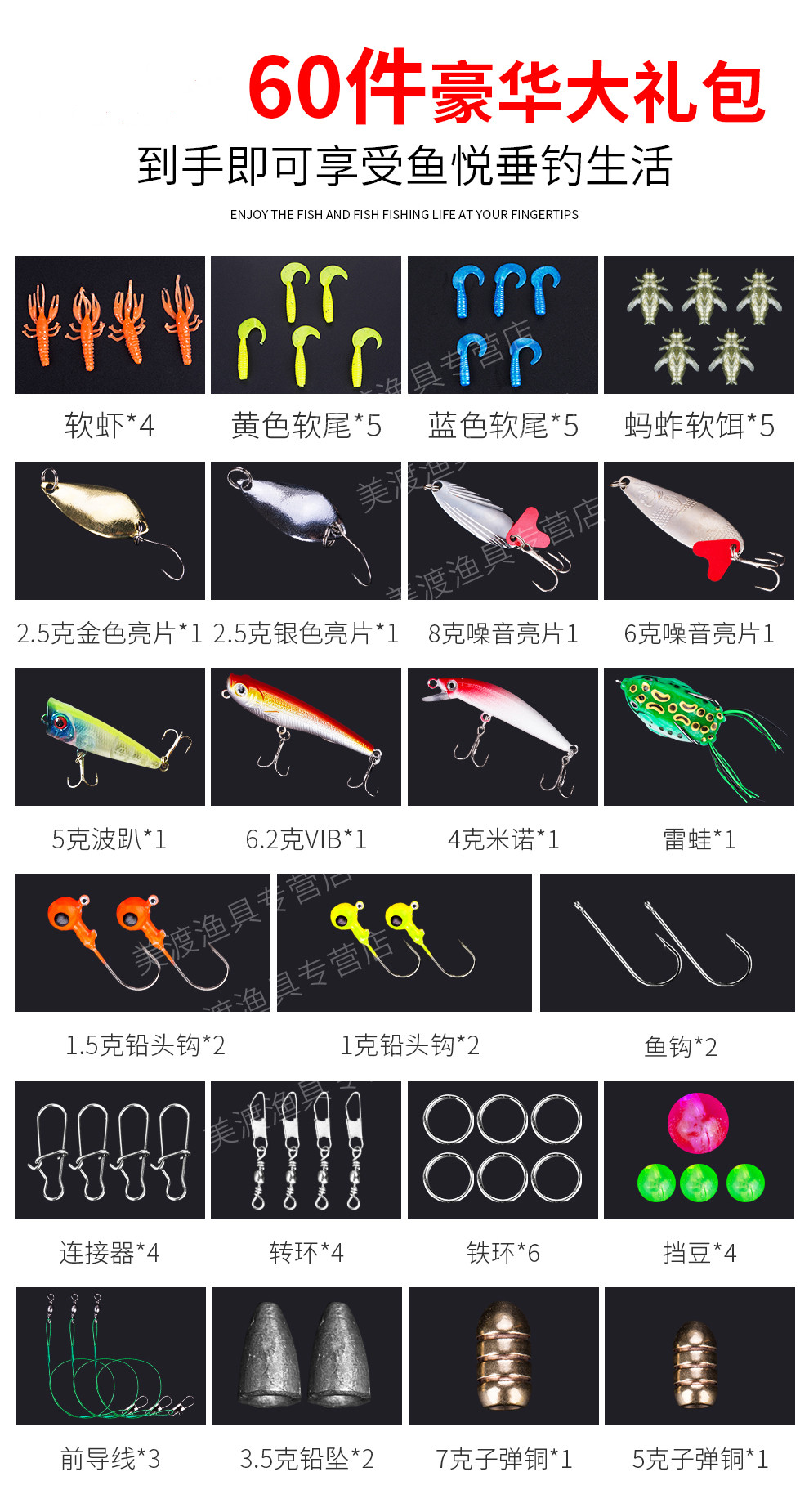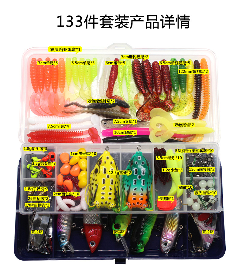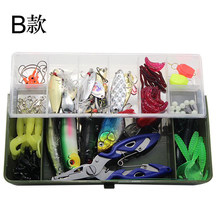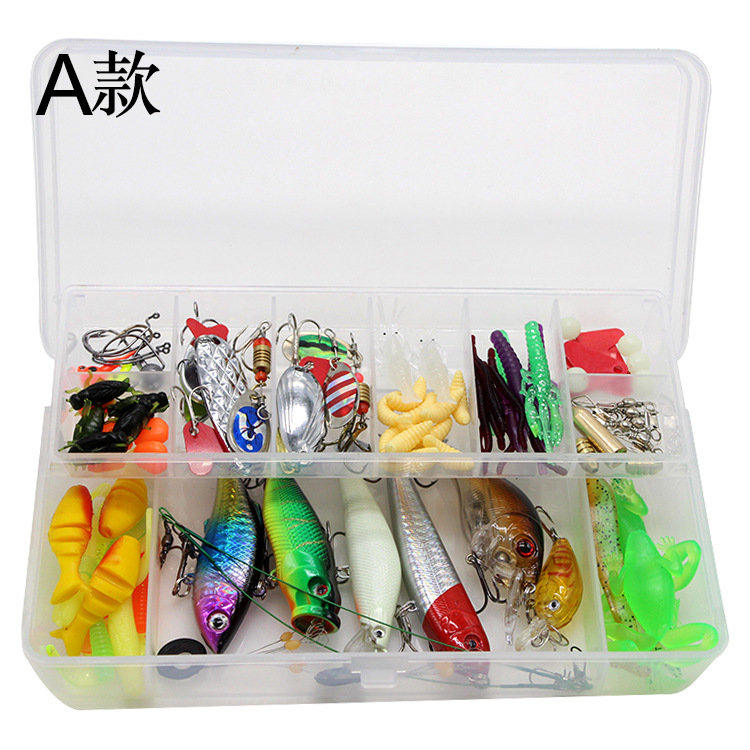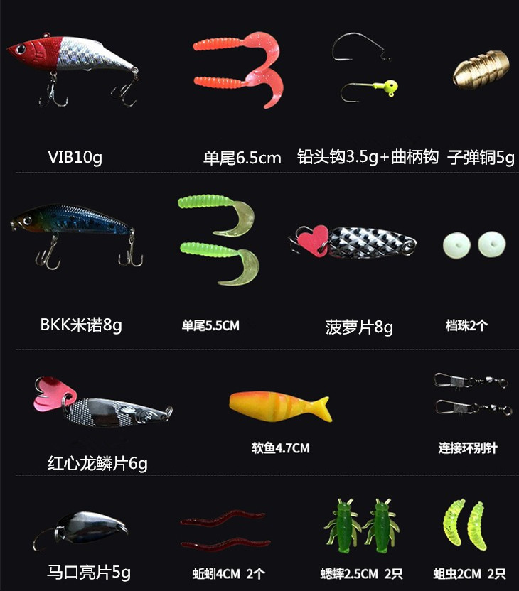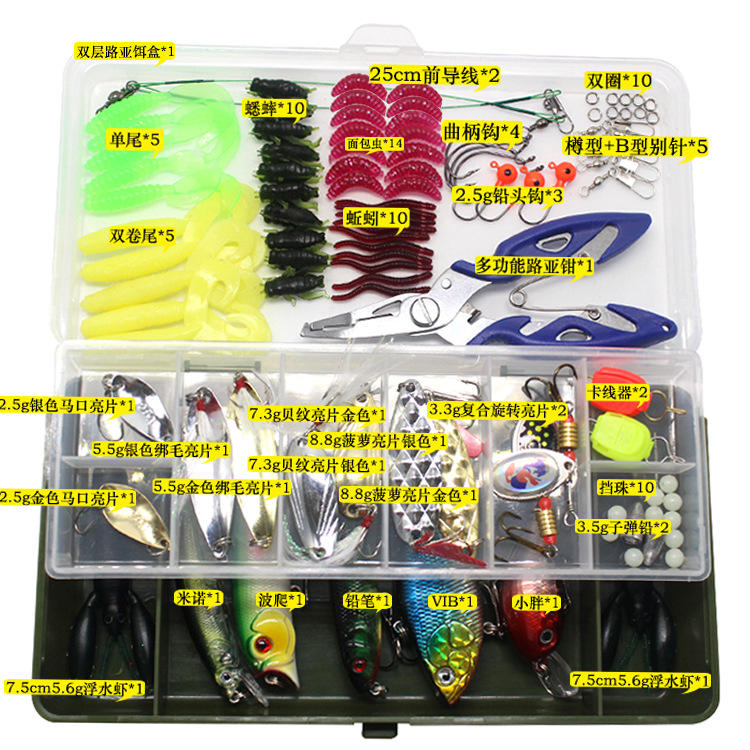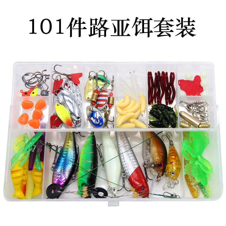 101件全泳層綜合多魚種路亞餌套裝 雷蛙假餌 軟餌米諾VIB亮片漁具1入
