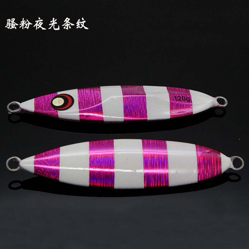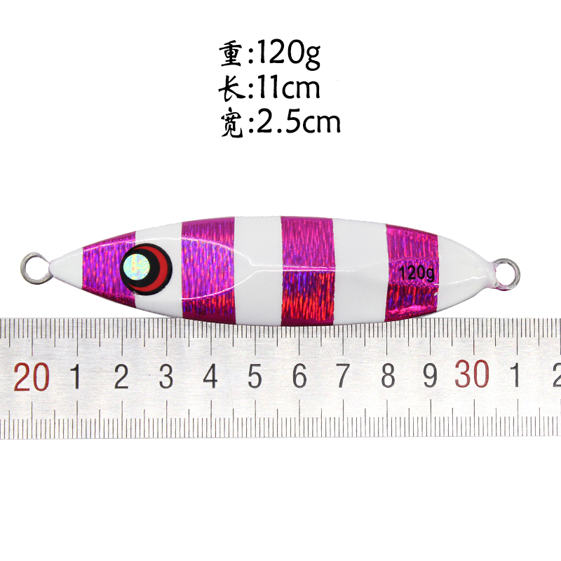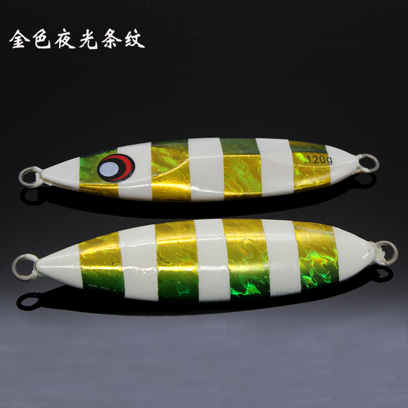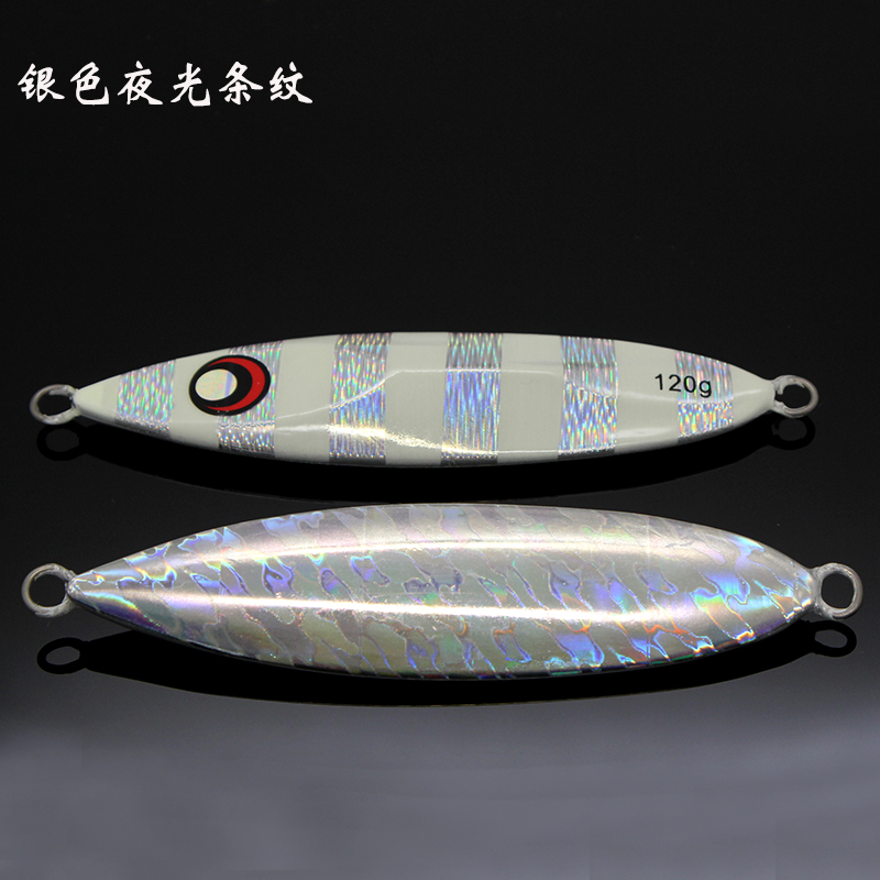 120g11cm慢搖鐵板沉水鐳射鐵板鉛魚雙面夜光條紋路亞專用餌仿生餌1入
