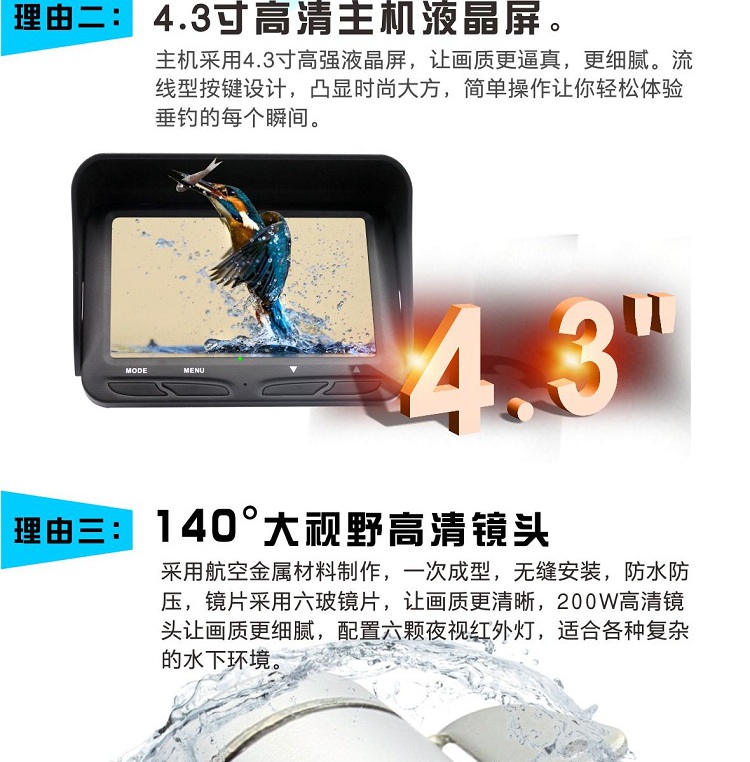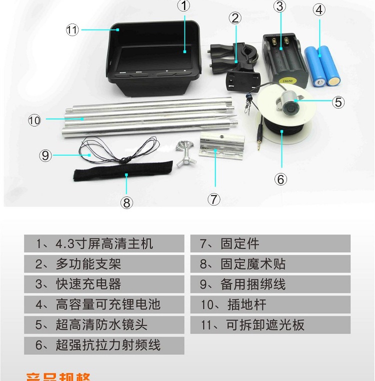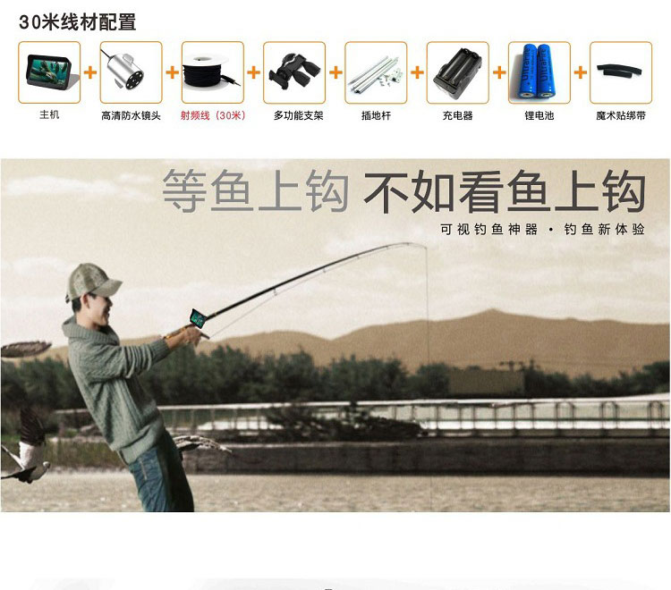 高清可視探魚器搜魚器夜視水下攝像機防水釣魚攝像頭找魚器1入