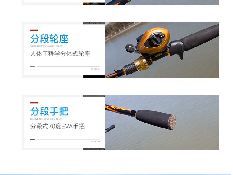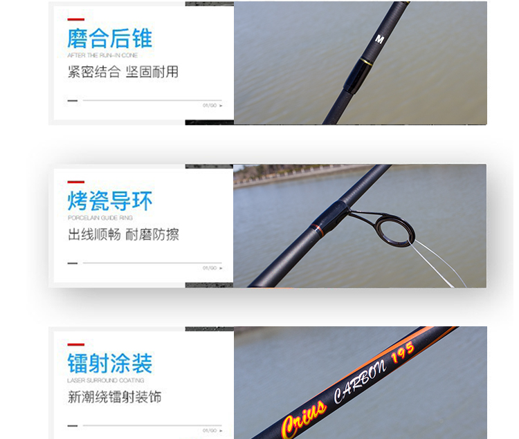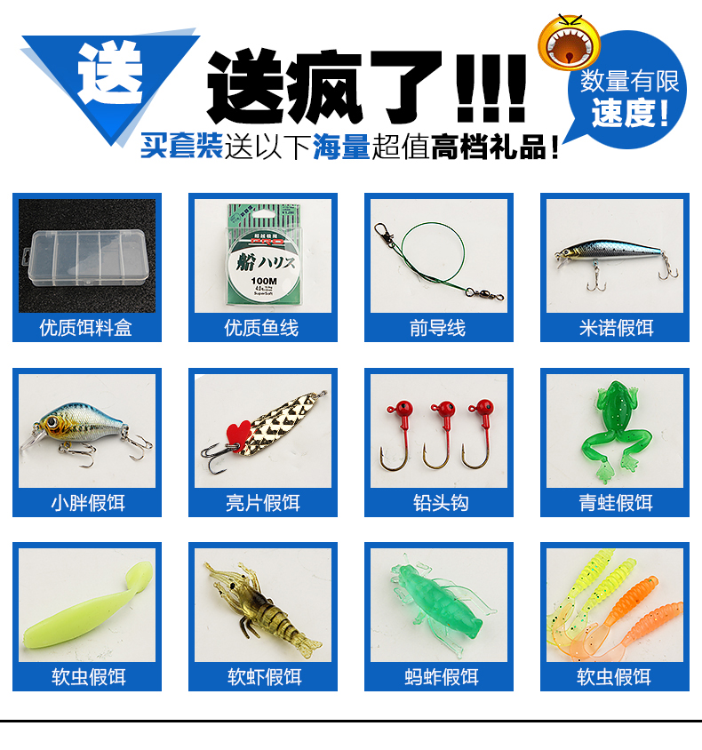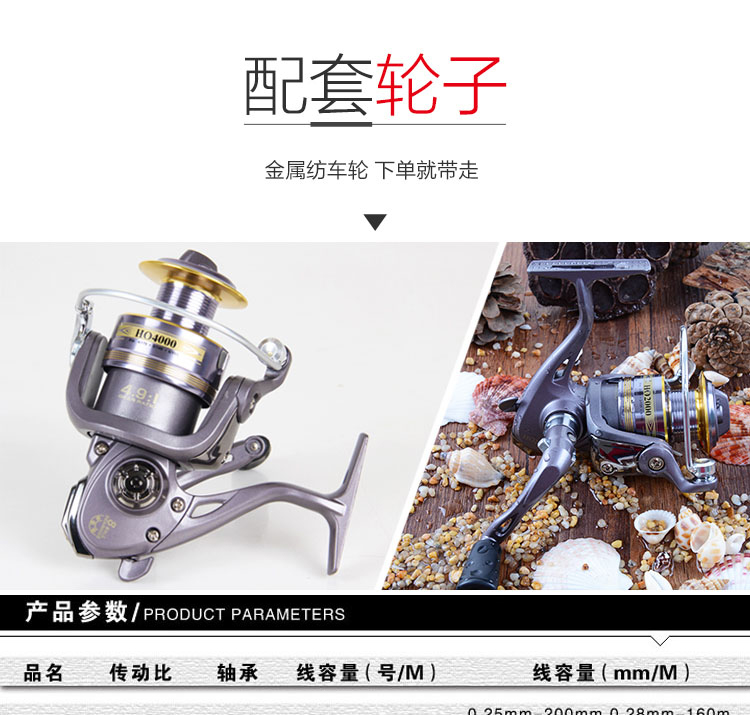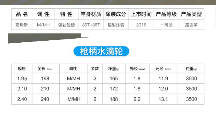 1.95/2.1/2.4米雙梢M調MH調碳素直柄槍柄路亞竿海桿漁輪套裝漁具1入