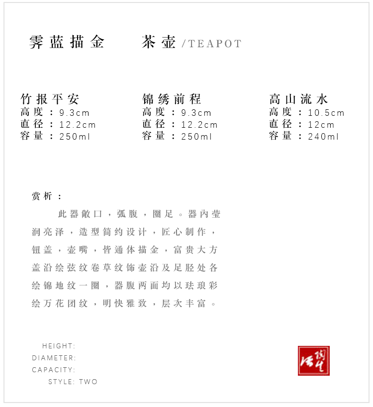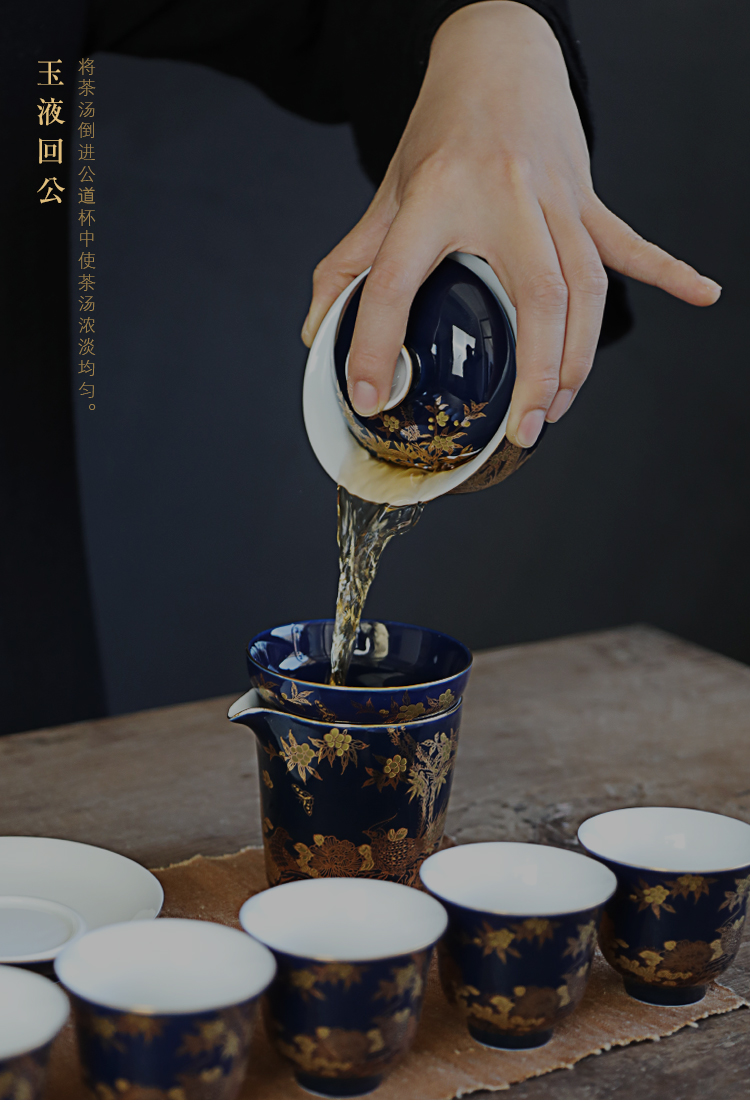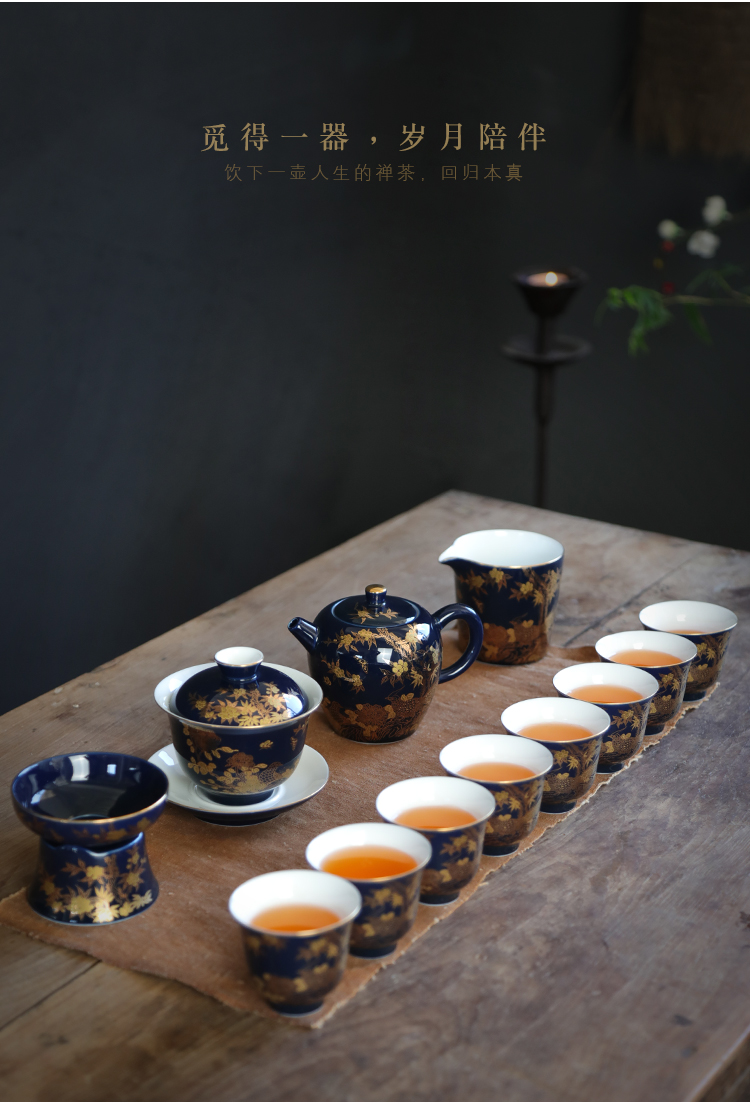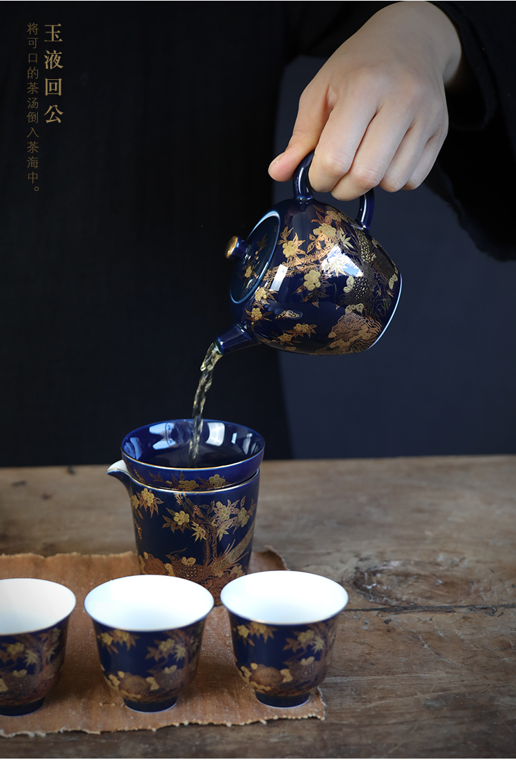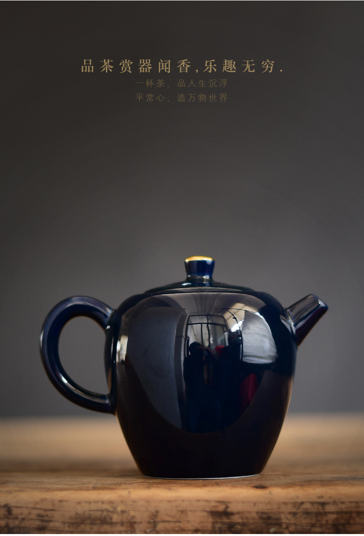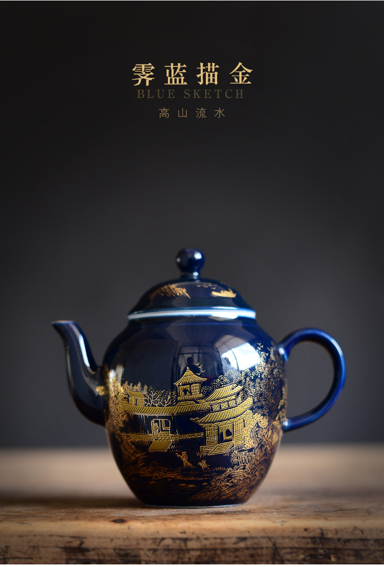 霽藍描金茶壺 陶瓷家用壺 日式茶具過濾茶壺 手工泡茶壺 功夫茶具1入