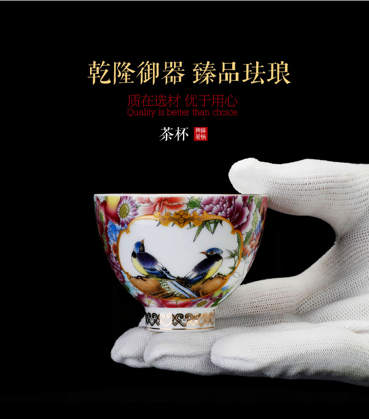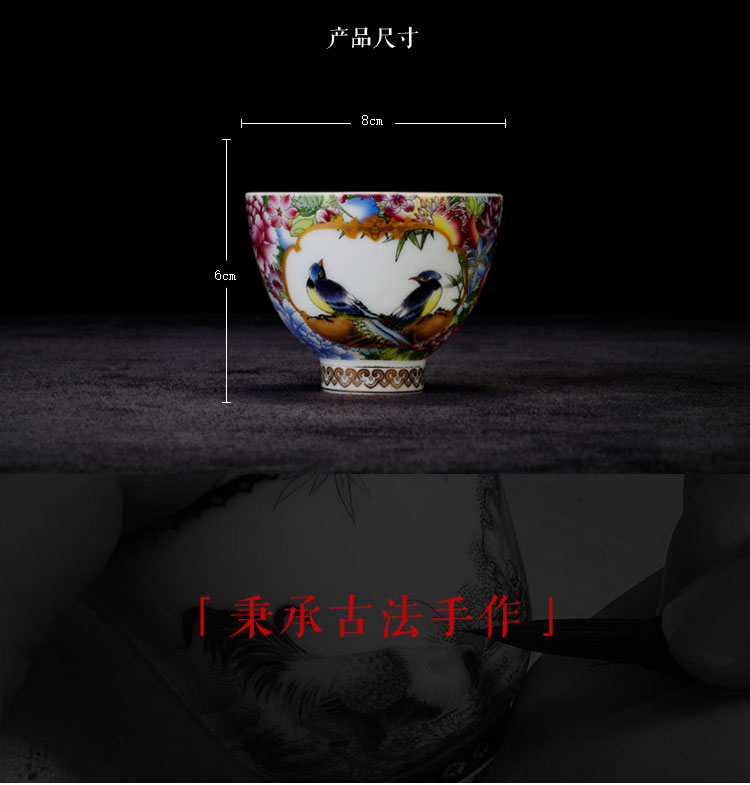 陶生活景德鎮陶瓷茶杯 手工手繪粉彩萬花杯 功夫茶具品茗杯主人杯1入